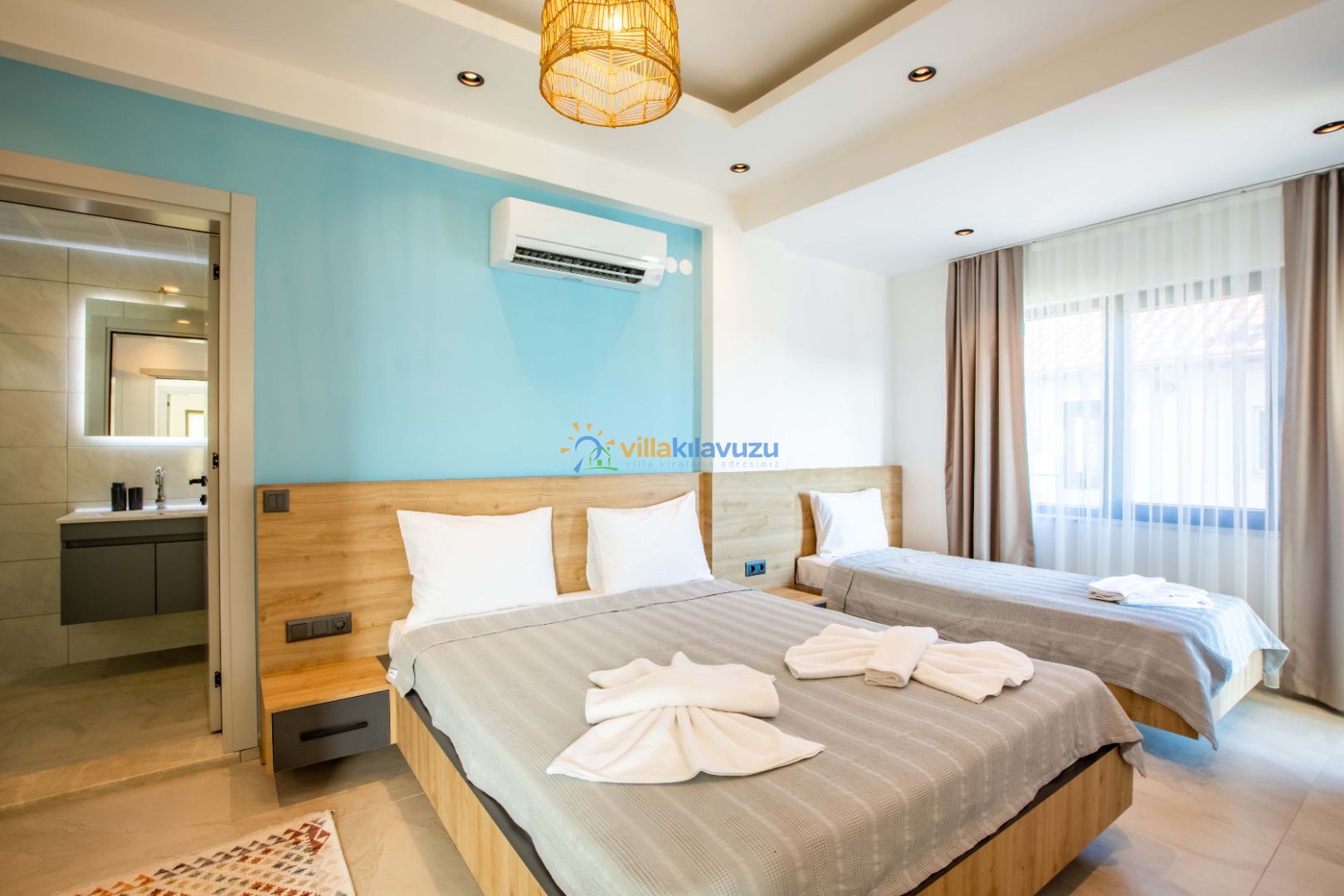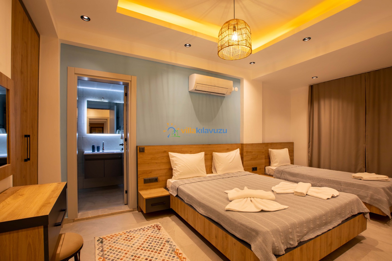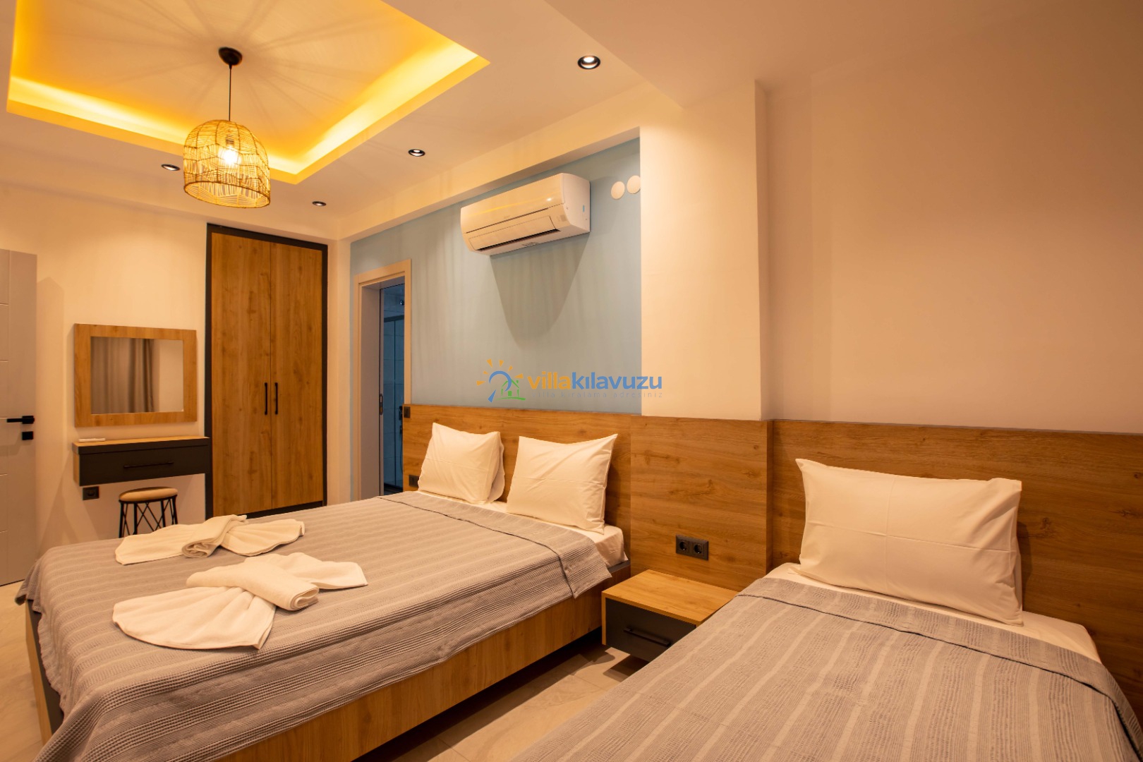 -Villamız 2 yatak odasına sahip olup 5 kişilik konaklama kapasitesine sahiptir.