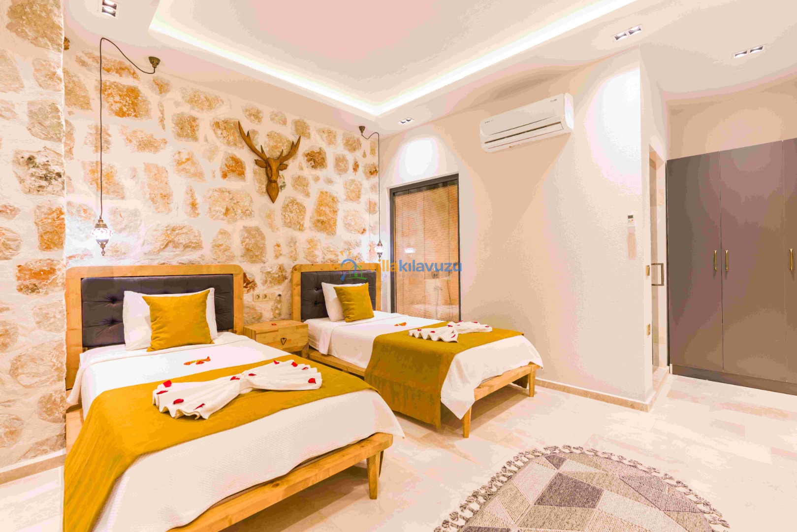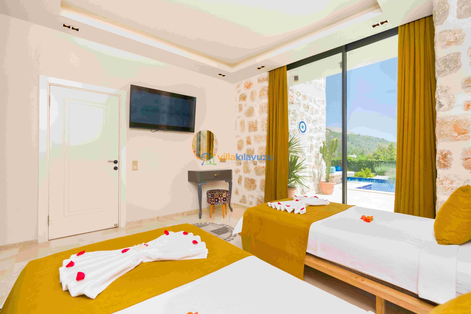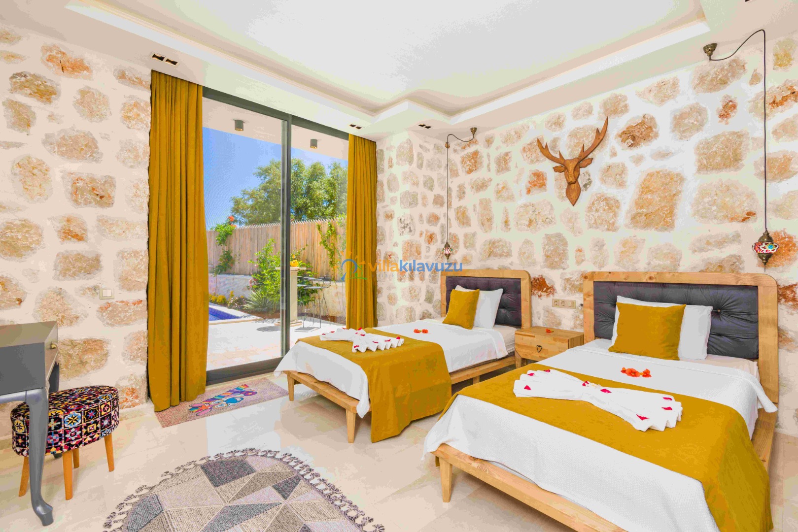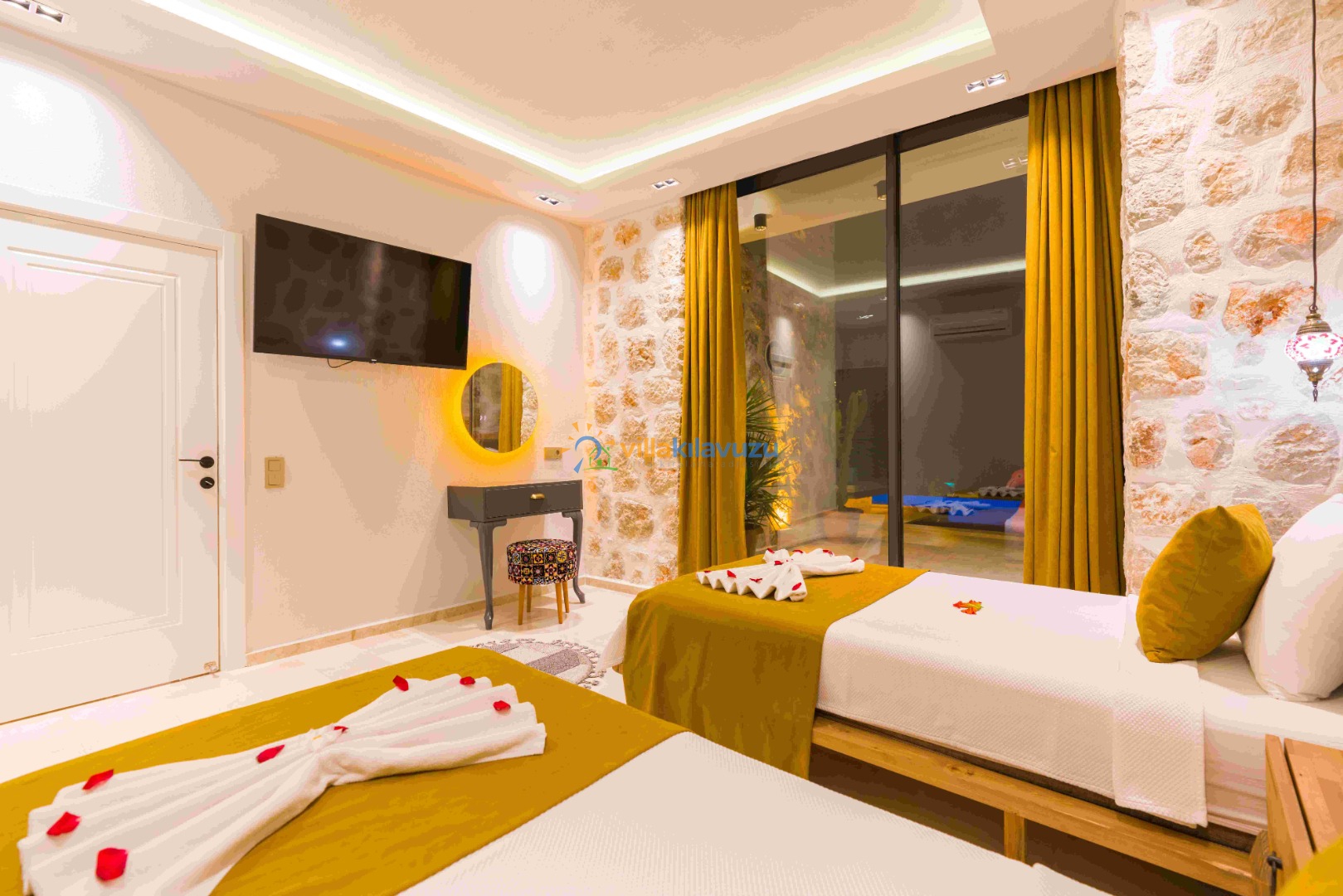 -Villamız 3 yatak odasına sahip olup 6 kişilik konaklama kapasitesine sahiptir.