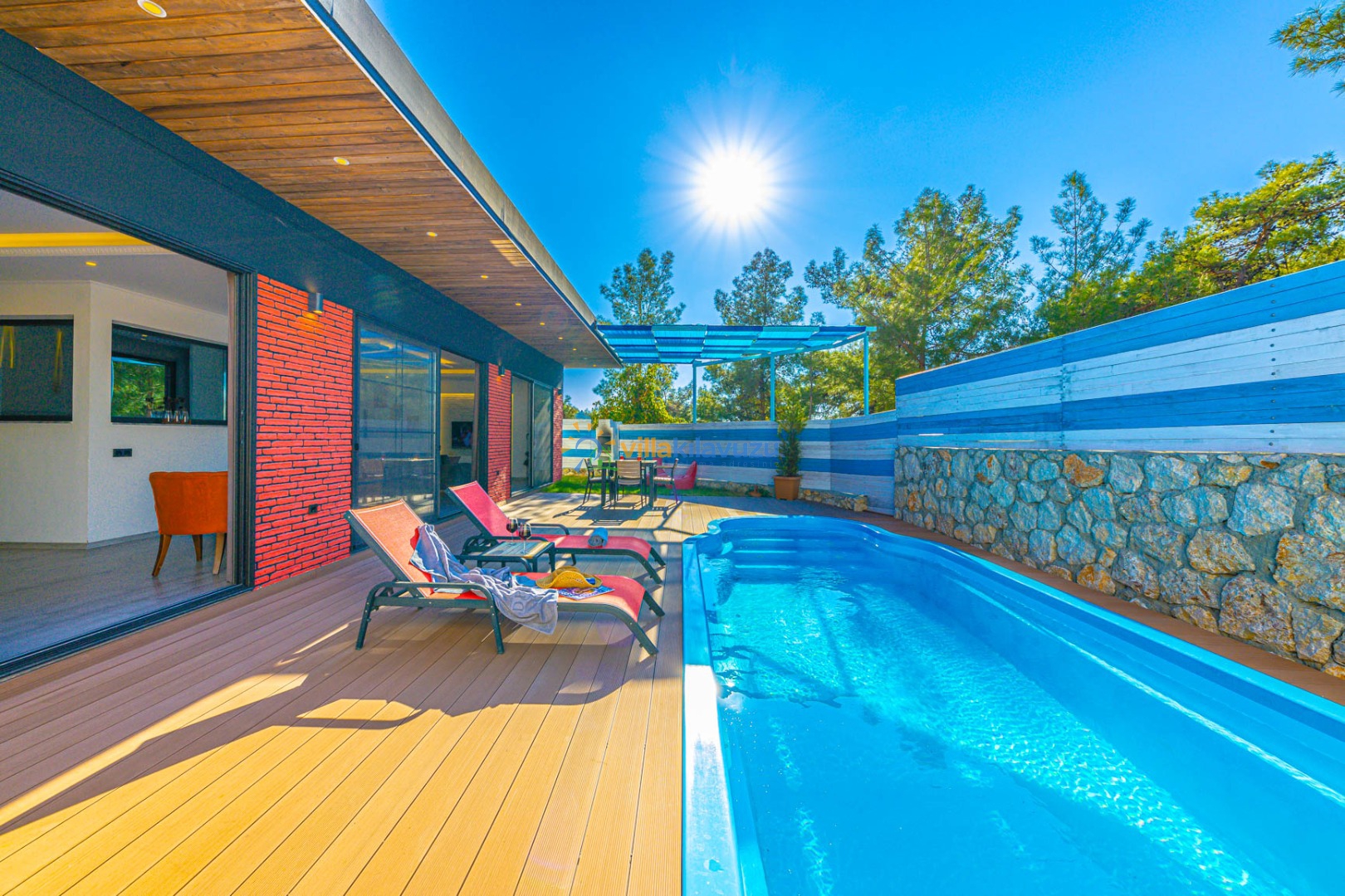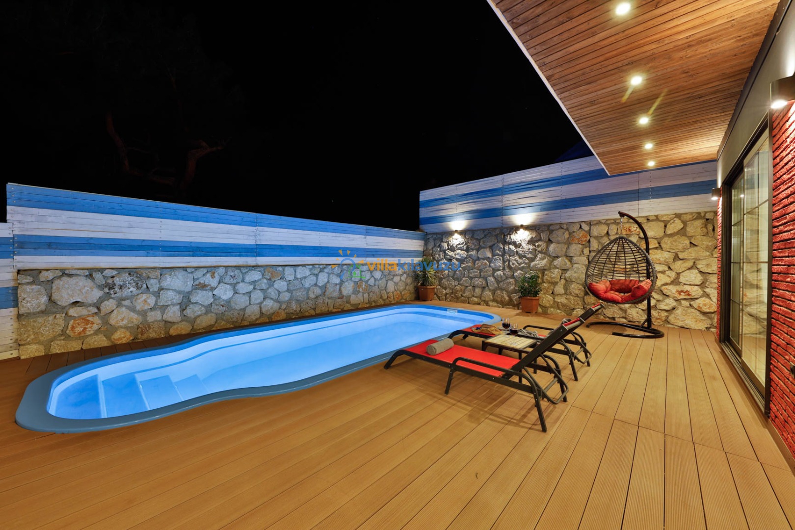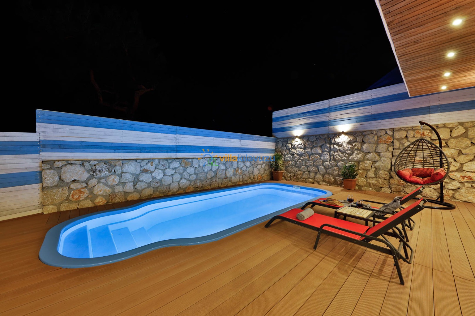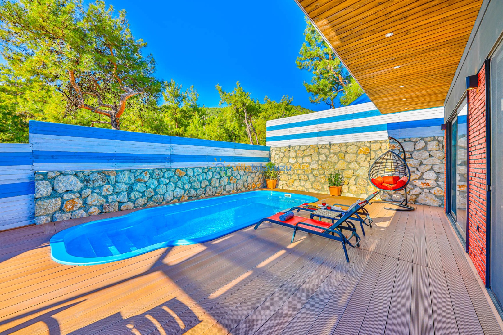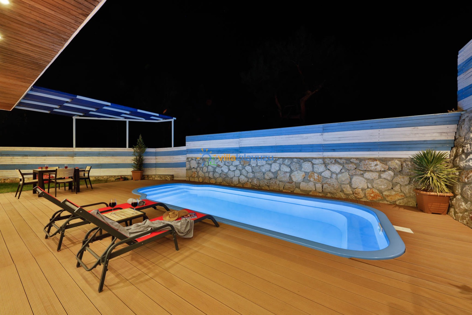 -Villamızın havuz terası korunaklıdır.