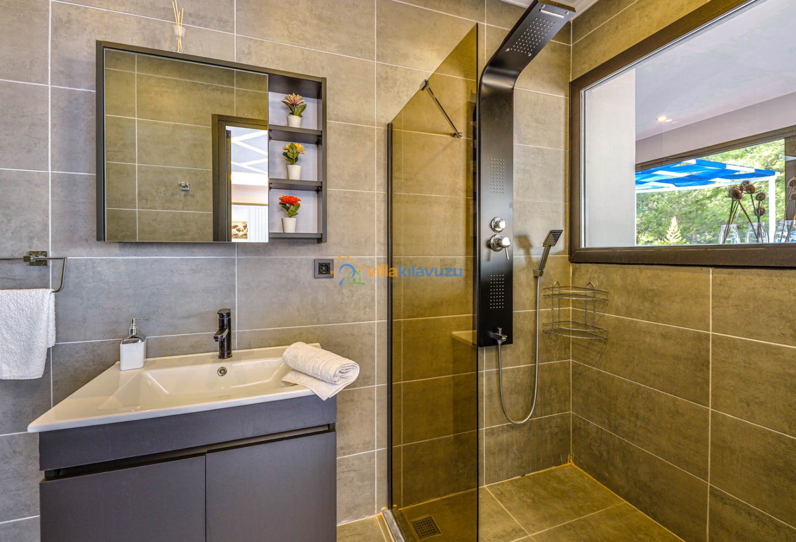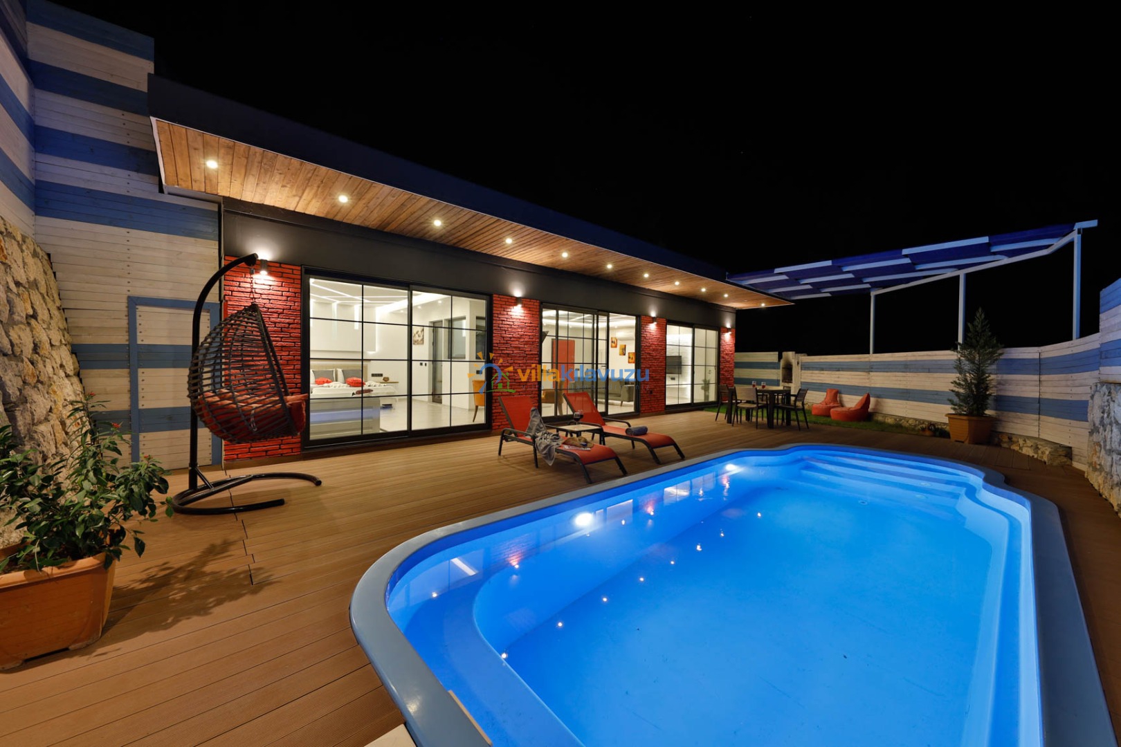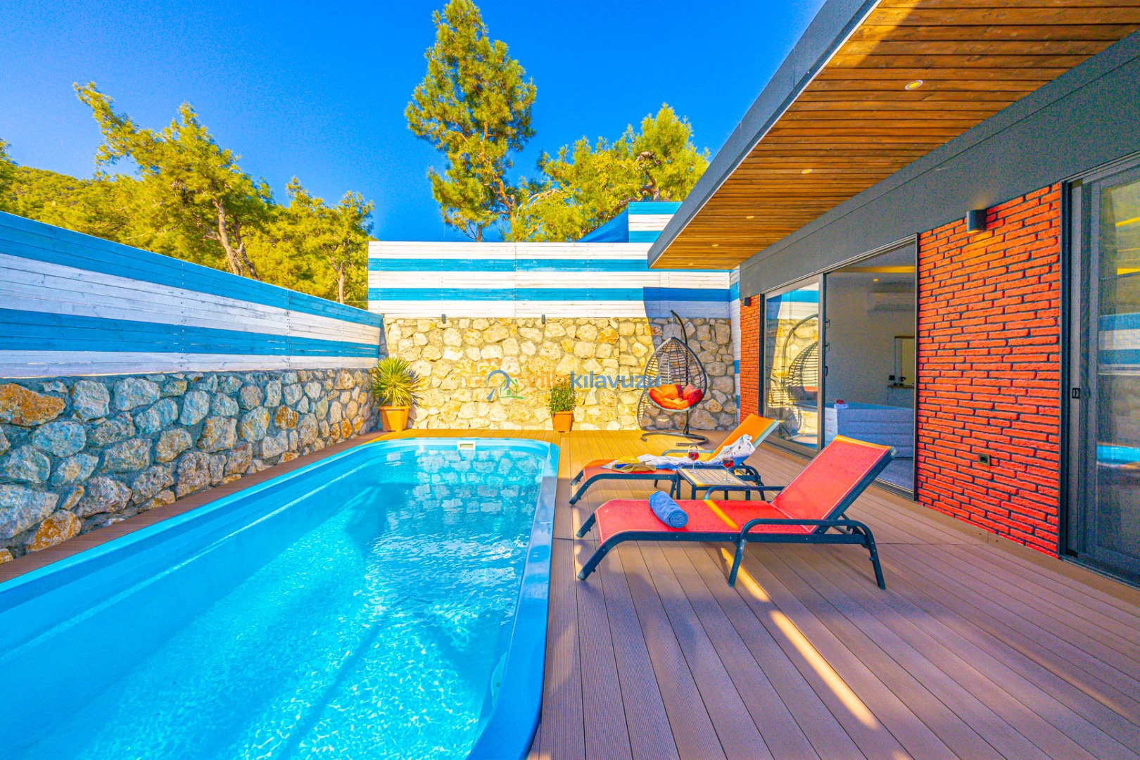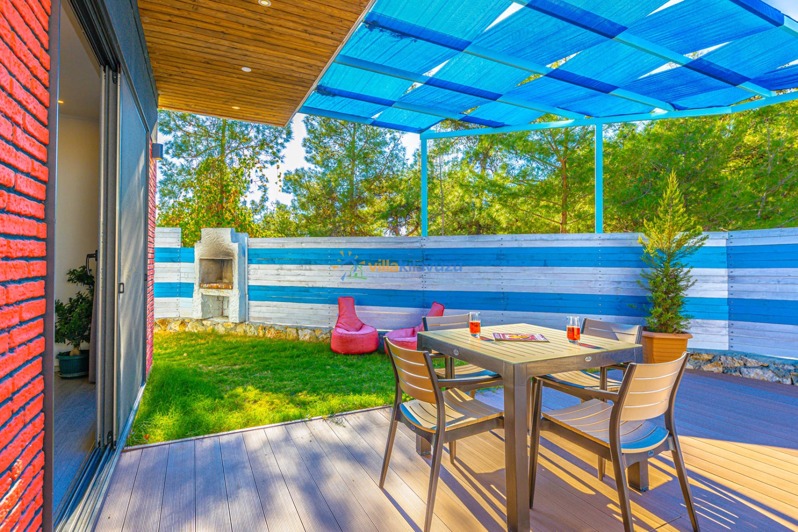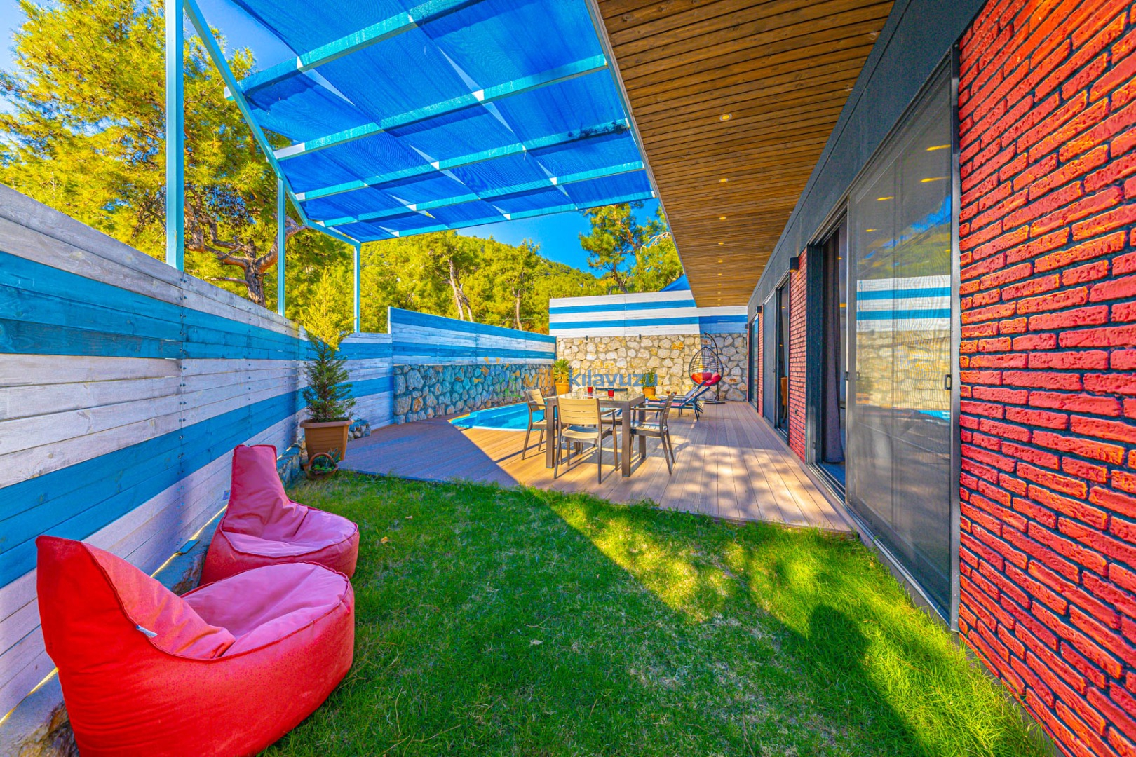 -Villamızın havuz terası korunaklıdır.
