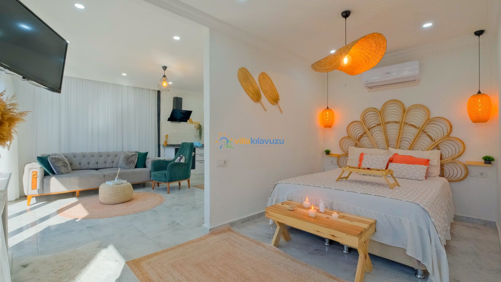 -Villamız 1 yatak odasına sahip olup 2 kişilik konaklama kapasitesine sahiptir.