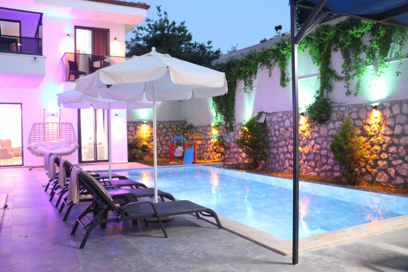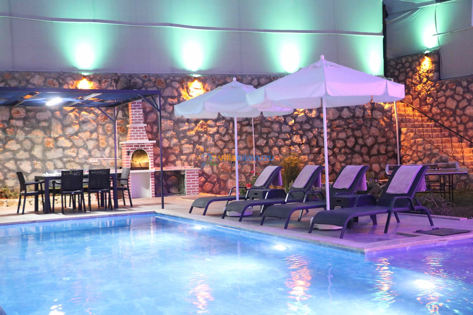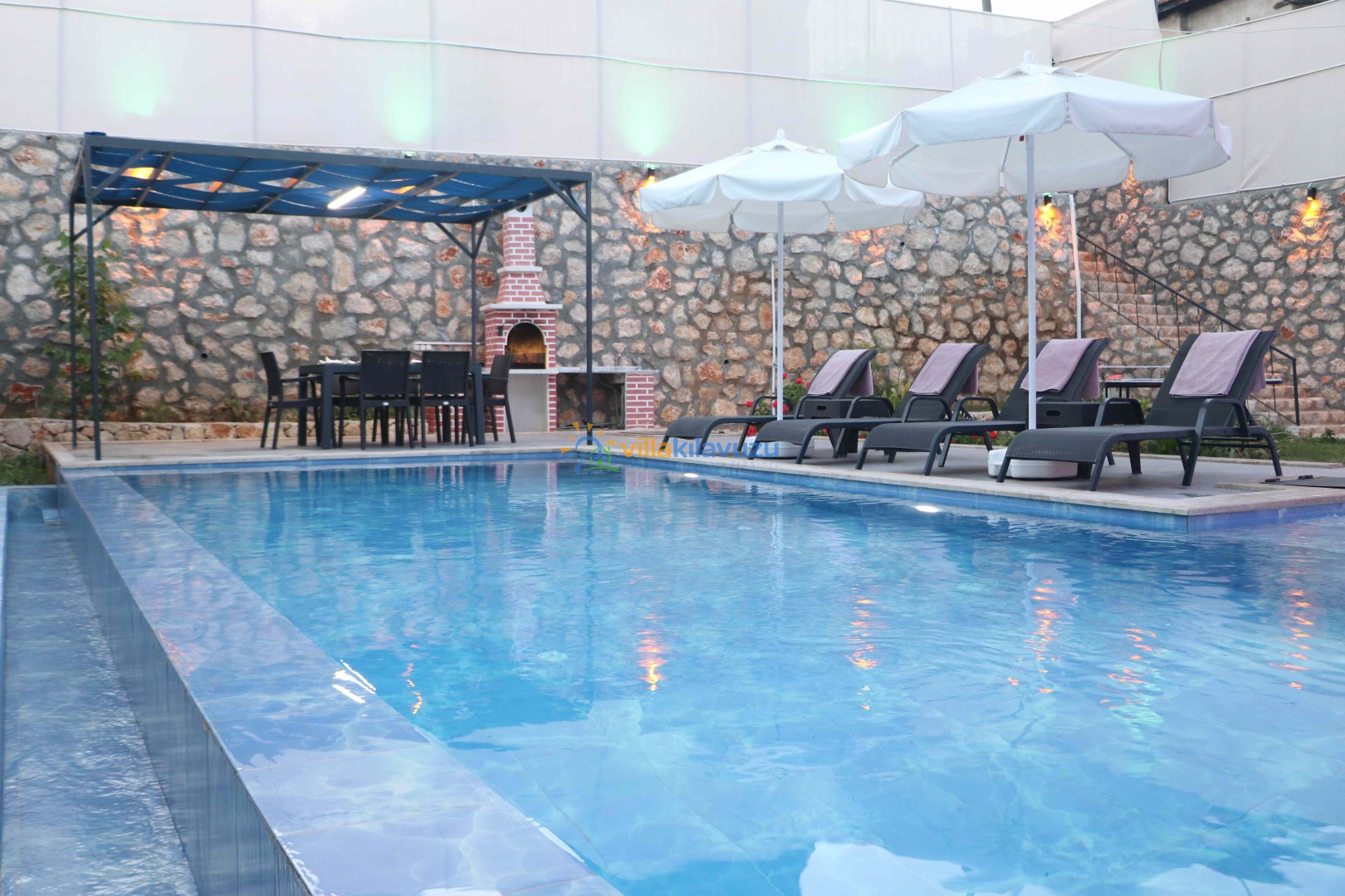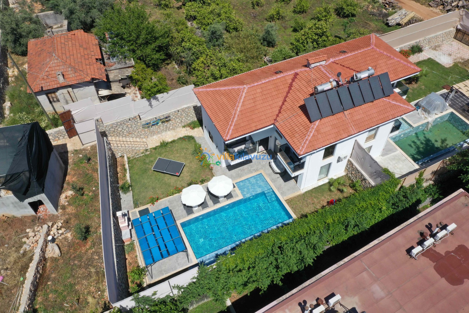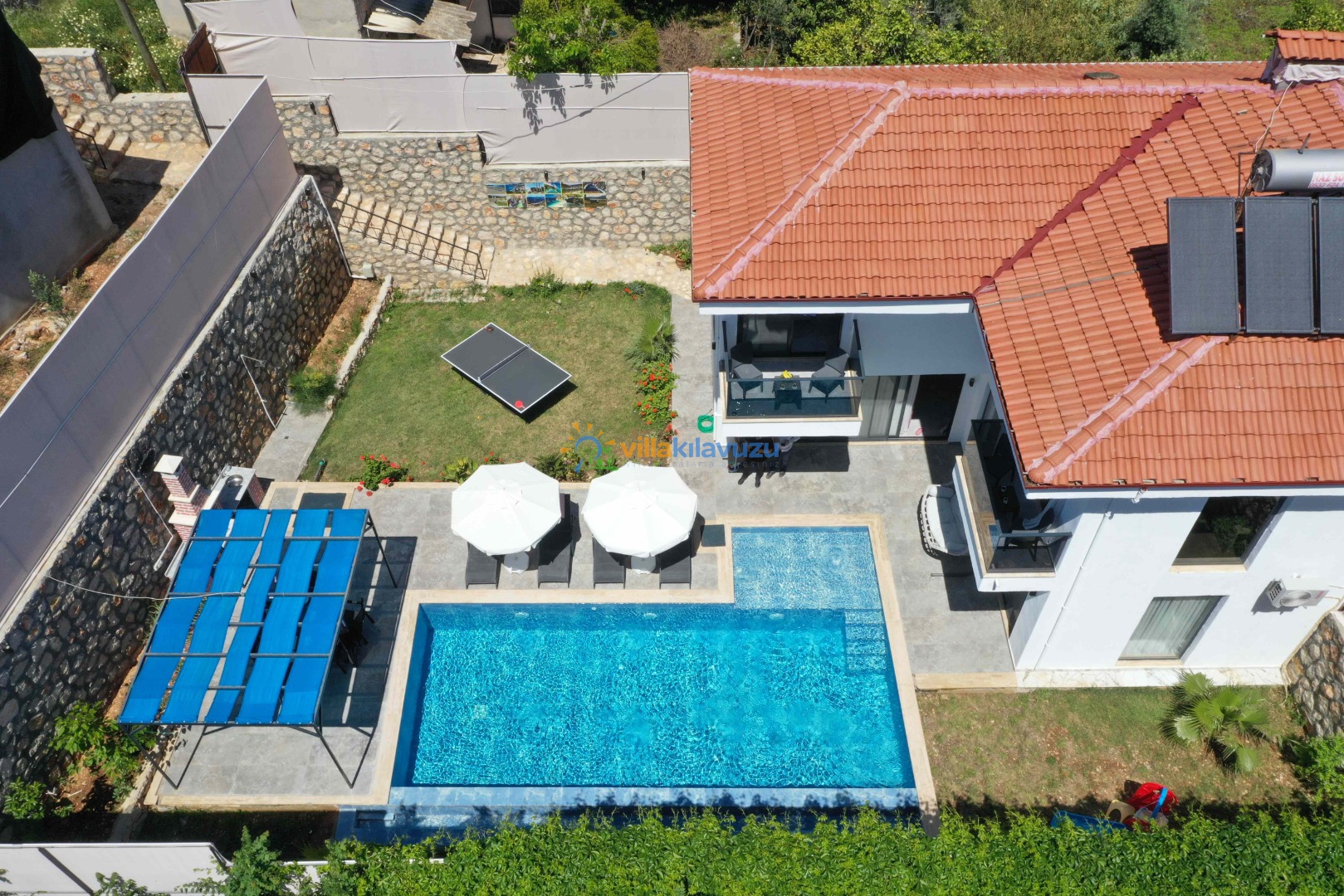 -Villamızın havuz terası korunaklıdır.