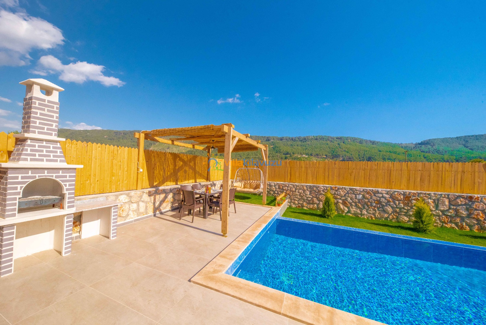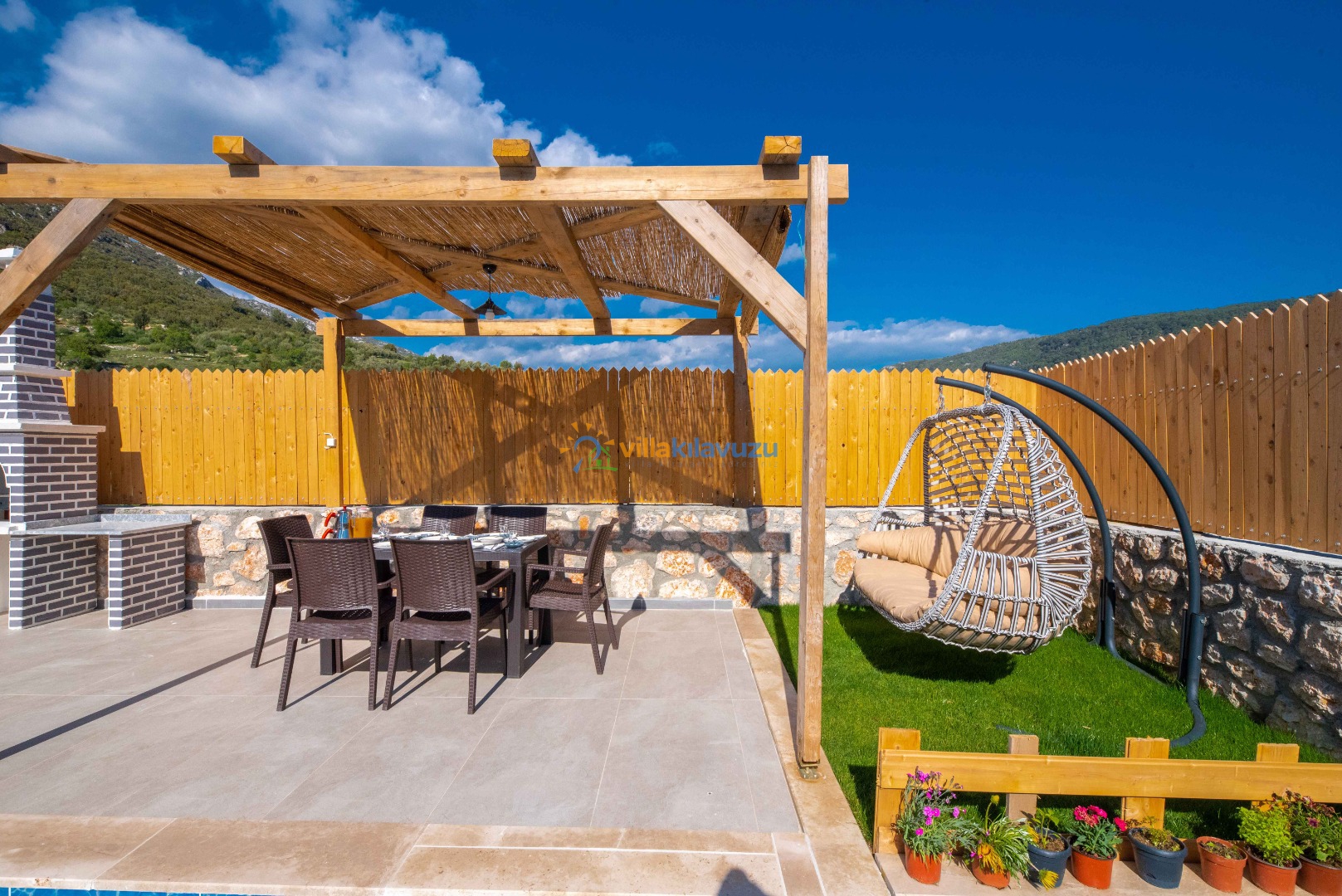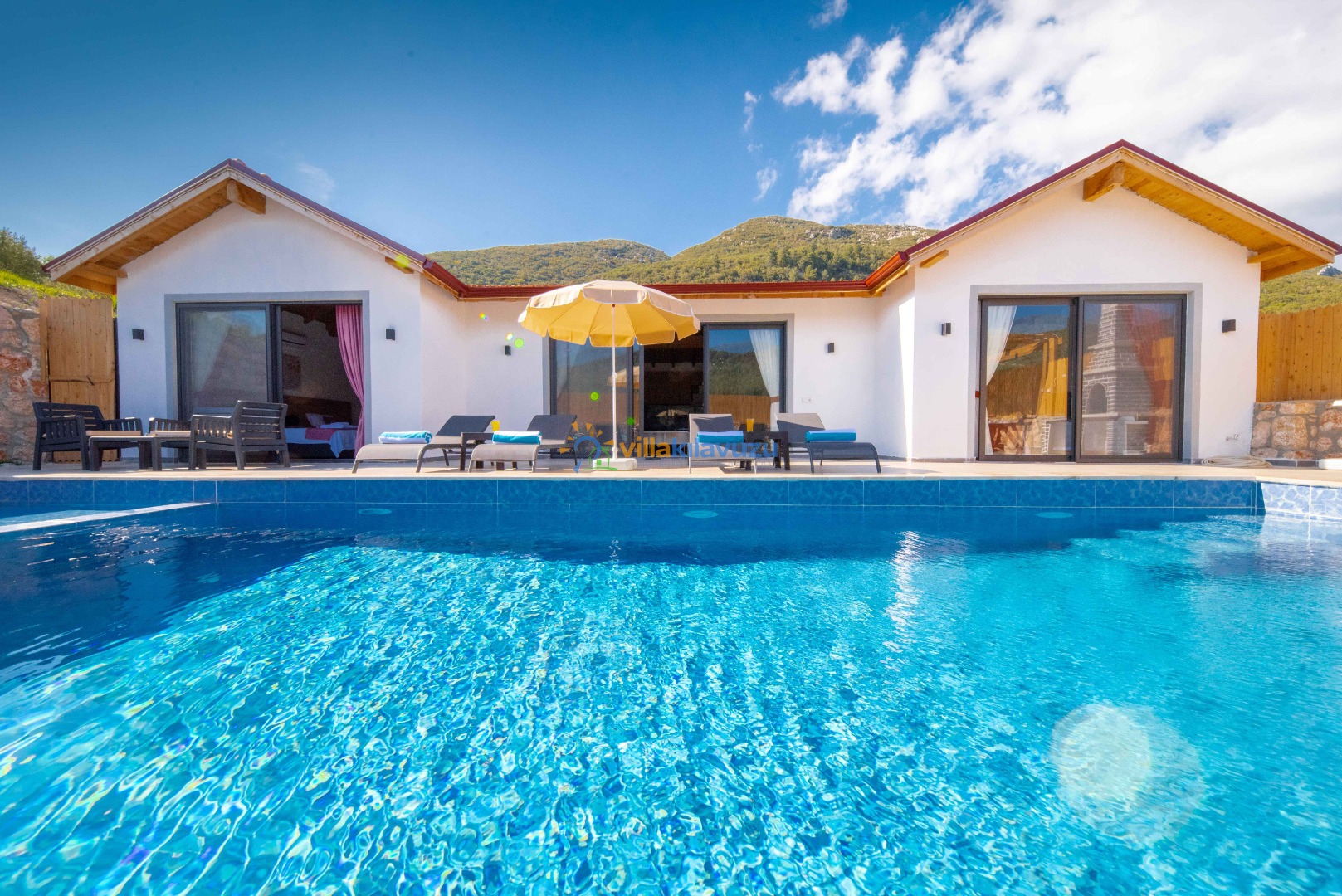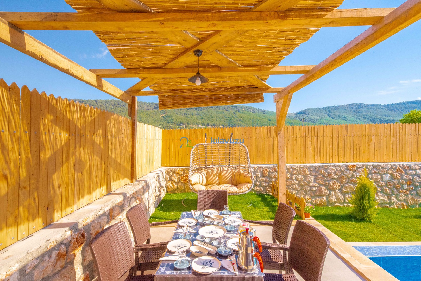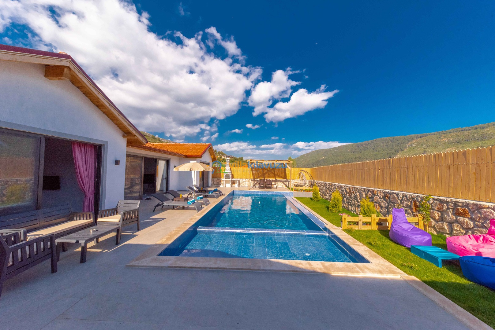 -Villamızın havuz terası korunaklıdır.