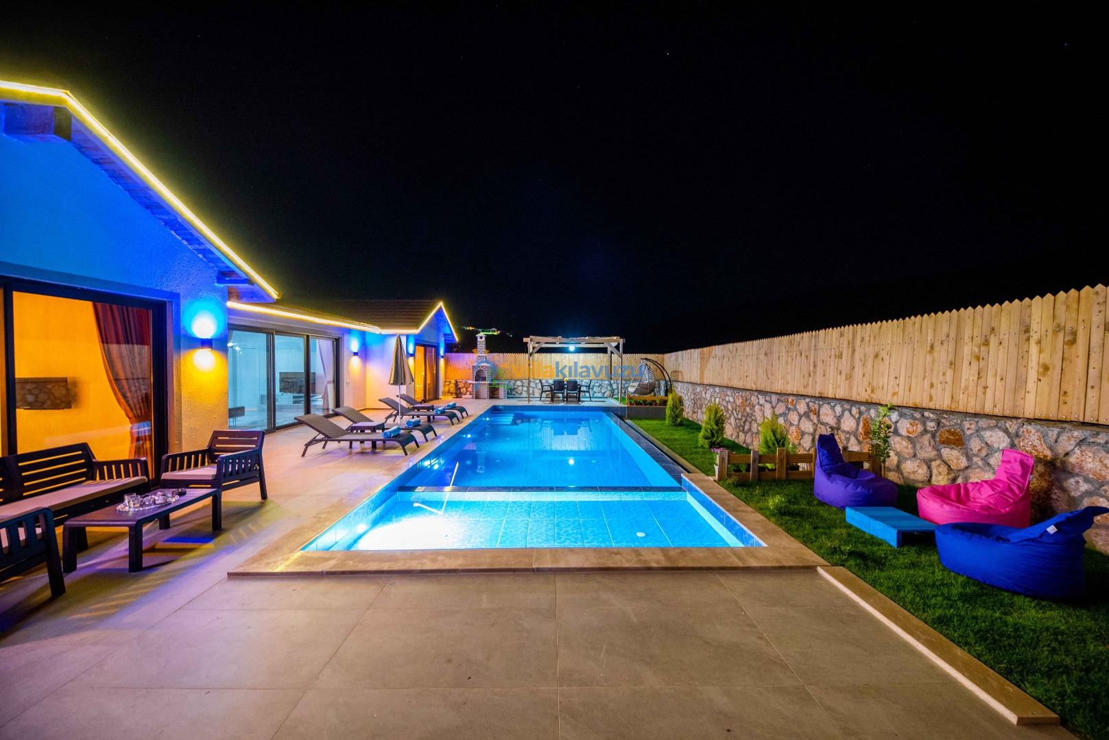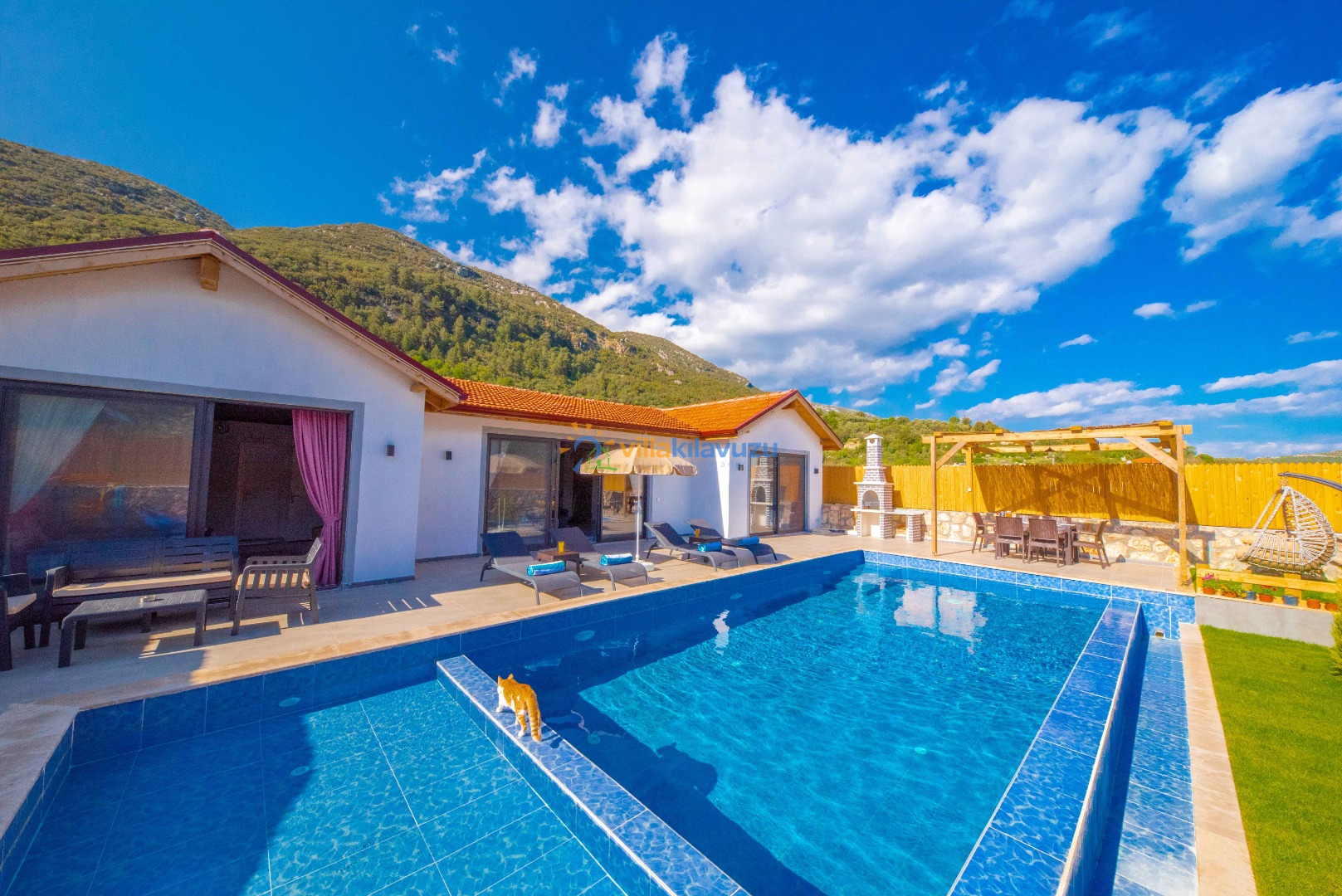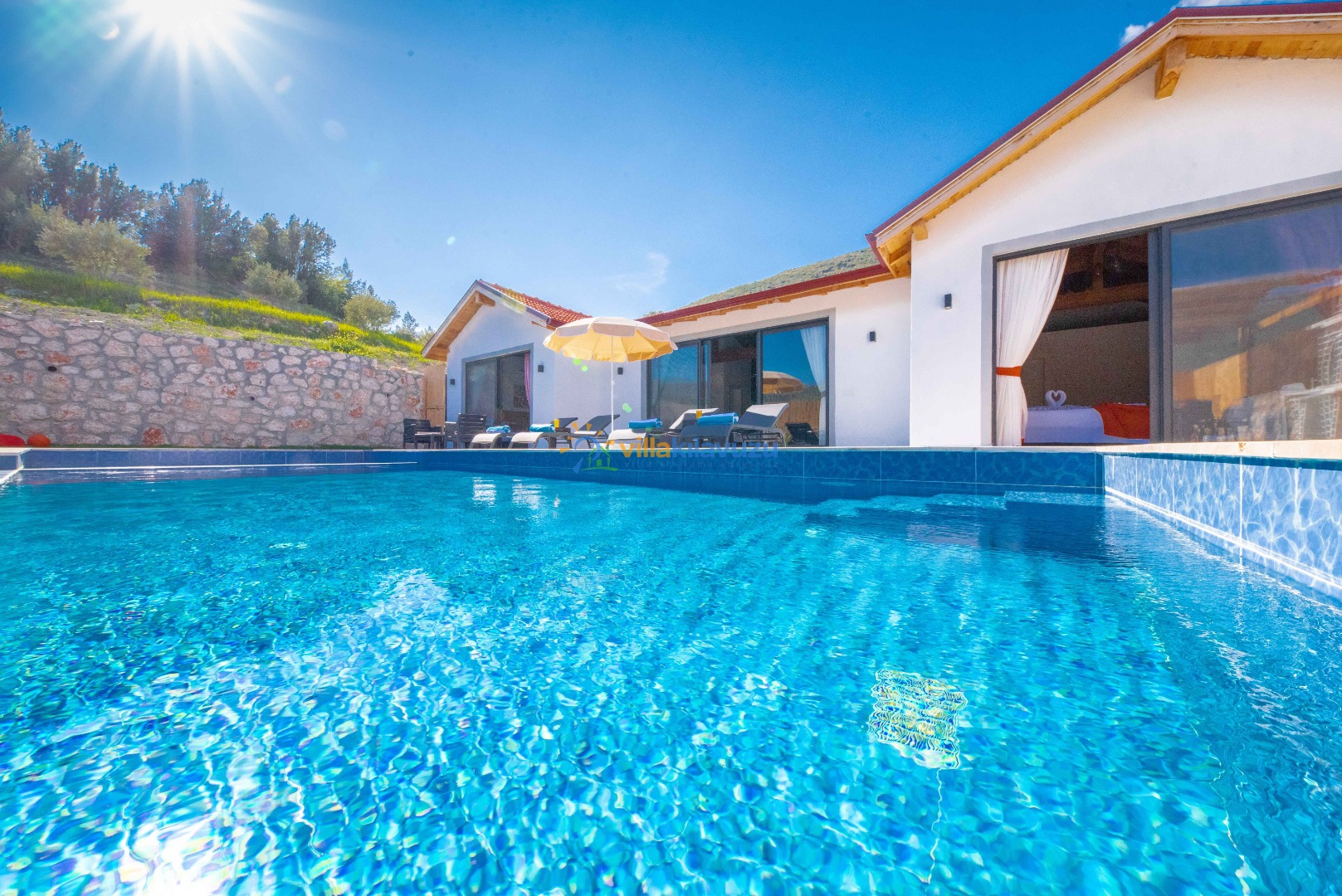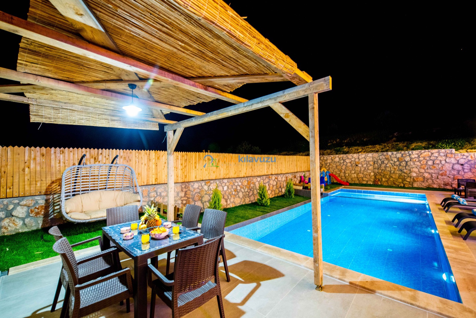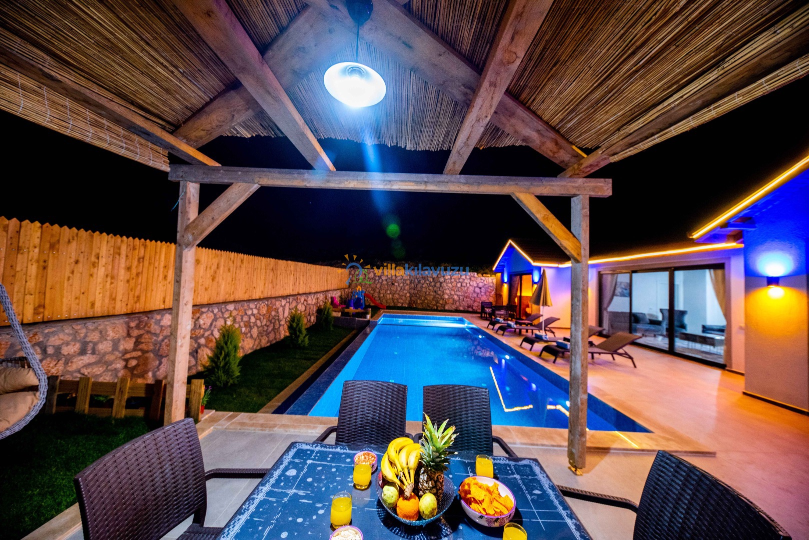 -Villamızın havuz terası korunaklıdır.