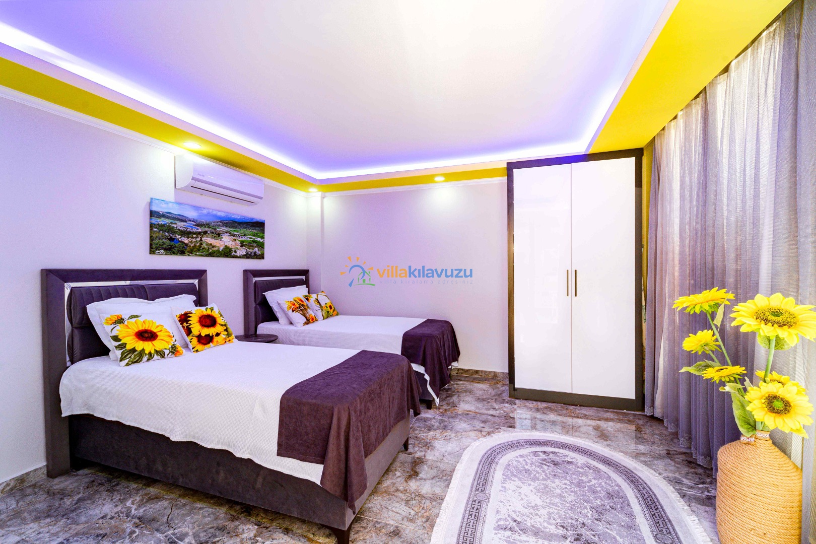 -Villamız 3 yatak odasına sahip olup 6 kişilik konaklama kapasitesine sahiptir.