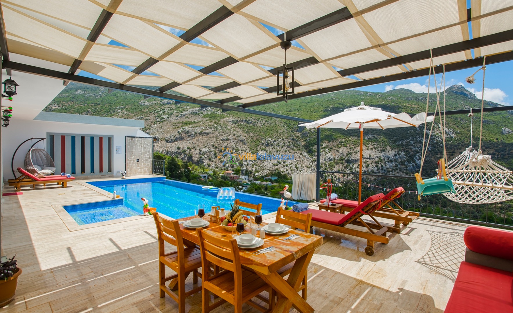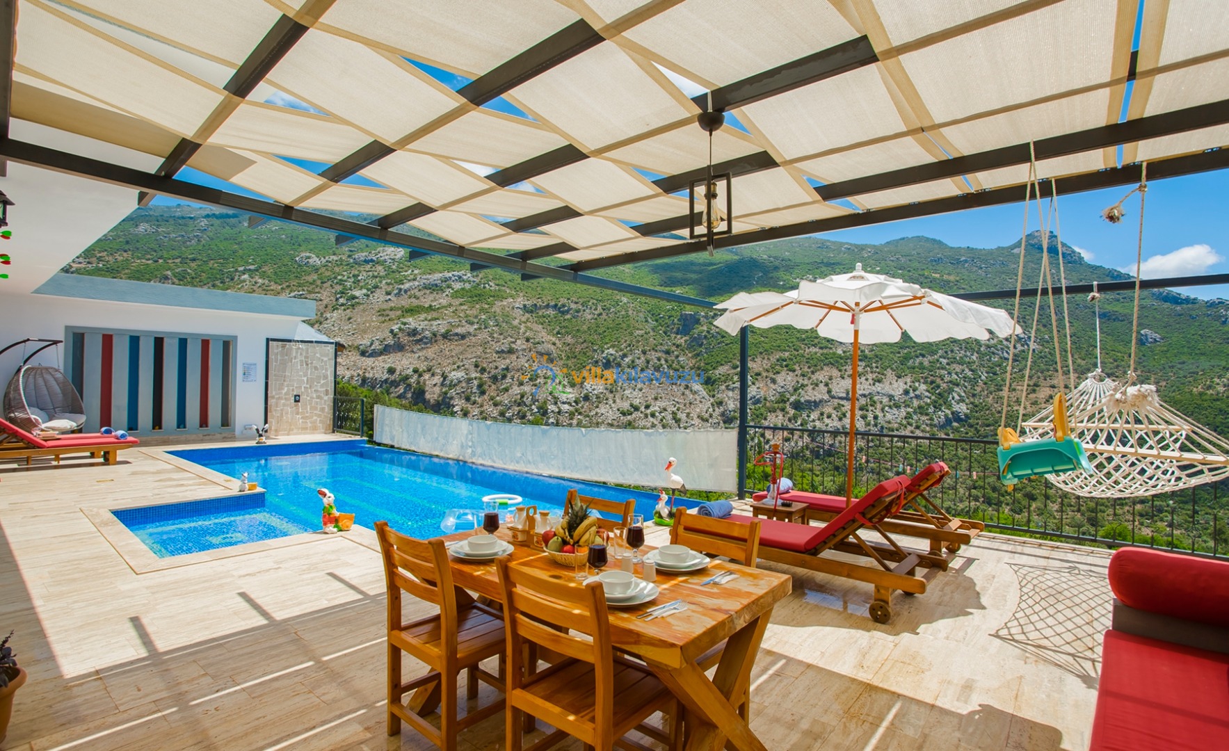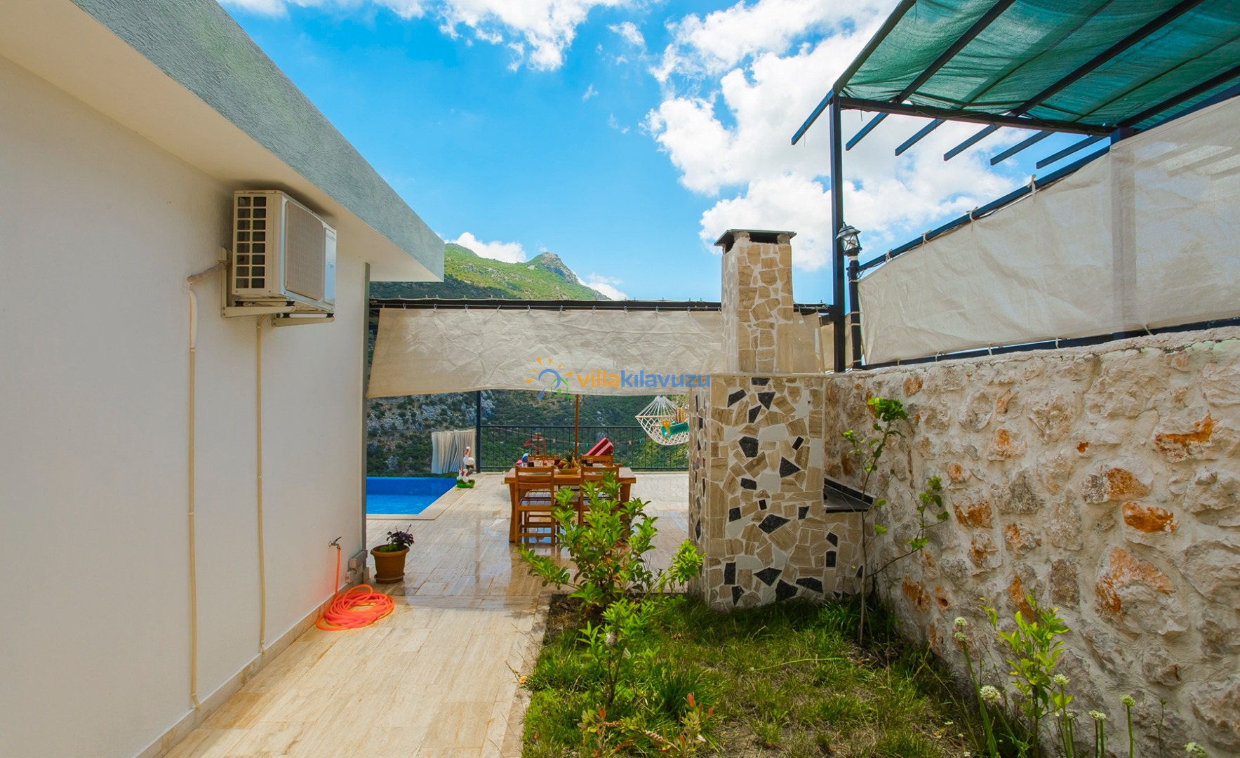-Villamızın havuz terası korunaklıdır.