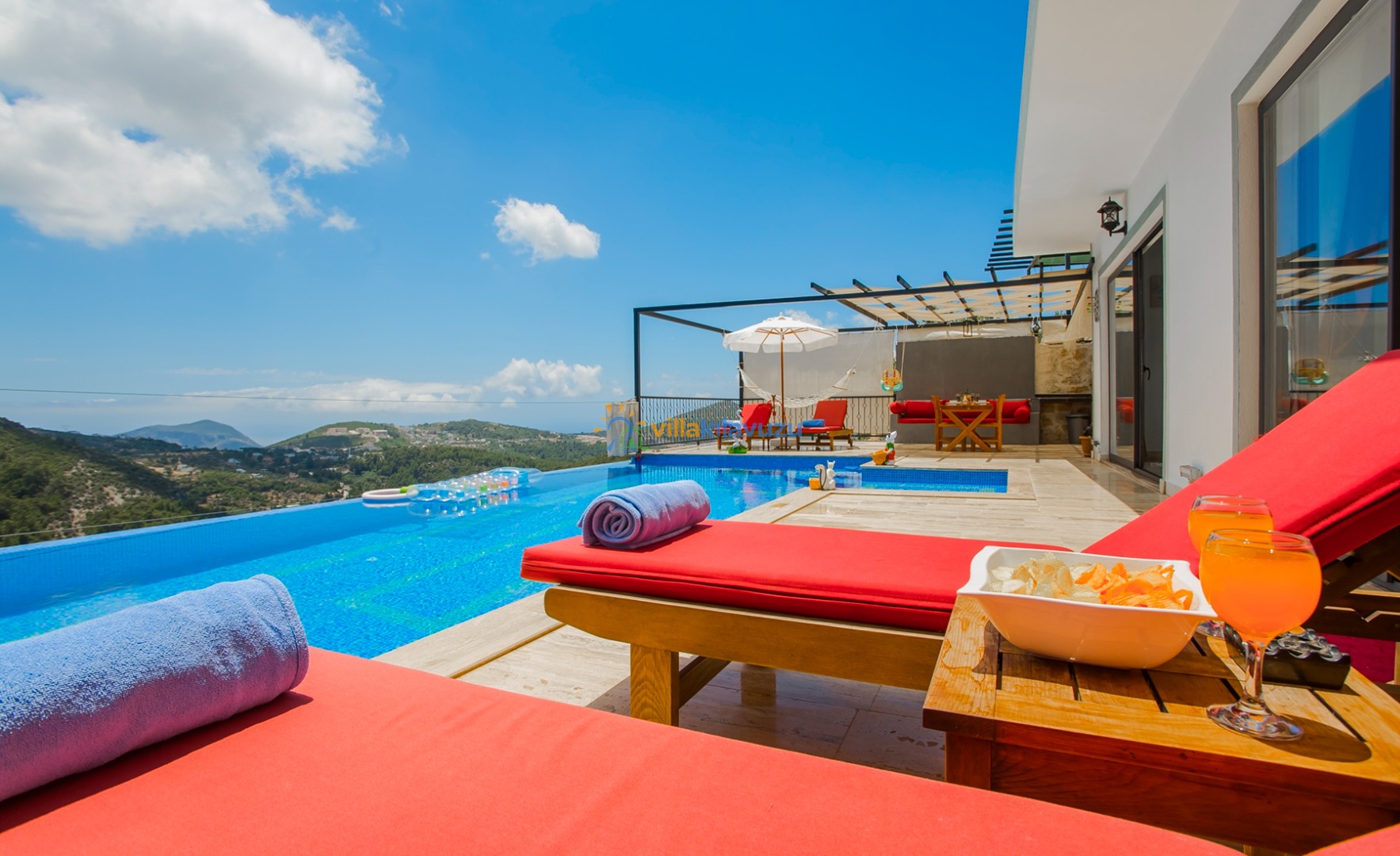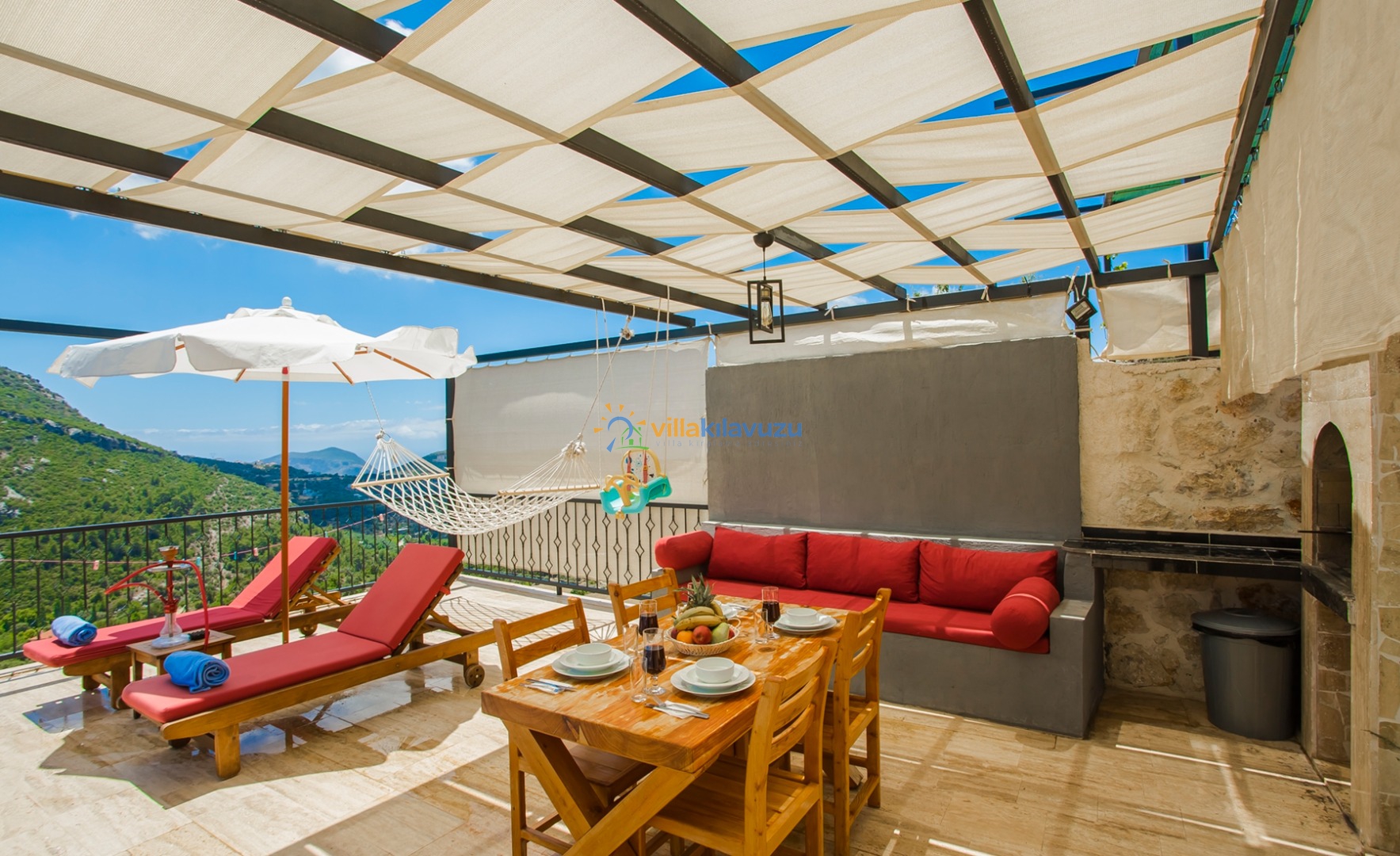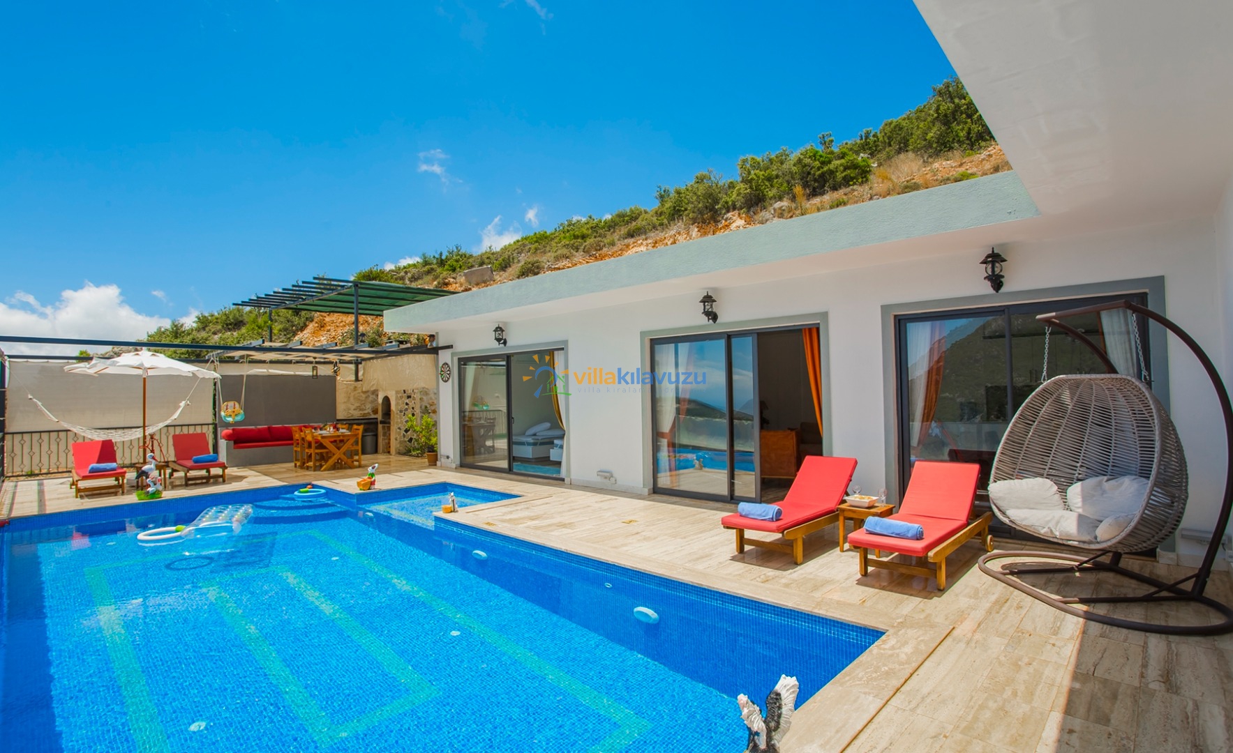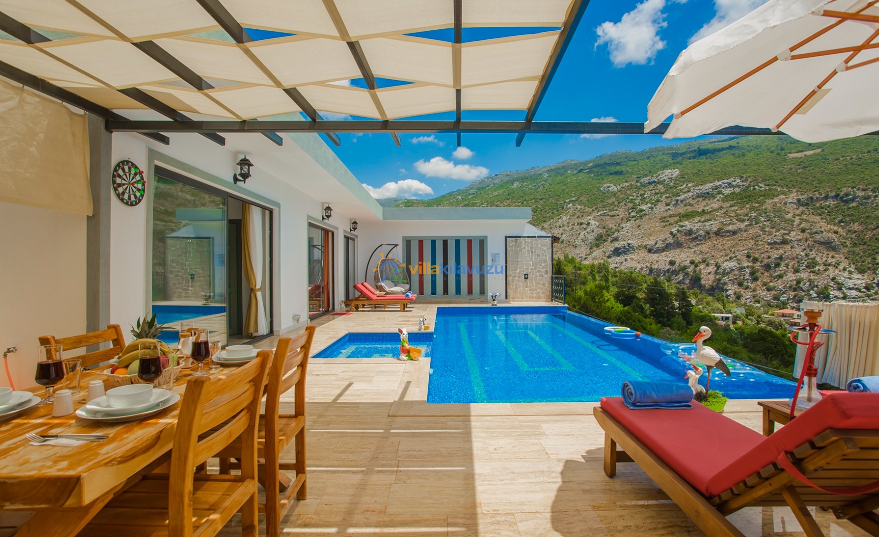 -Villamızın havuz terası korunaklıdır.