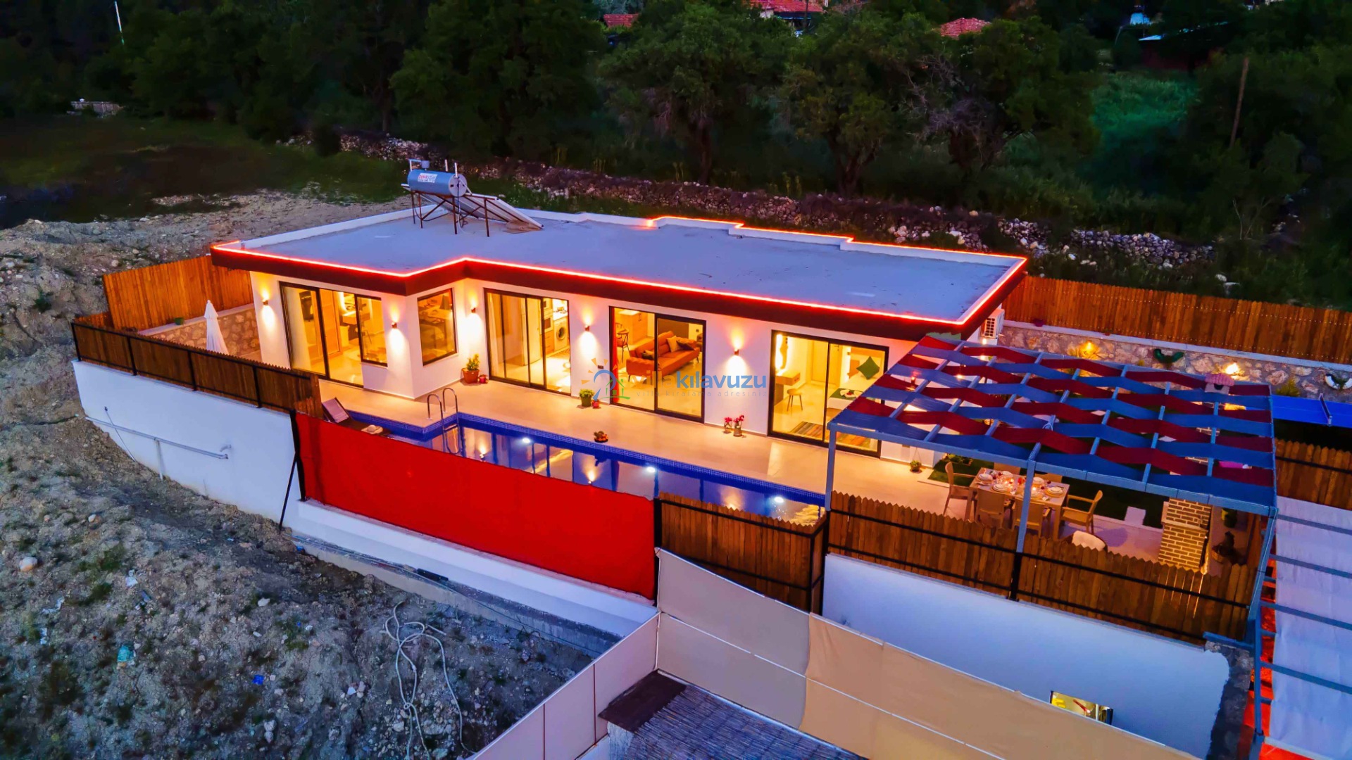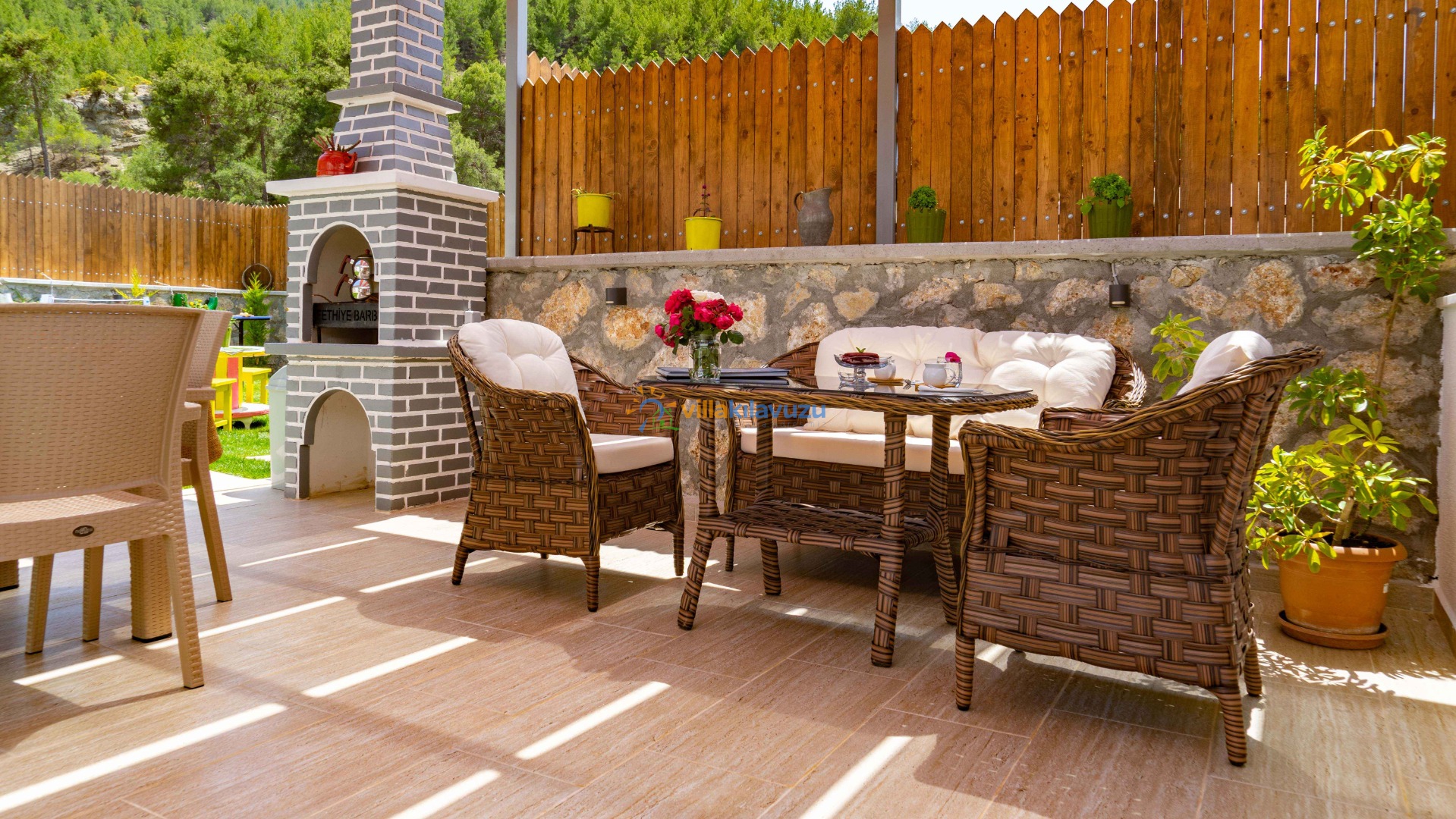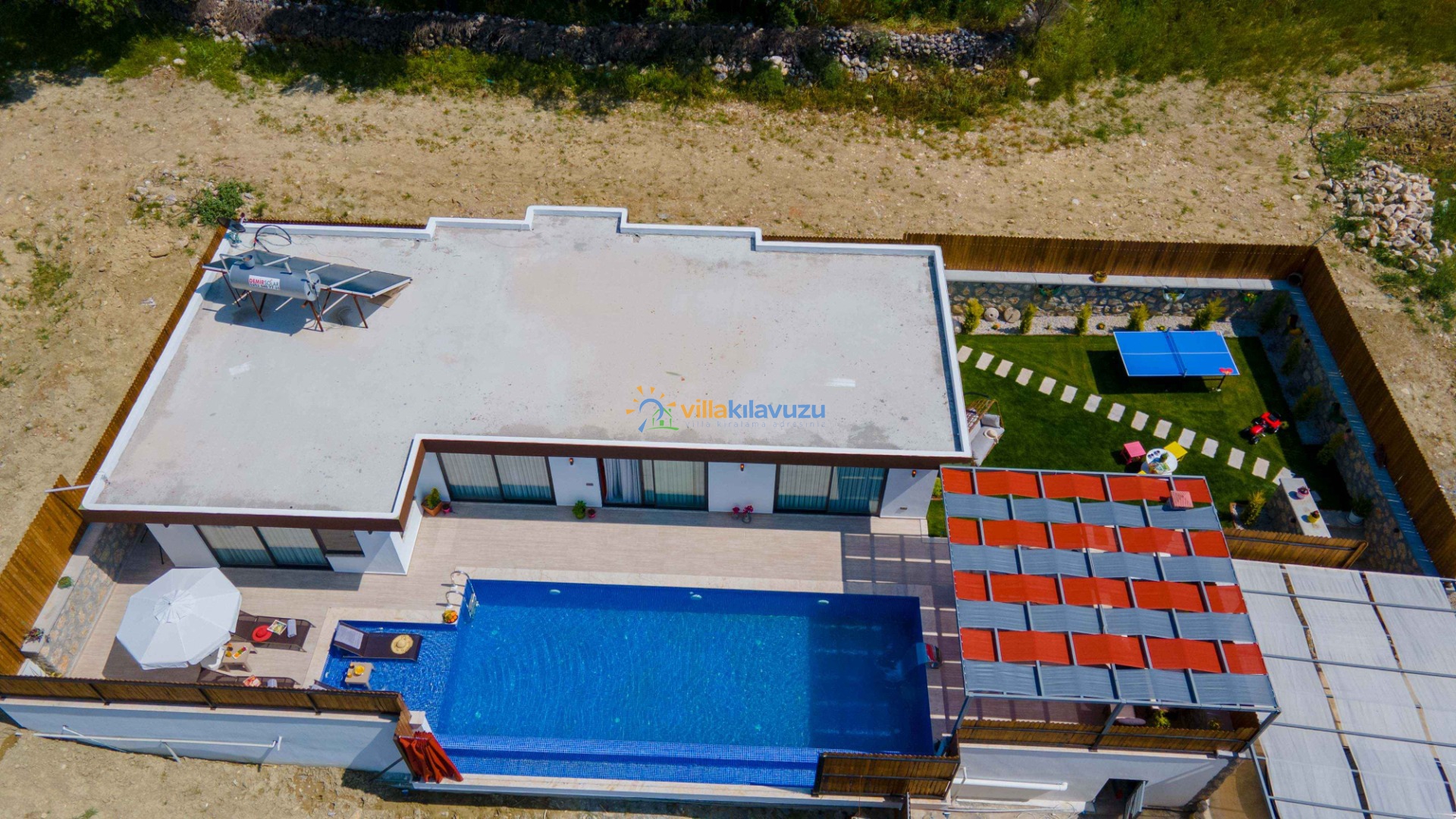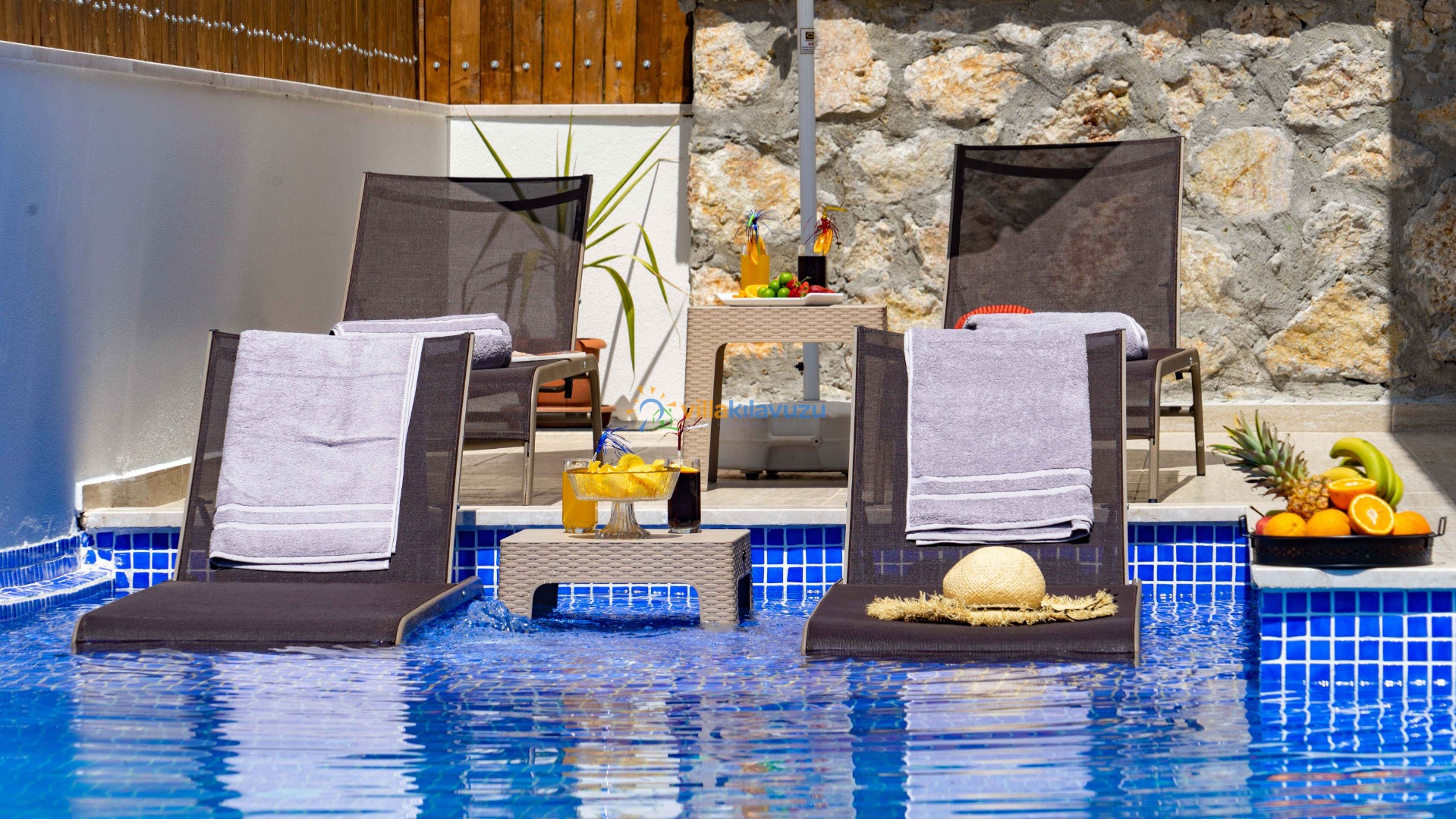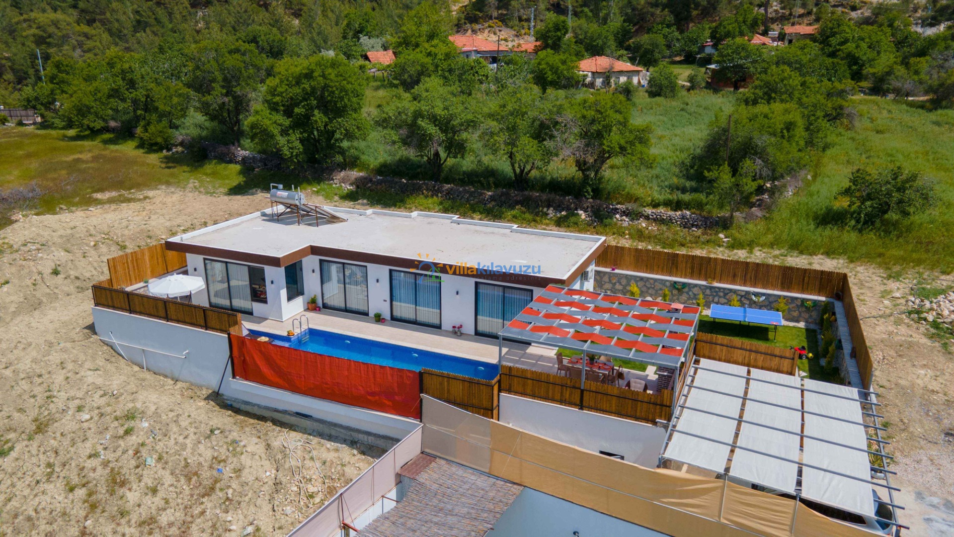 -Villamızın havuz terası korunaklıdır.