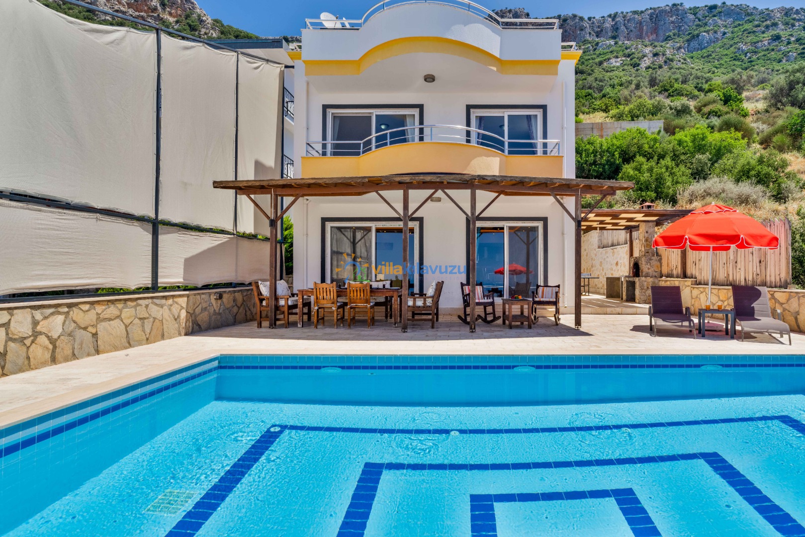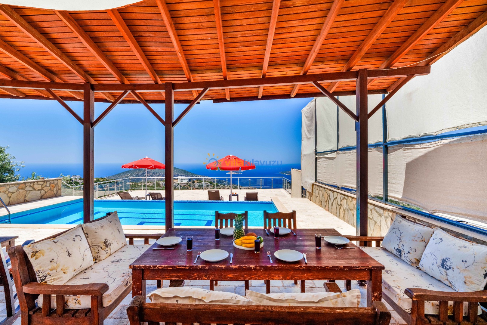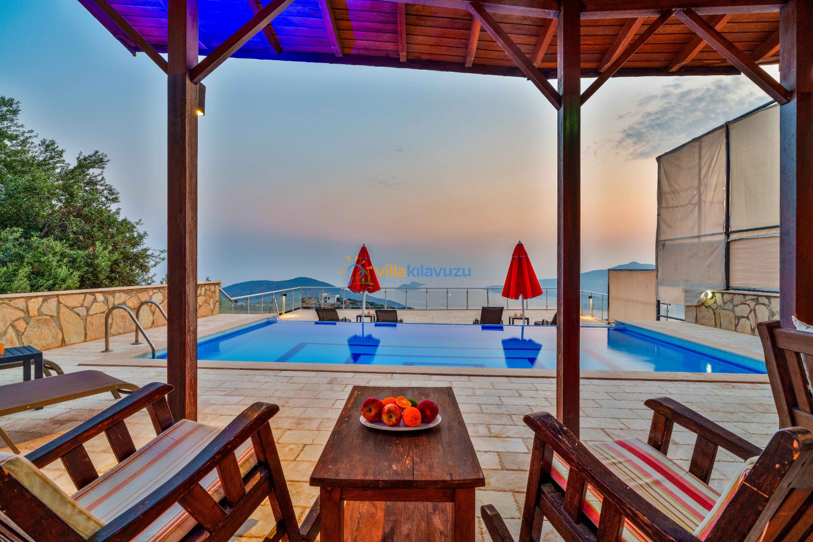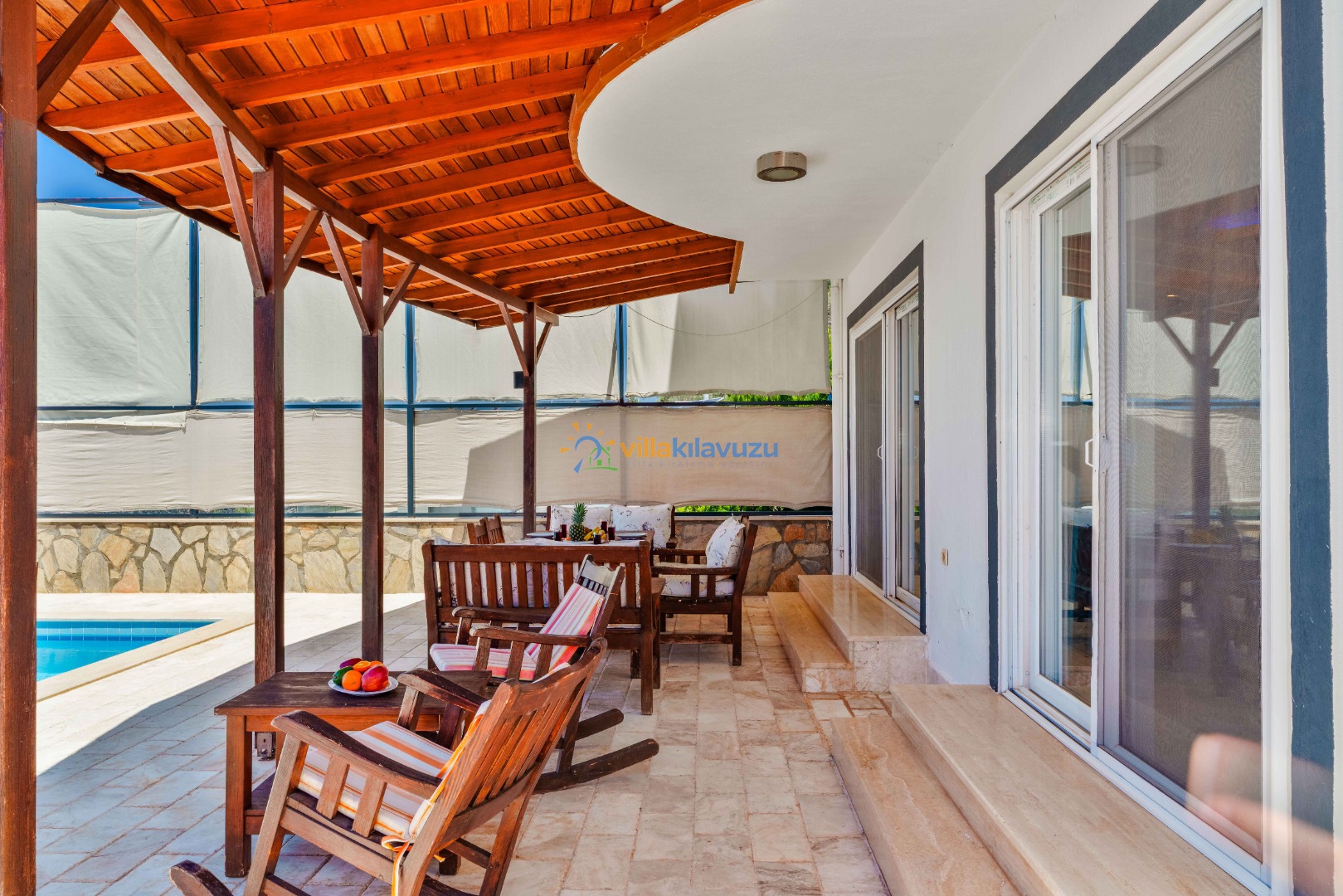 -Villamızın havuz terası korunaklıdır.