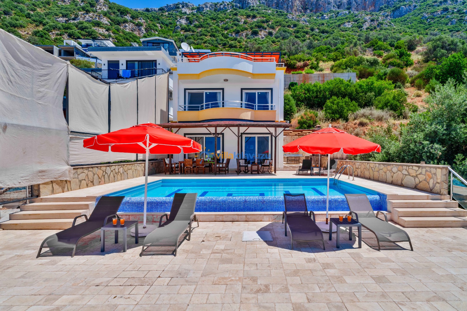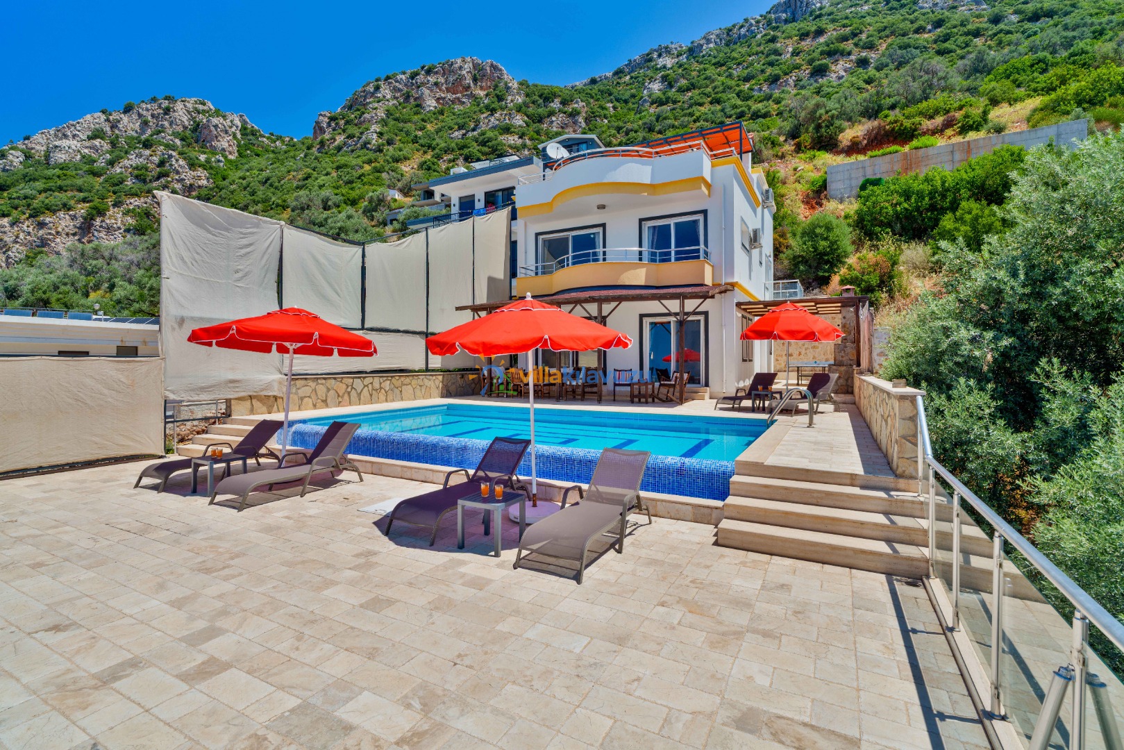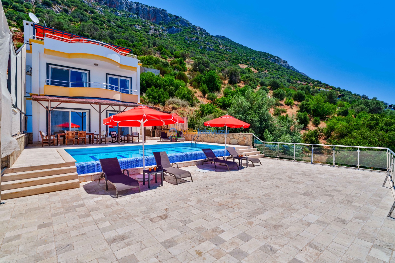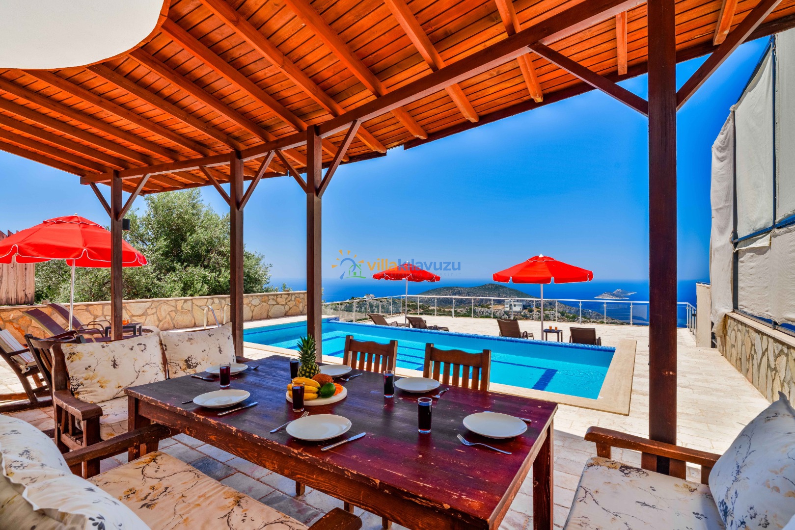 -Villamızın havuz terası korunaklıdır.