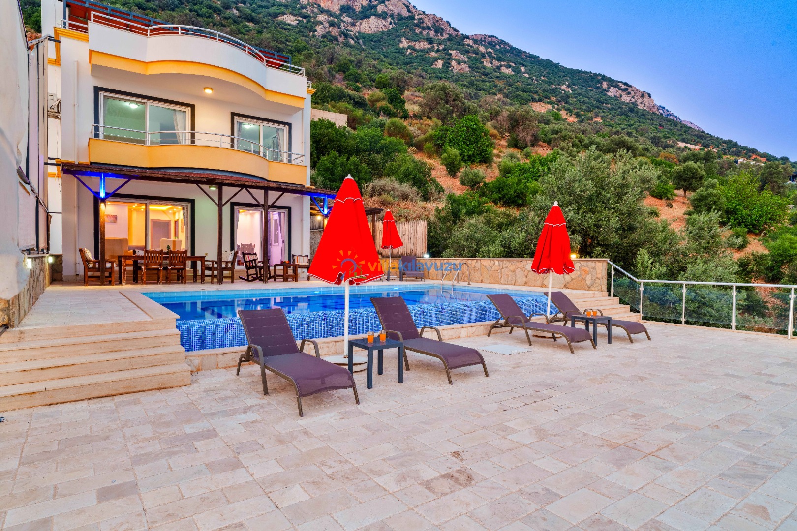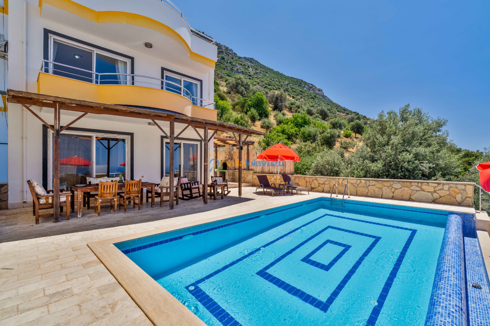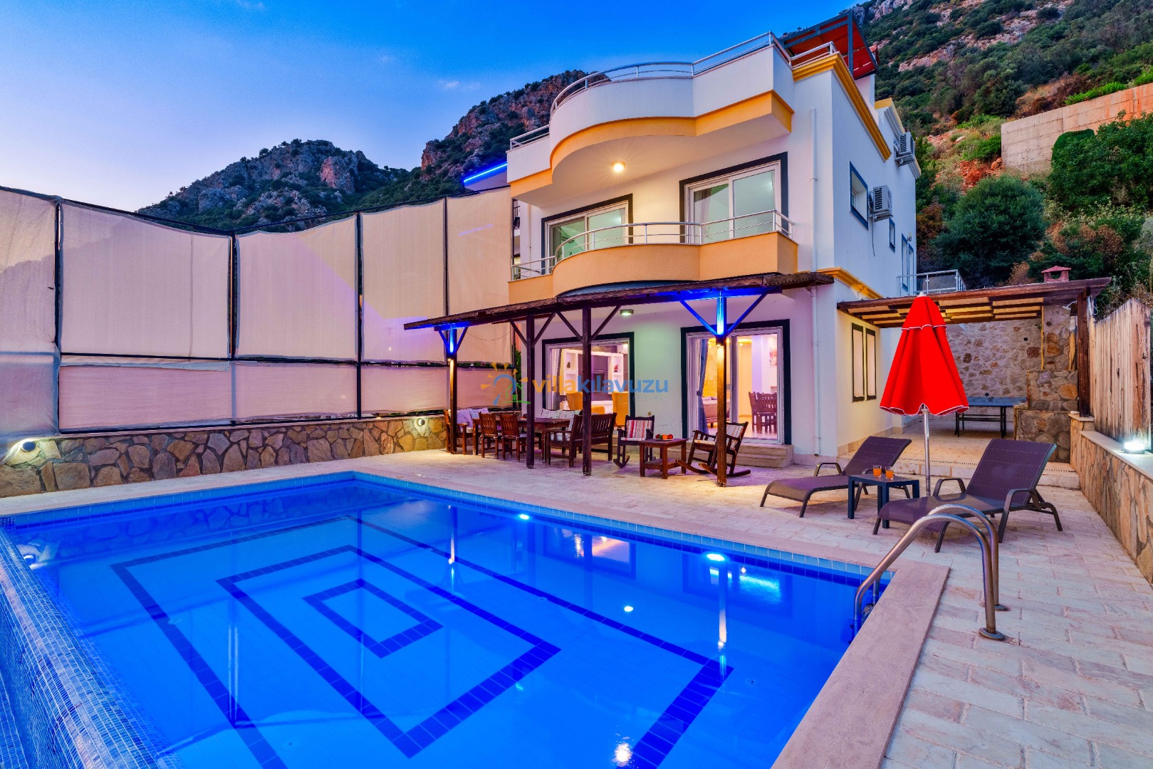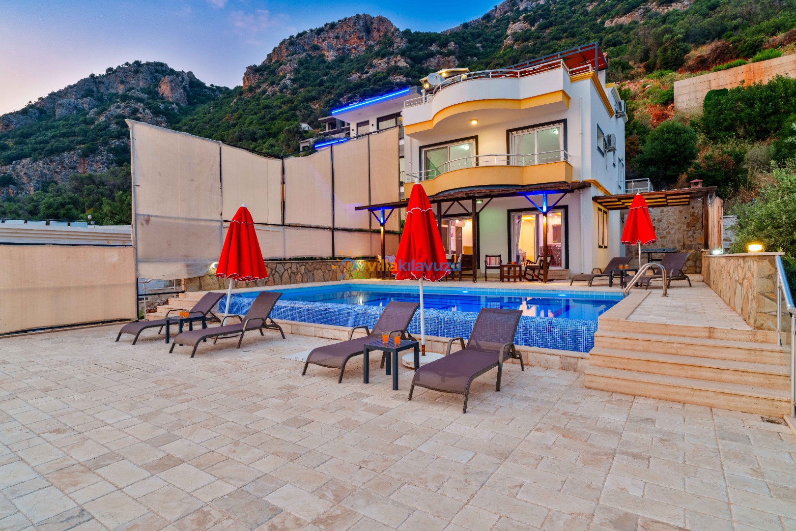 -Villamızın havuz terası korunaklıdır.