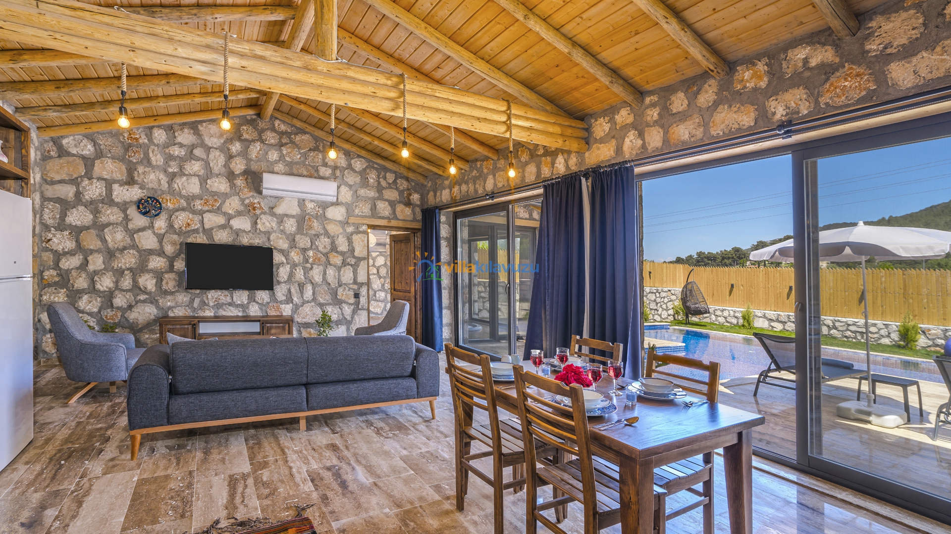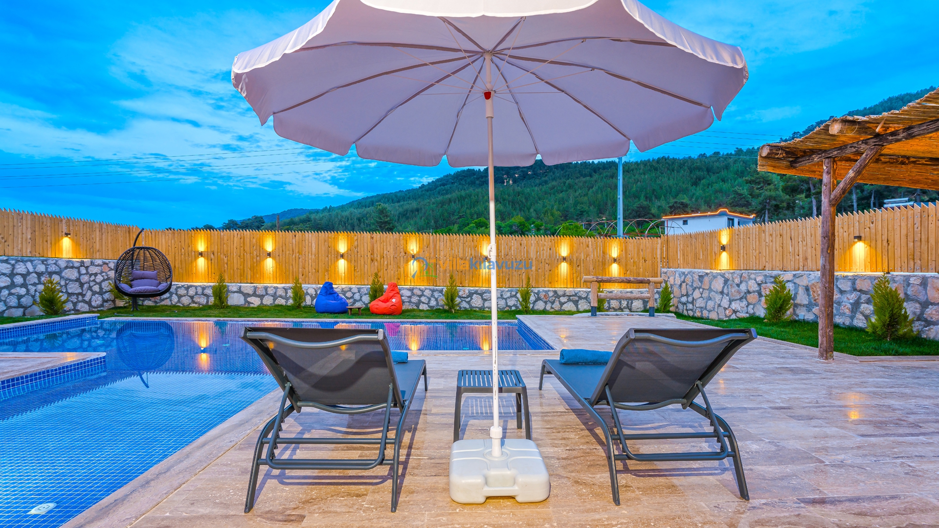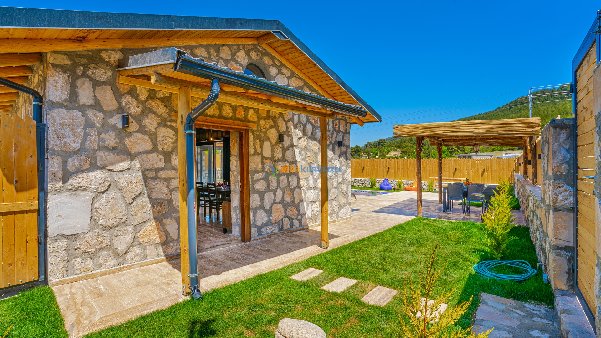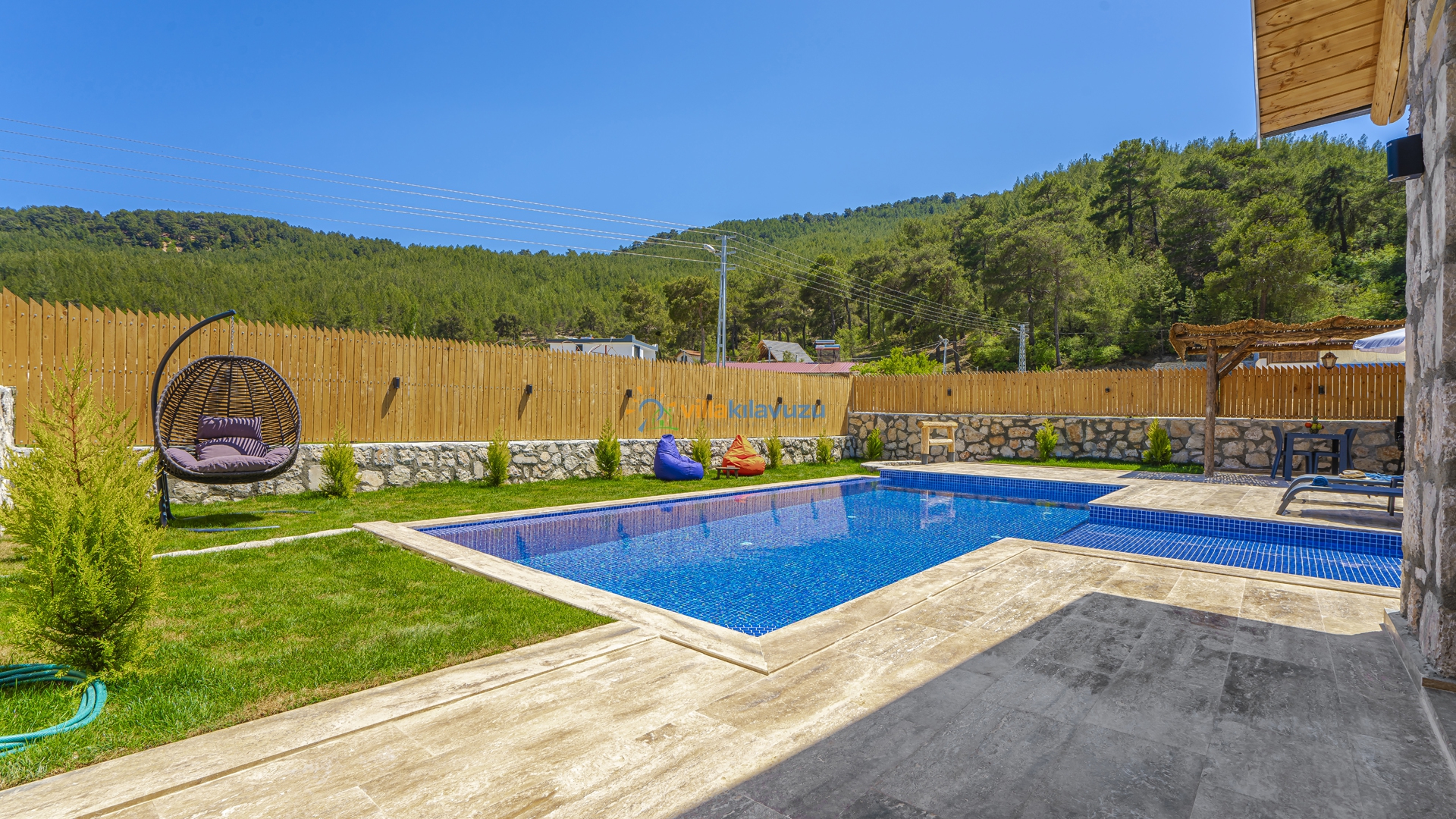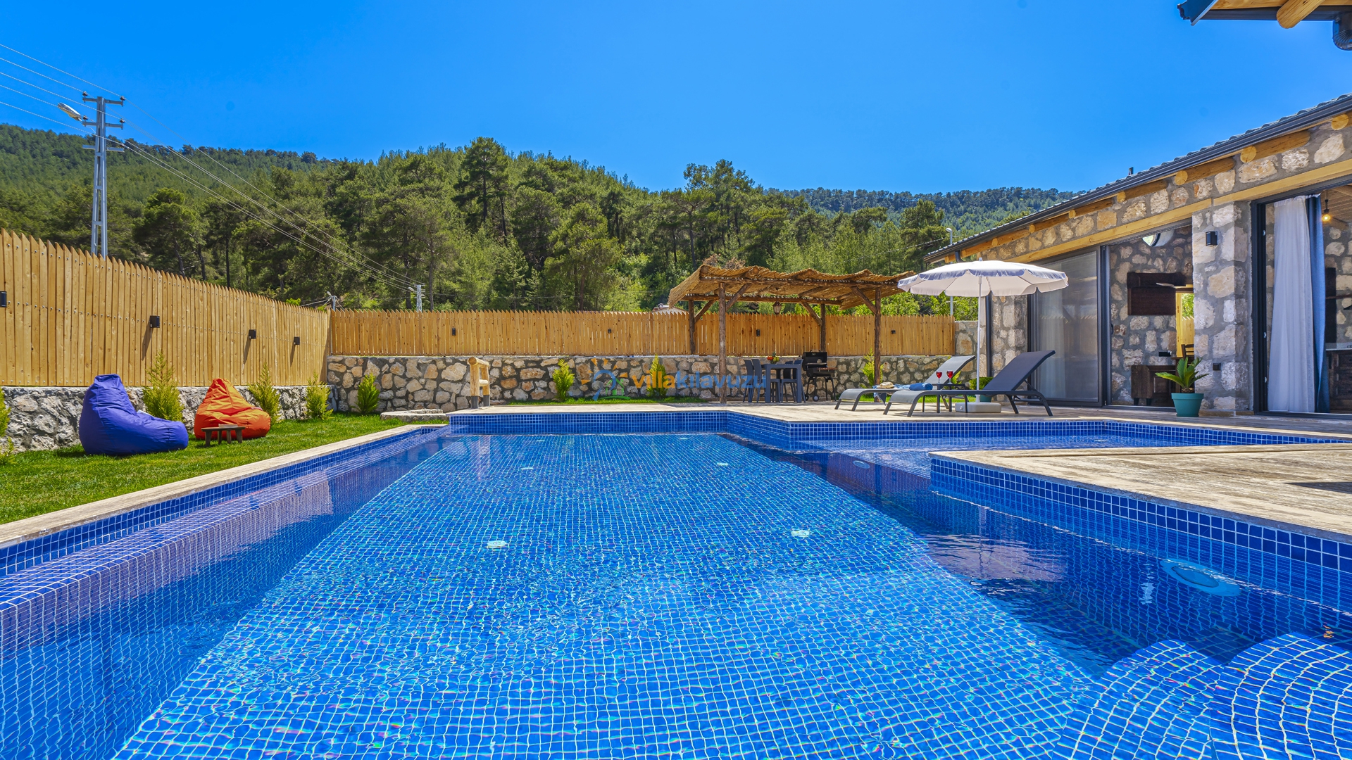 -Villamızın havuz terası korunaklıdır.