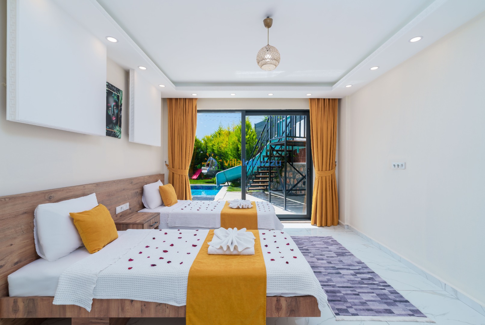 -Villamız 2 yatak odasına sahip olup 4 kişilik konaklama kapasitesine sahiptir.