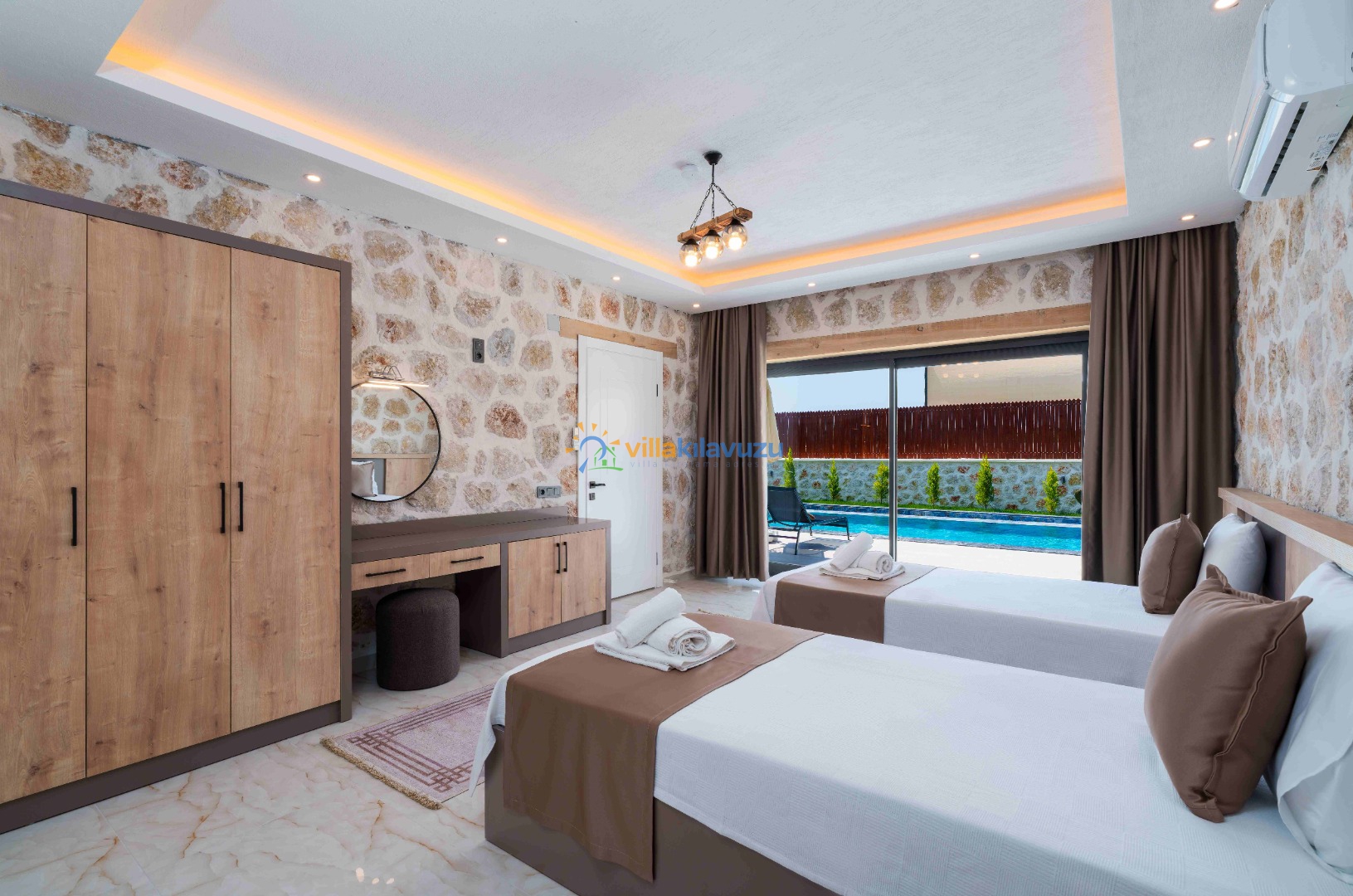 -Villamız 2 yatak odasına sahip olup 4 kişilik konaklama kapasitesine sahiptir.