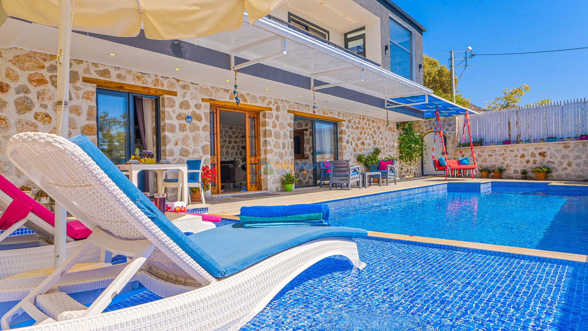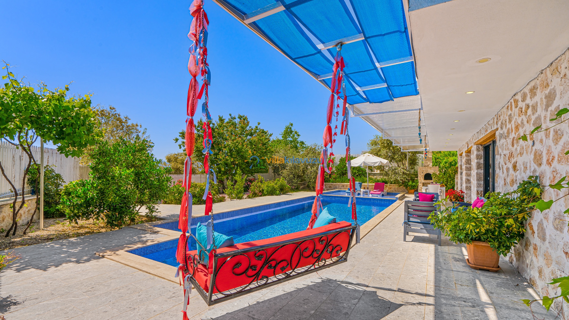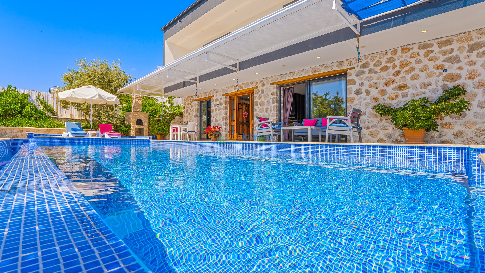 -Villamızın havuz terası korunaklıdır.