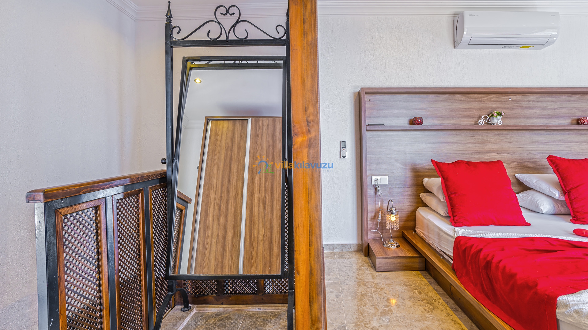 -Villamız 1 yatak odasına sahip olup 2 kişilik konaklama kapasitesine sahiptir.