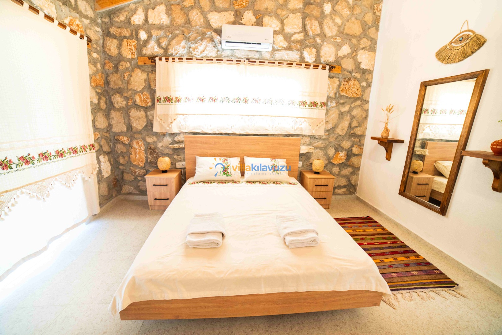 -Villamız 1 yatak odasına sahip olup 2 kişilik konaklama kapasitesine sahiptir.