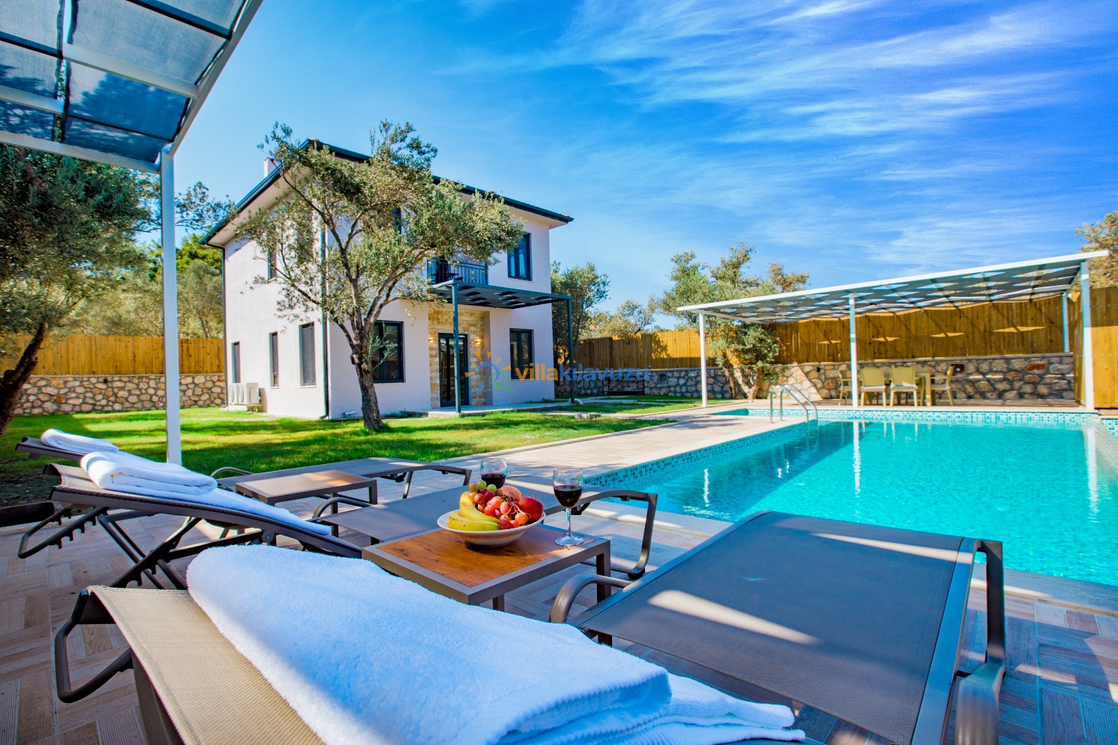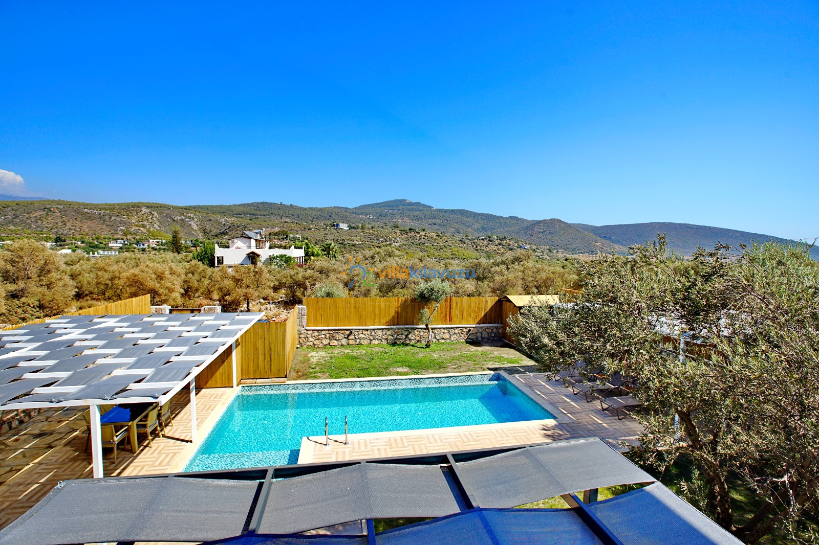 -Villamızın havuz terası korunaklıdır.