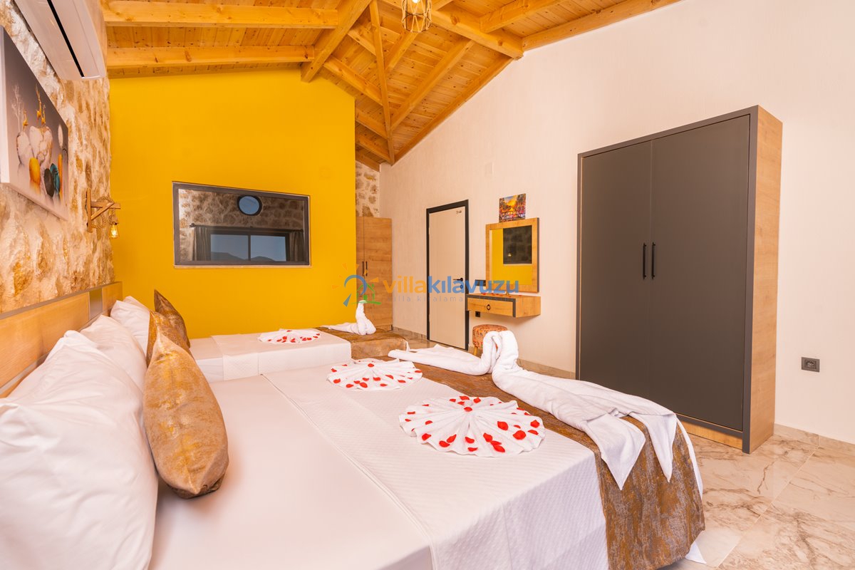 -Villamız 2 yatak odasına sahip olup 5 kişilik konaklama kapasitesine sahiptir.