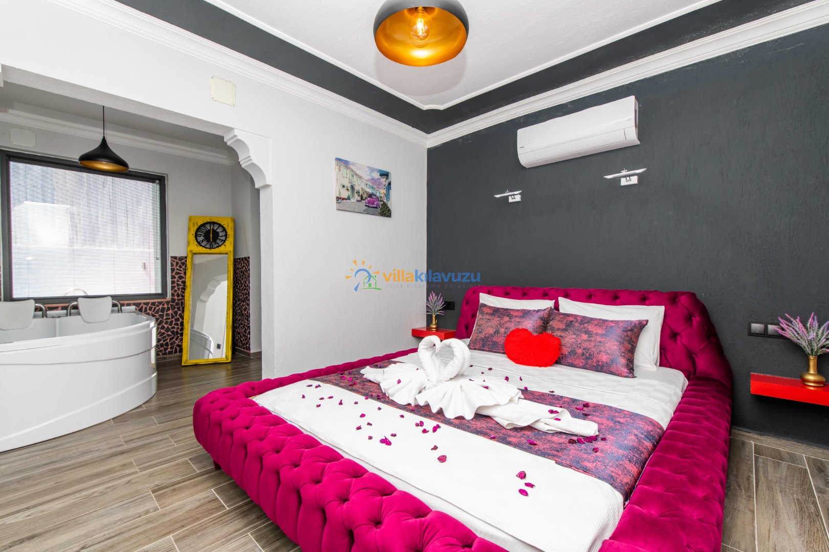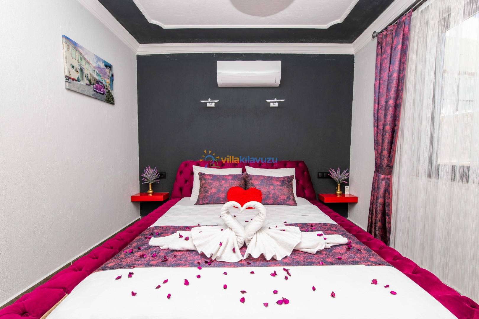-Villamız 1 yatak odasına sahip olup 2 kişilik konaklama kapasitesine sahiptir.
