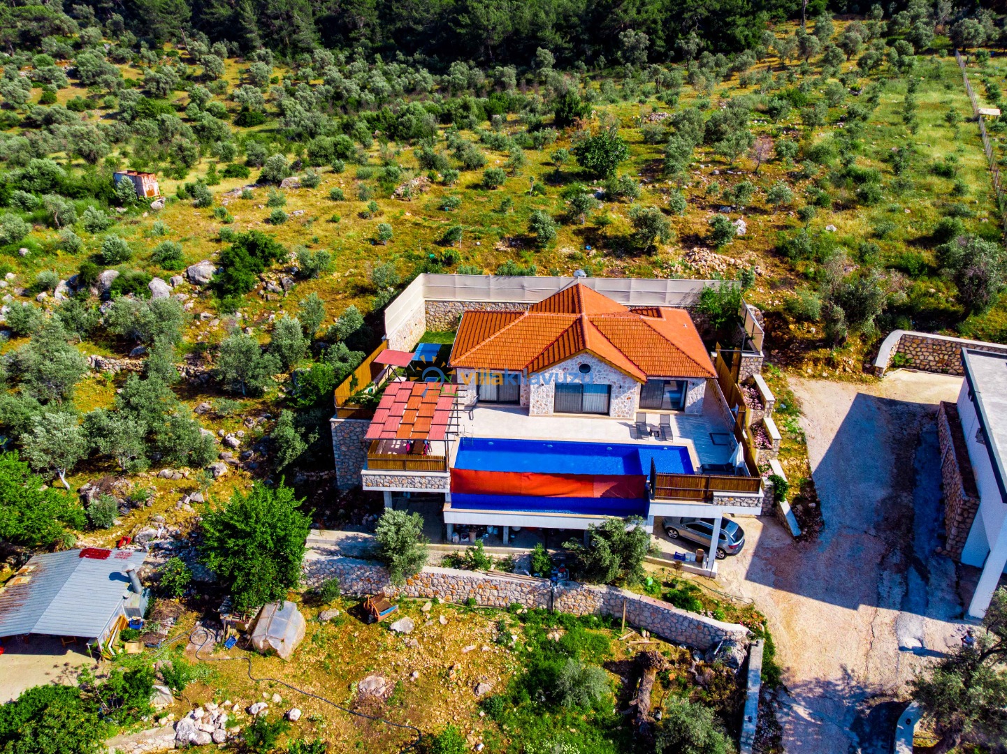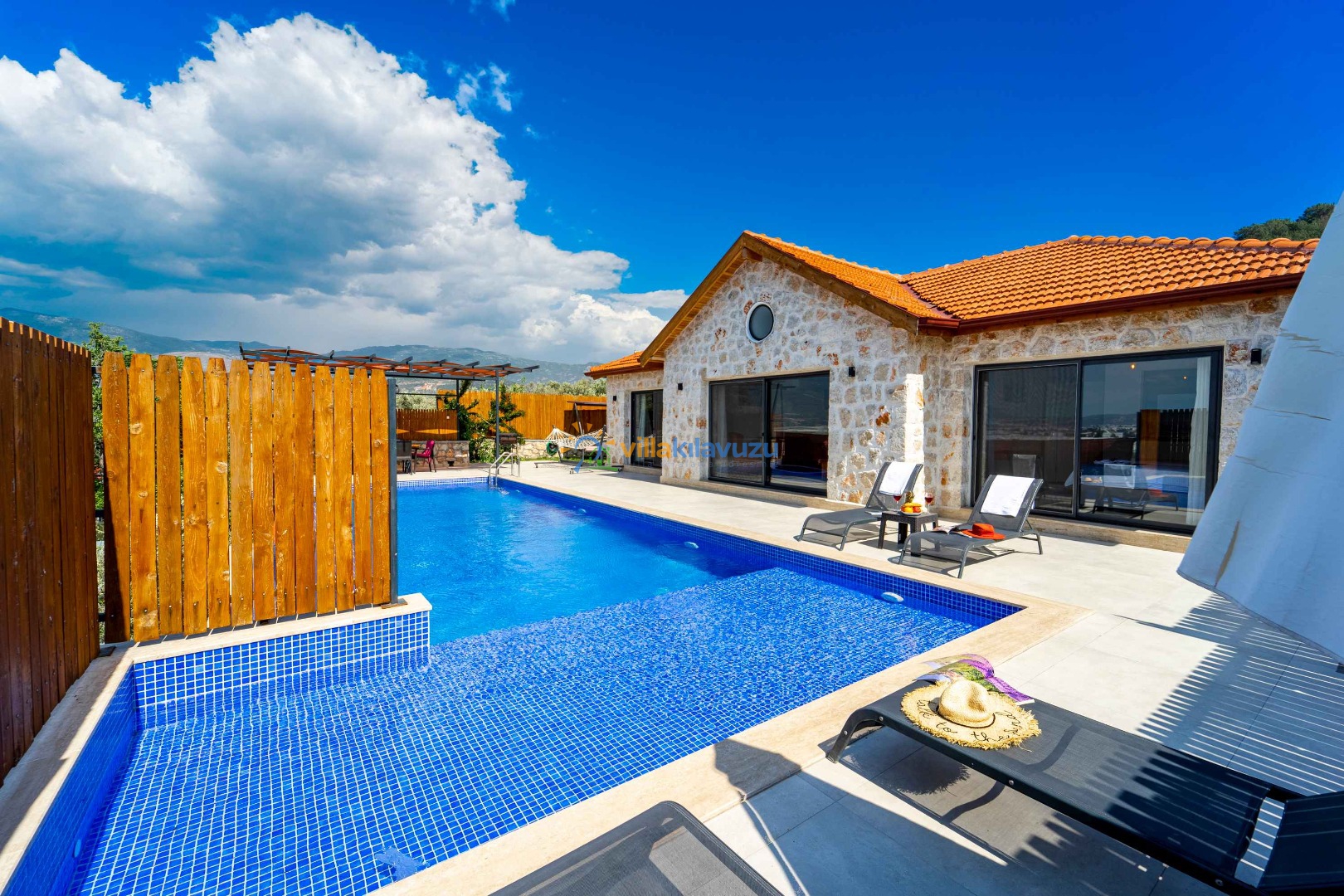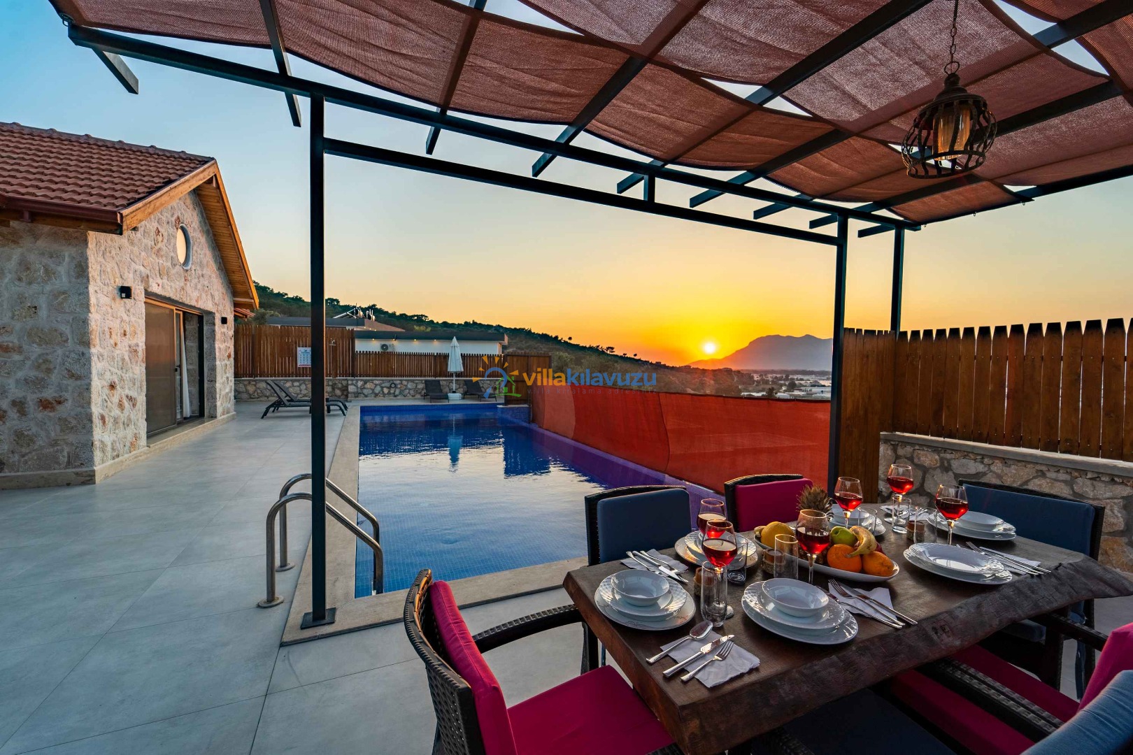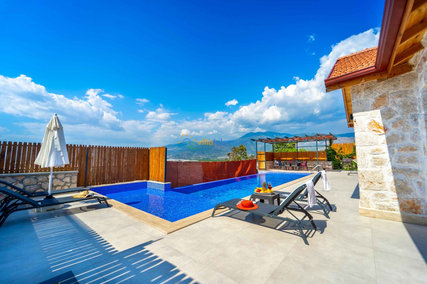 -Villamızın havuz terası korunaklıdır.