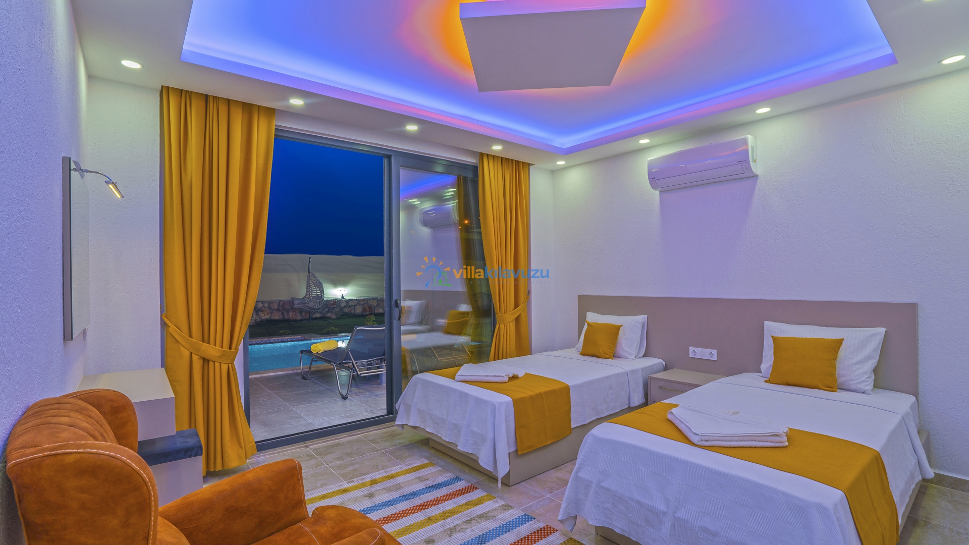 -Villamız 2 yatak odasına sahip olup 4 kişilik konaklama kapasitesine sahiptir.