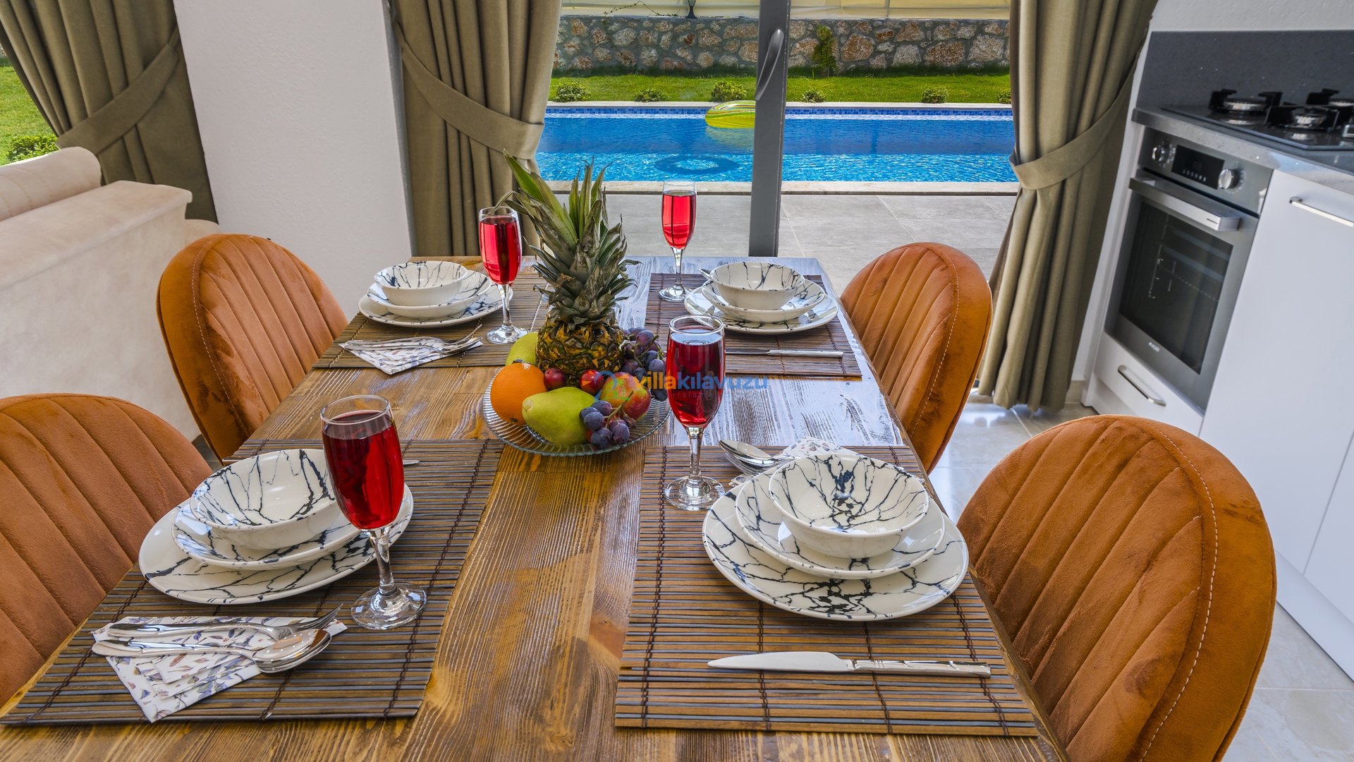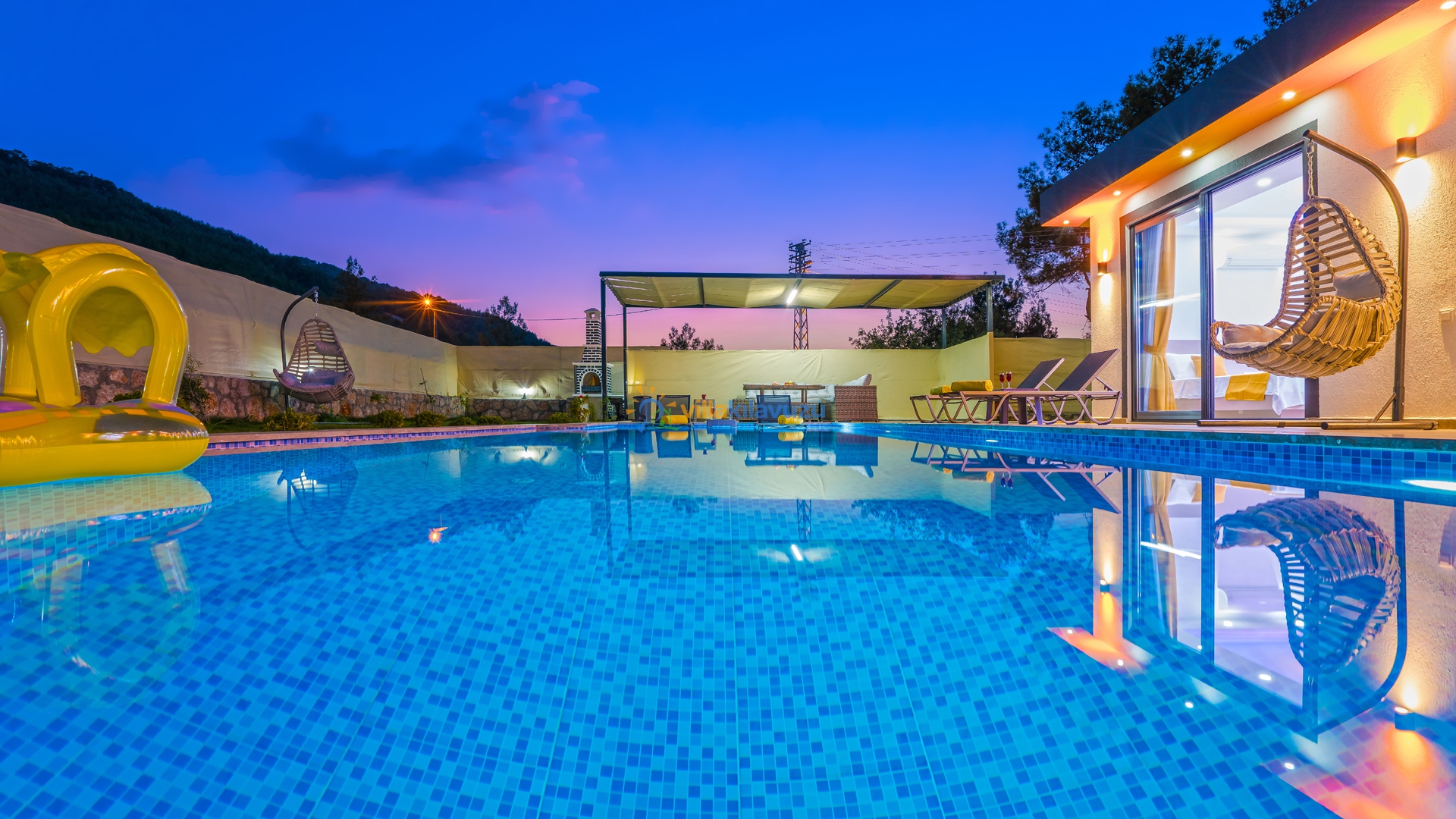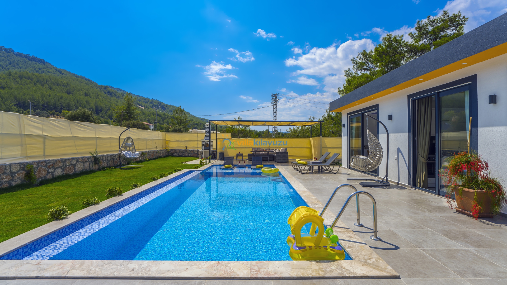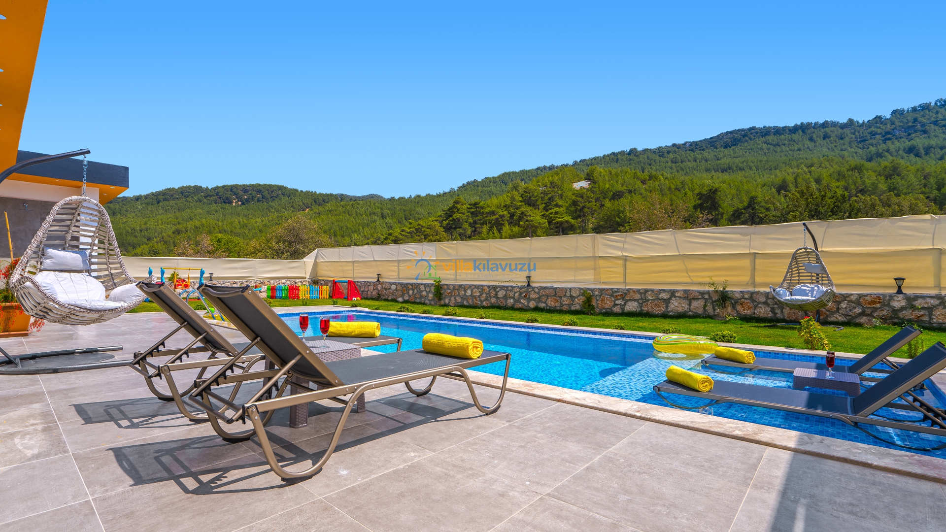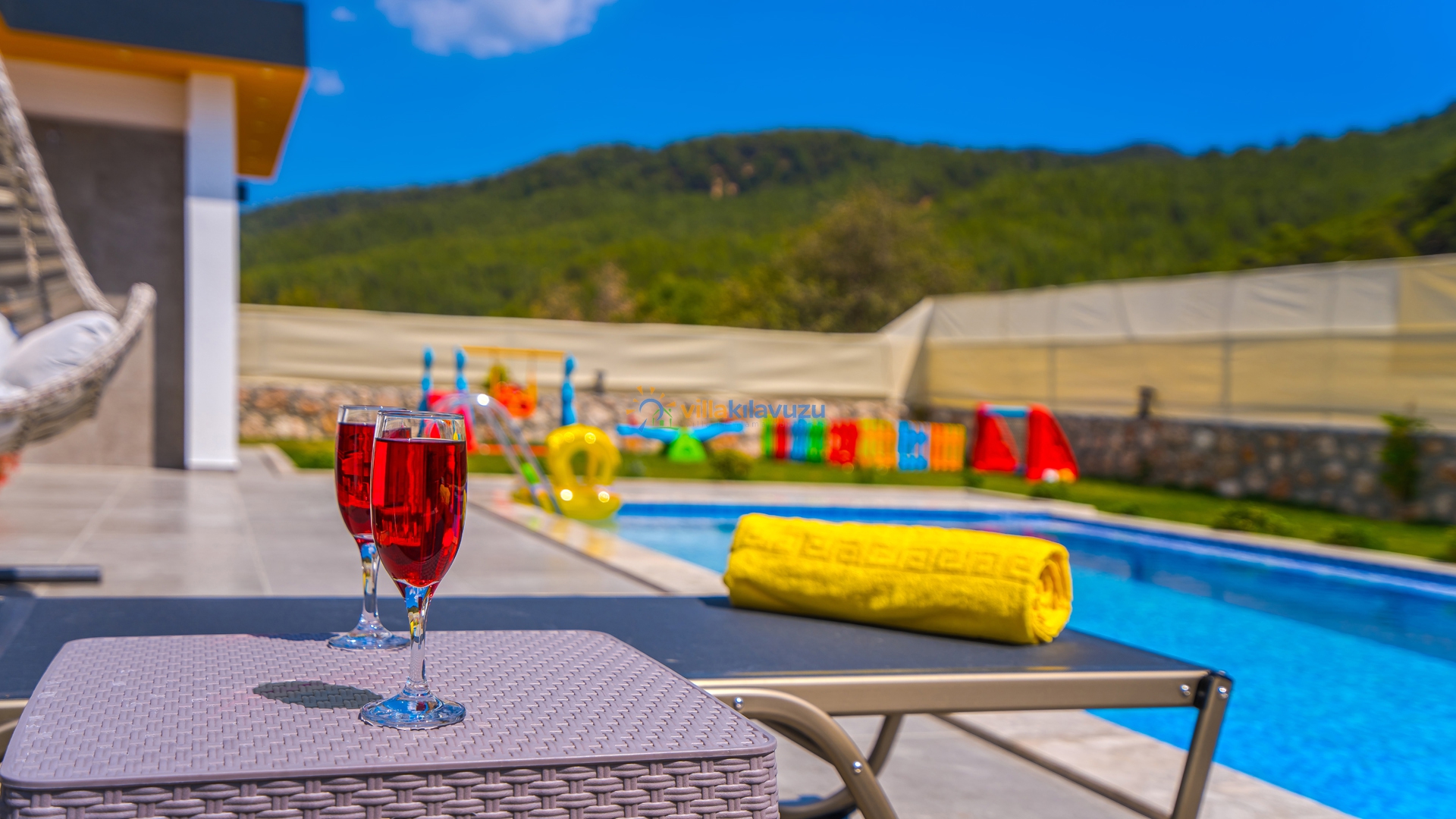-Villamızın havuz terası korunaklıdır.
