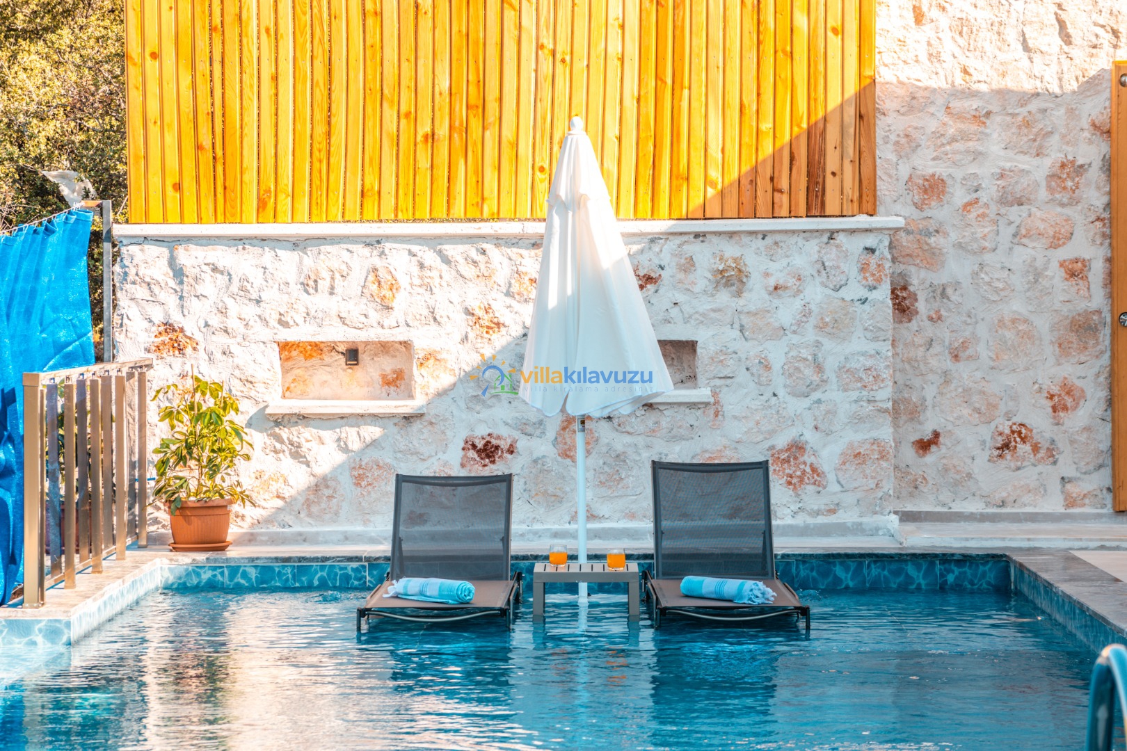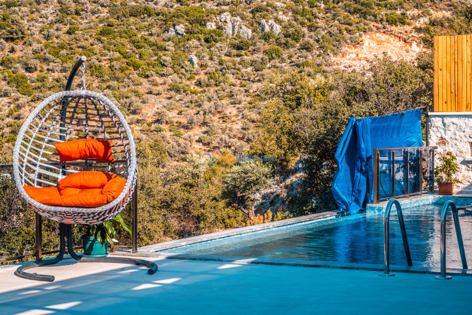 -Villamızın havuz terası korunaklıdır.