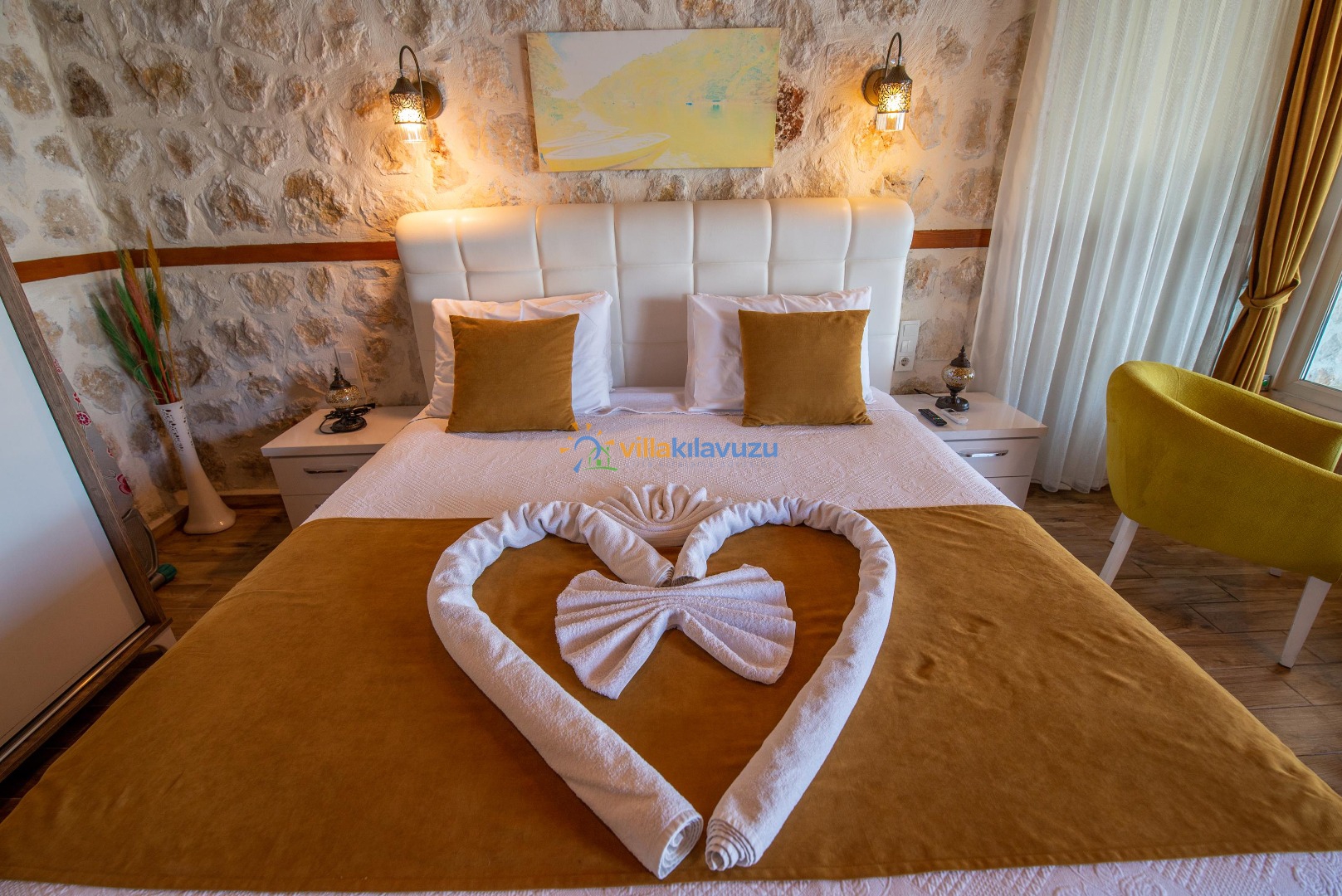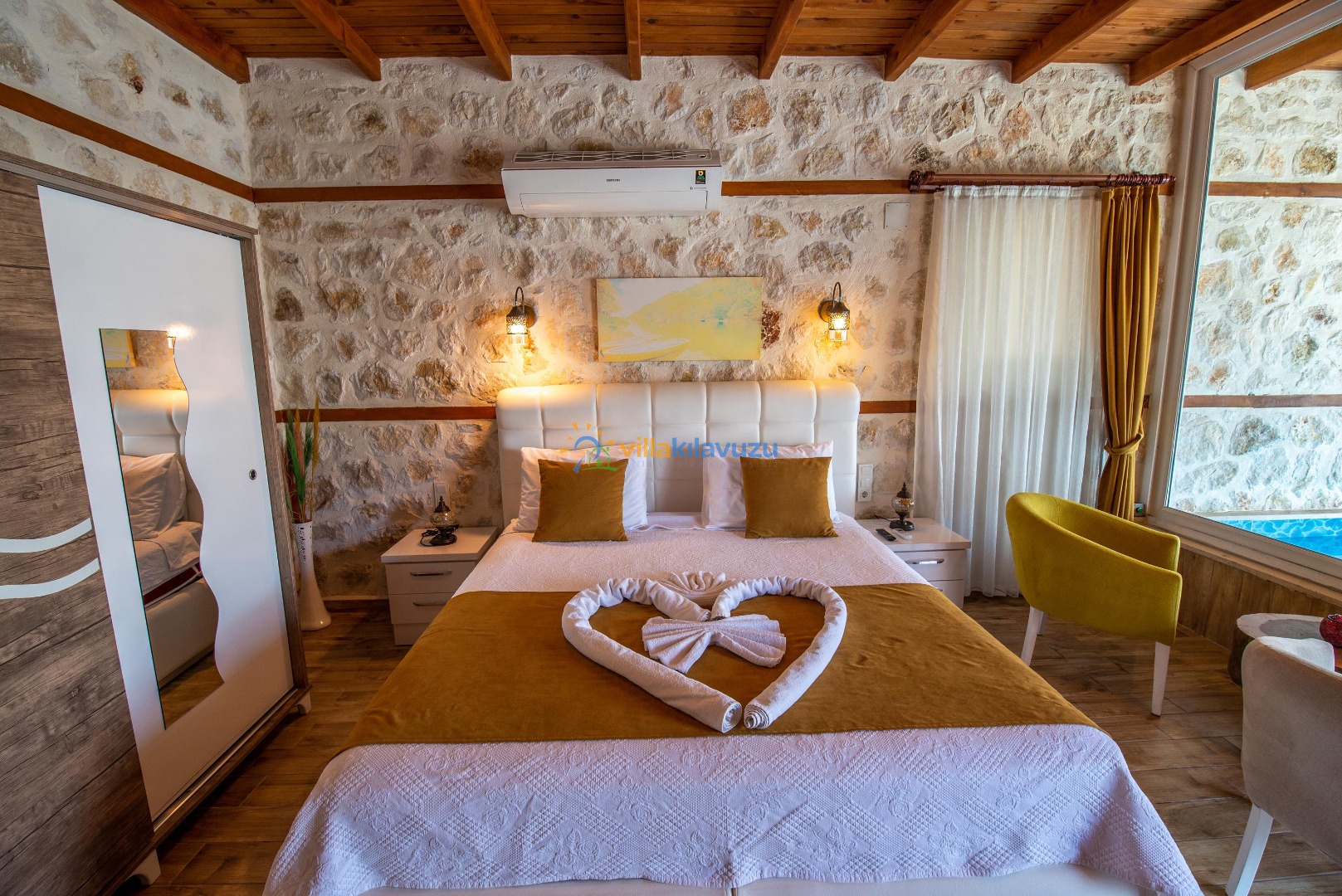 -Villamız 1 yatak odasına sahip olup 2 kişilik konaklama kapasitesine sahiptir.