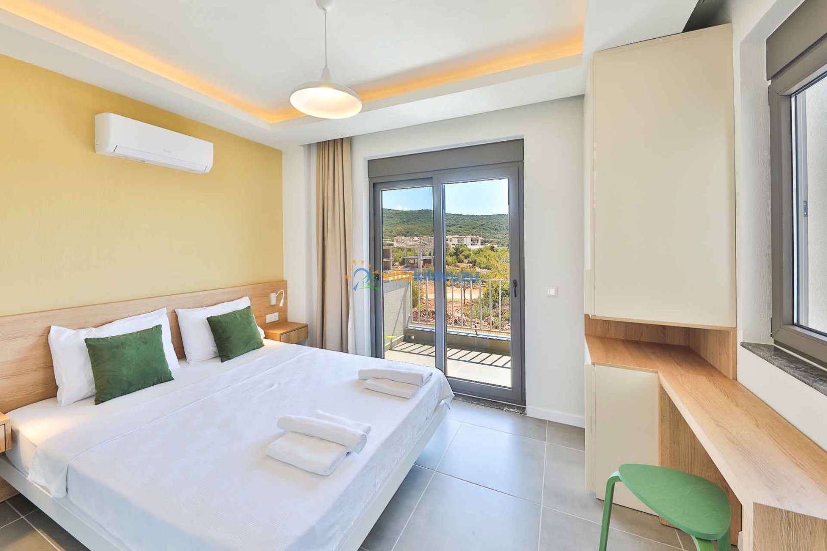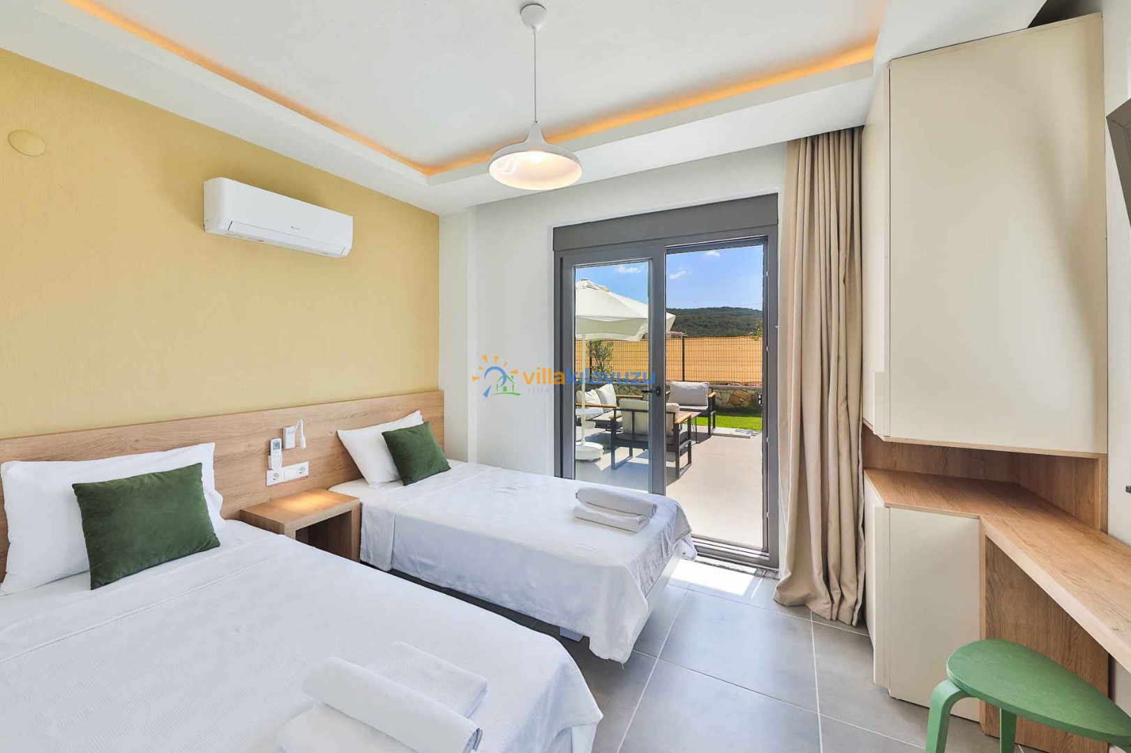 -Villamız 3 yatak odasına sahip olup 6 kişilik konaklama kapasitesine sahiptir.