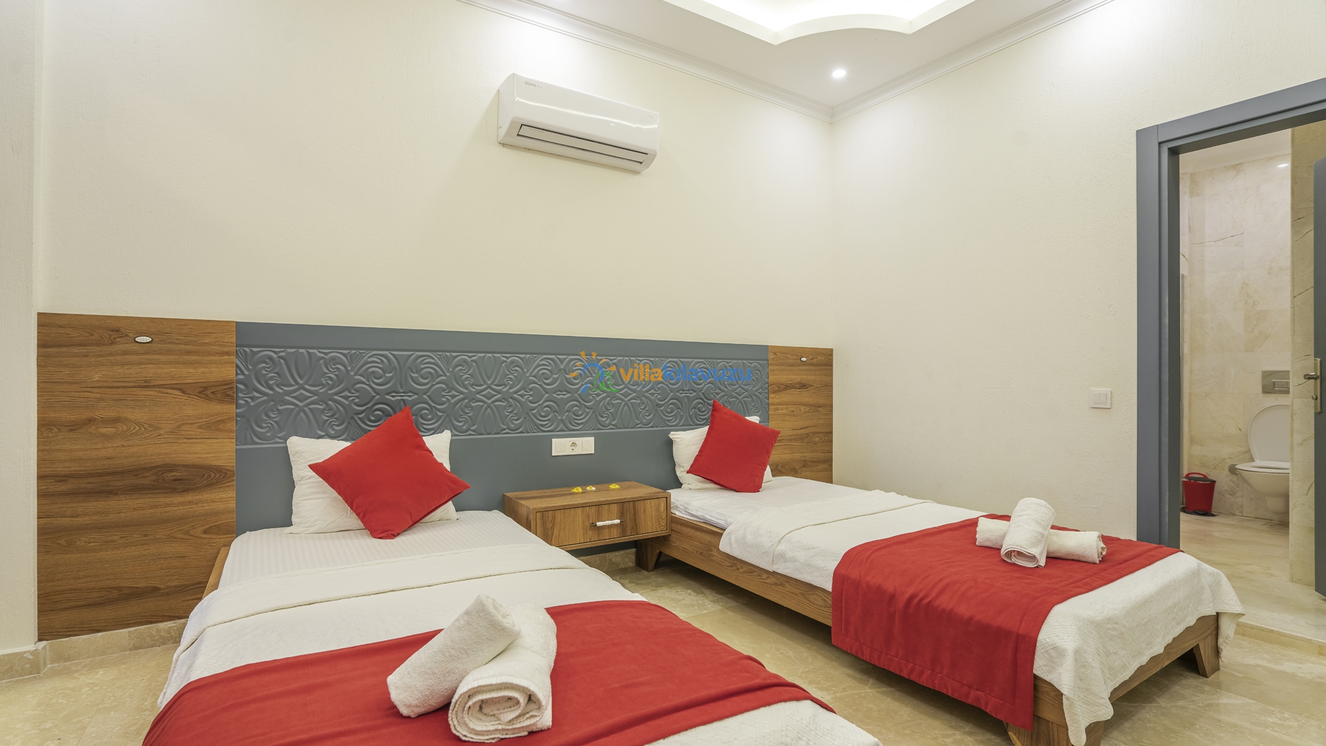 -Villamız 3 yatak odasına sahip olup 6 kişilik konaklama kapasitesine sahiptir.