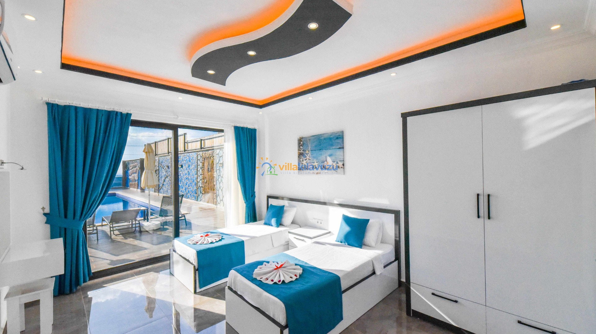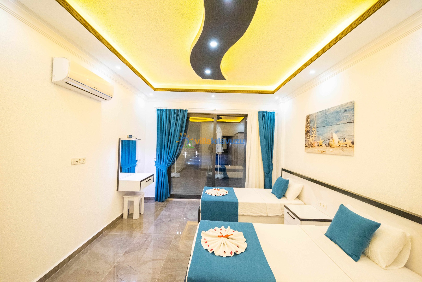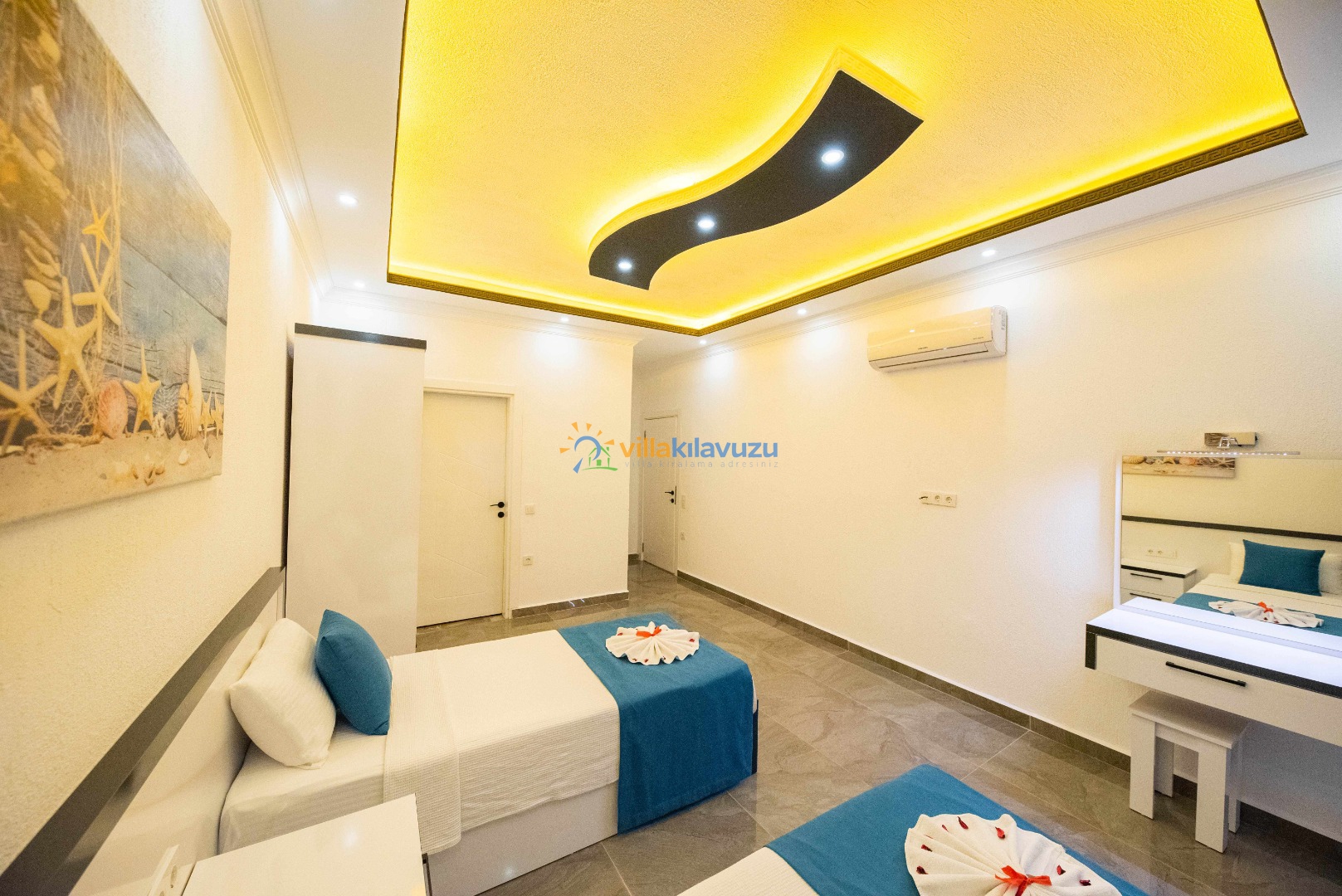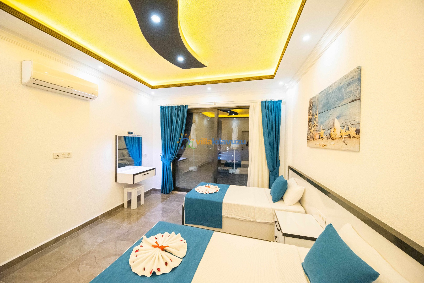 -Villamız 2 yatak odasına sahip olup 4 kişilik konaklama kapasitesine sahiptir.