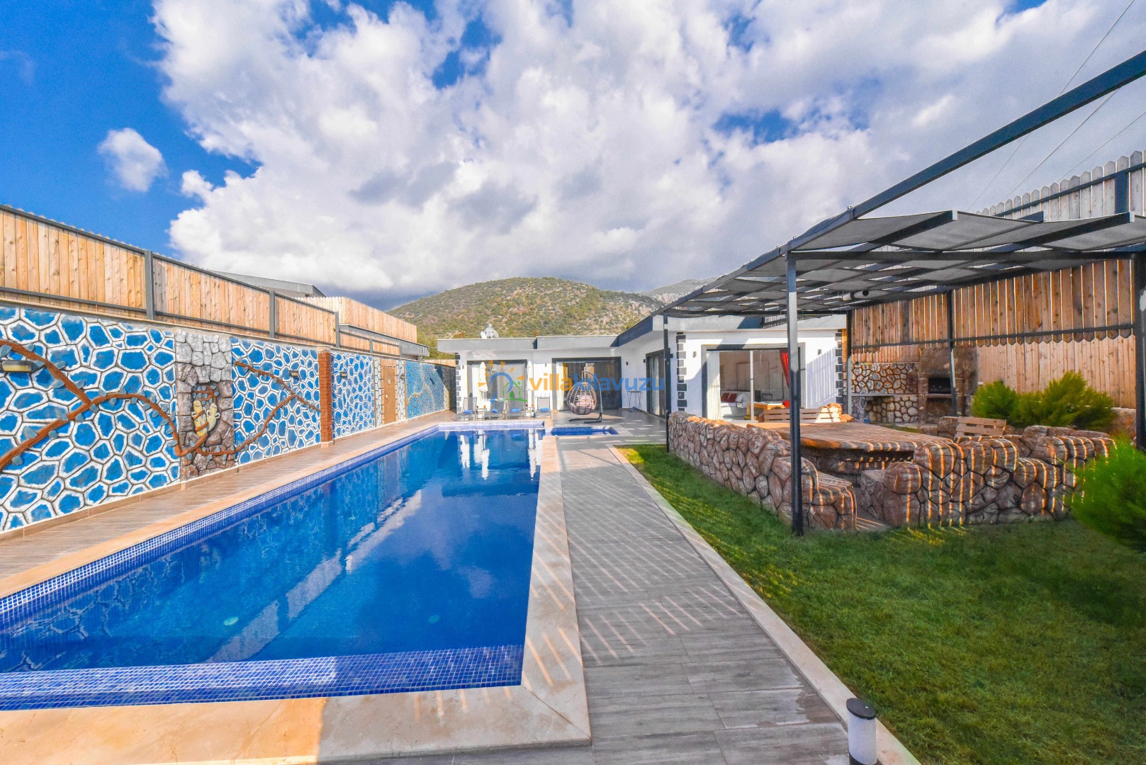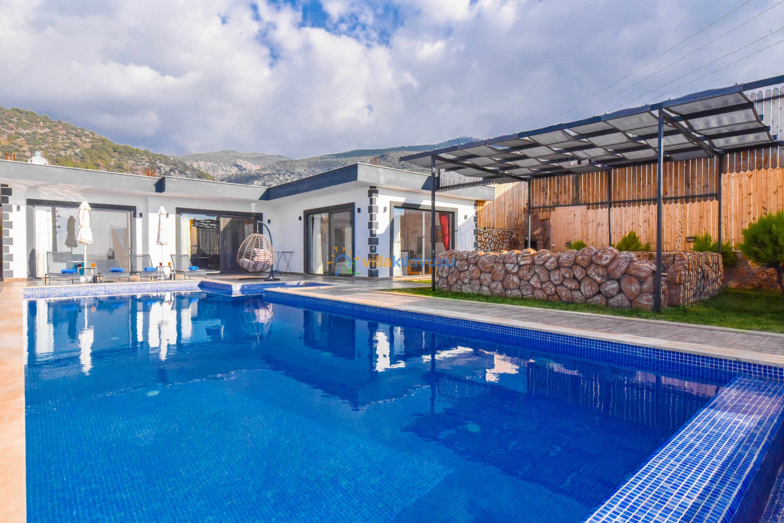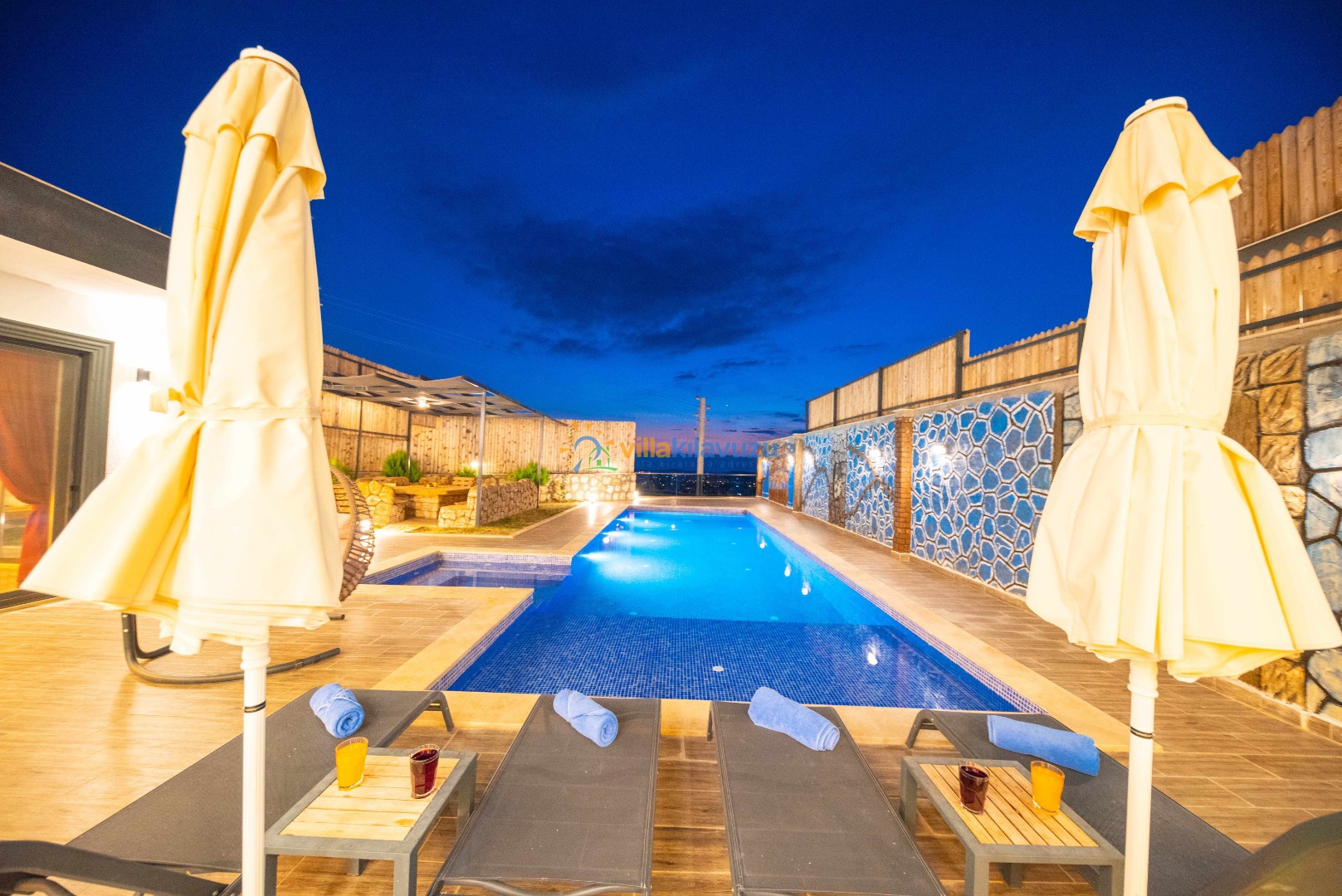 -Villamızın havuz terası korunaklıdır.