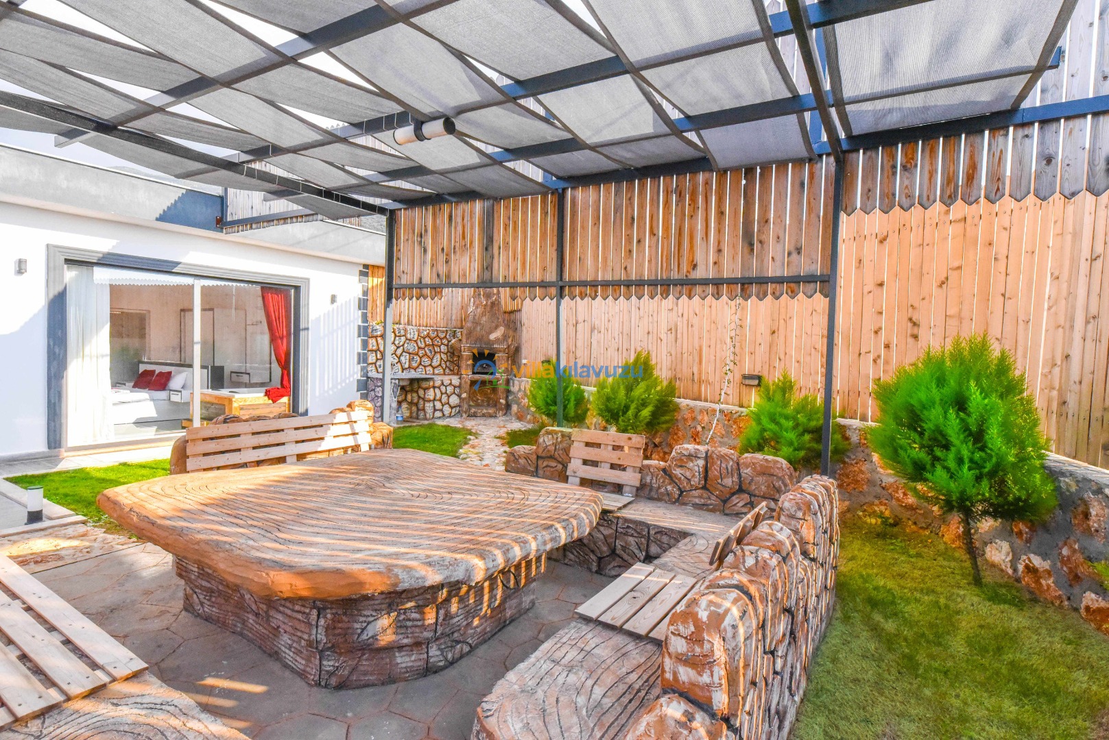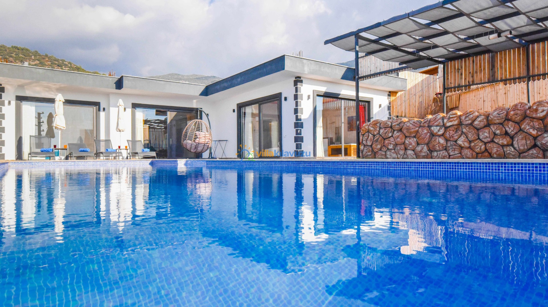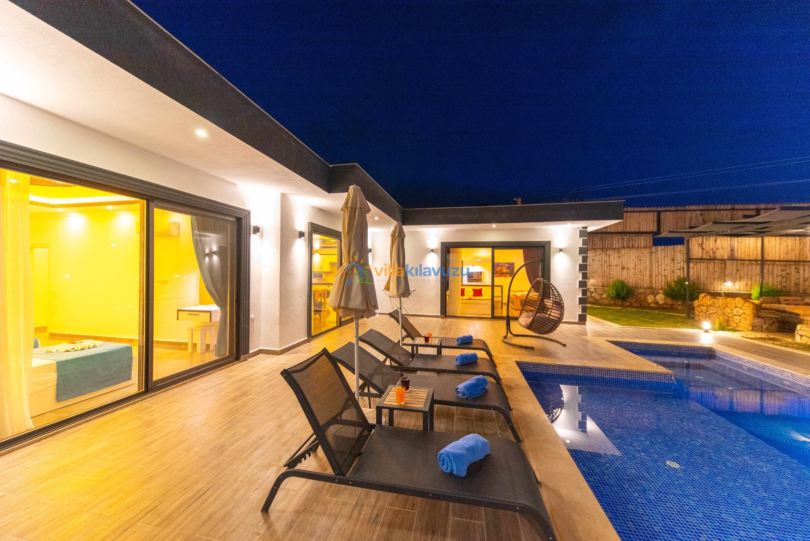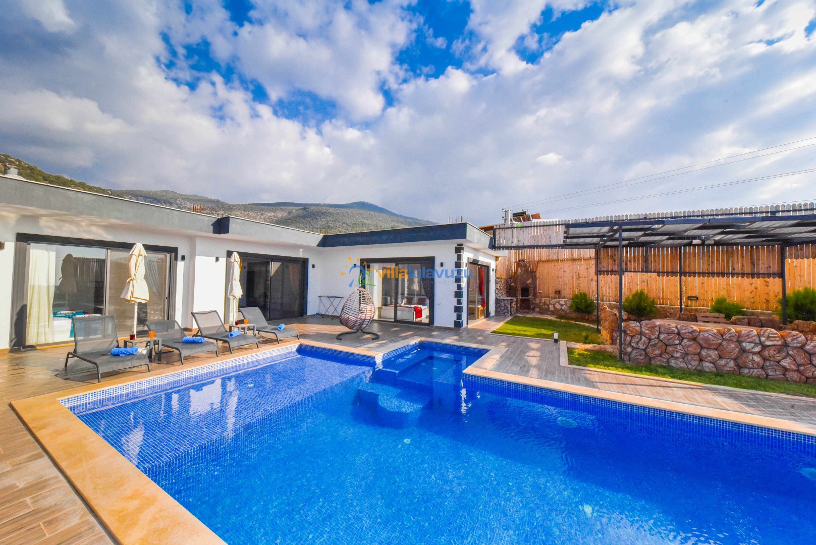 -Villamızın havuz terası korunaklıdır.