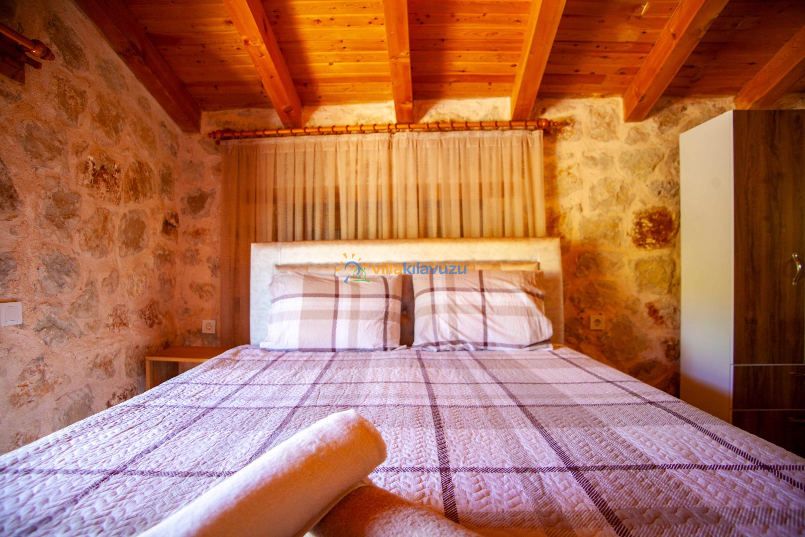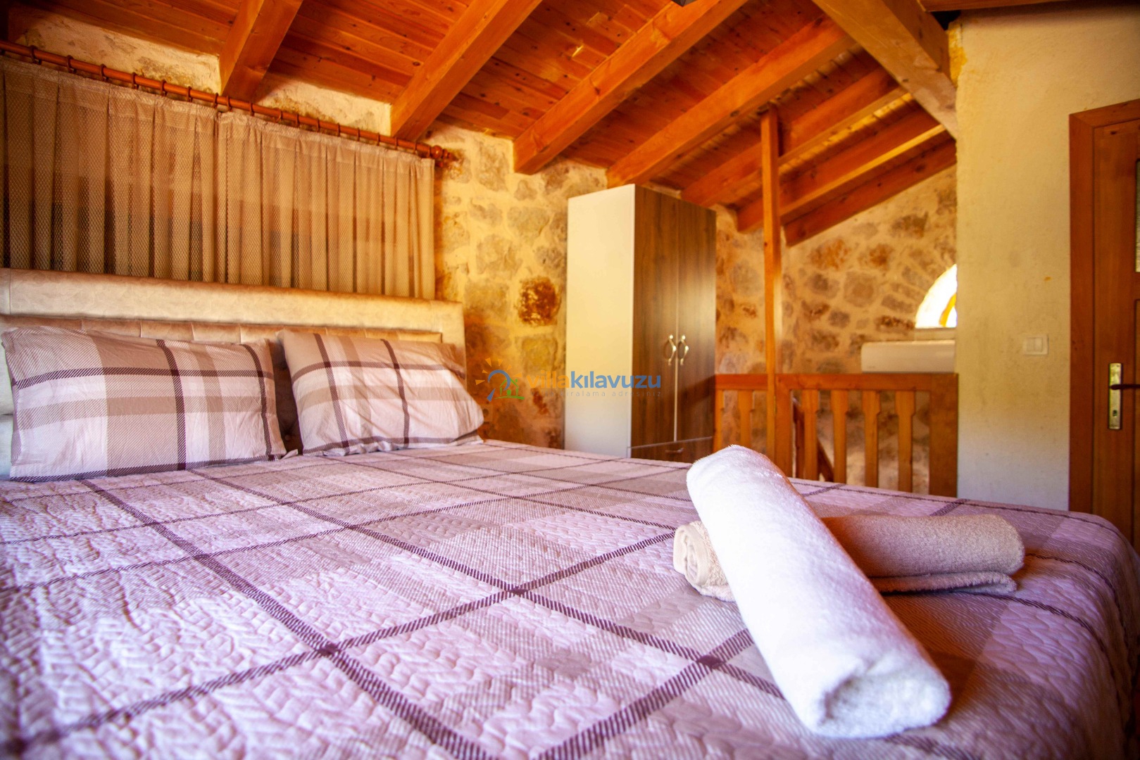 -Villamız 1 yatak odasına sahip olup 2 kişilik konaklama kapasitesine sahiptir.