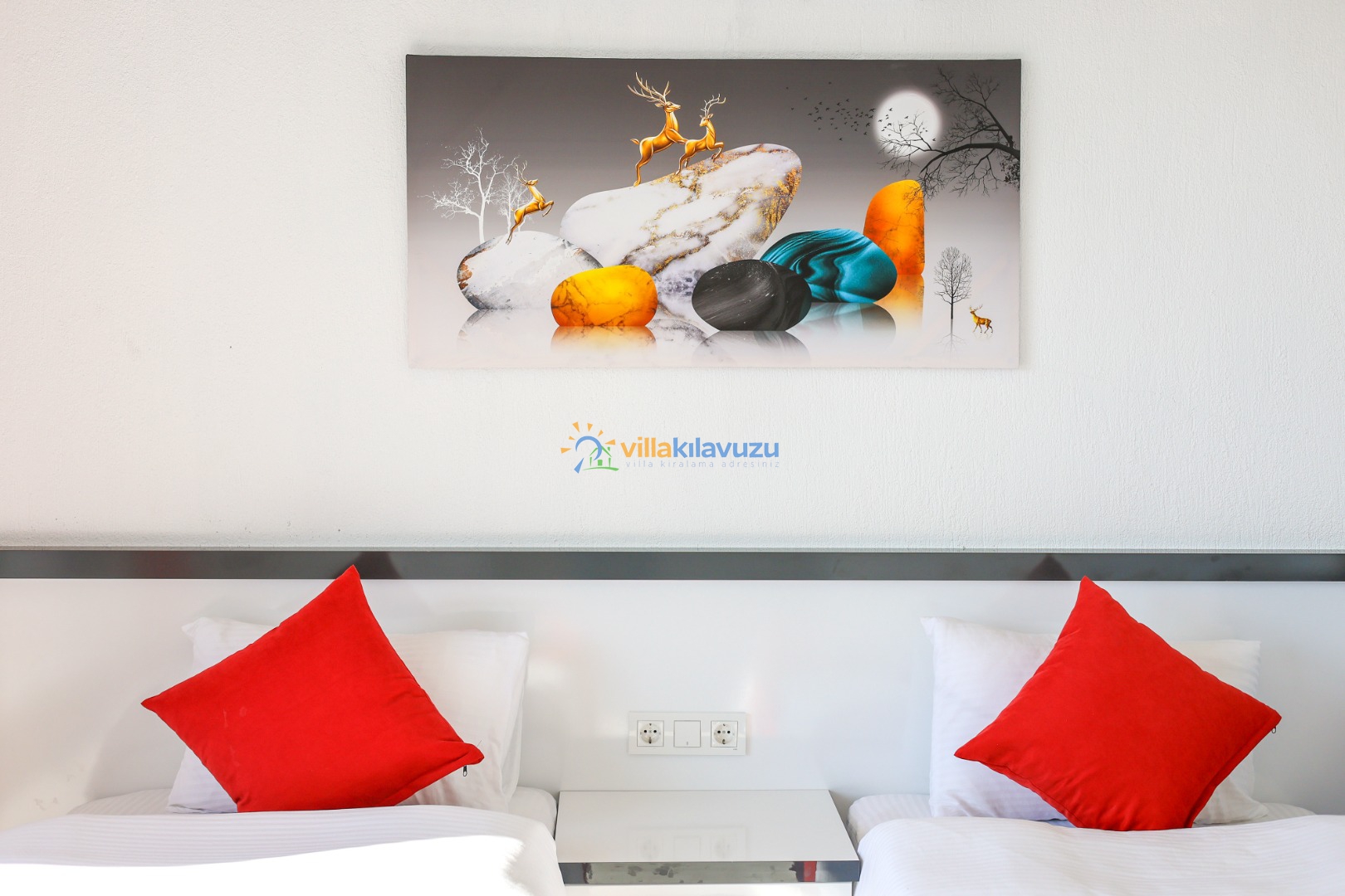 -Villamız 2 yatak odasına sahip olup 4 kişilik konaklama kapasitesine sahiptir.