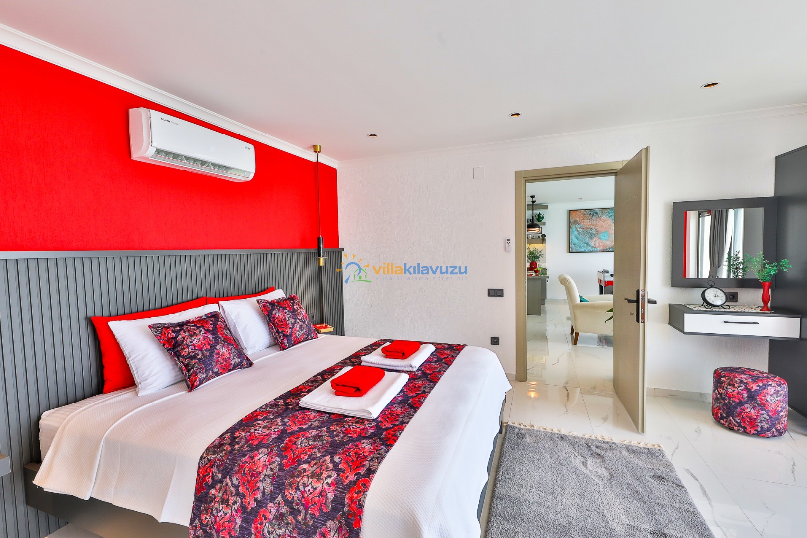 -Villamız 1 yatak odasına sahip olup 2 kişilik konaklama kapasitesine sahiptir.