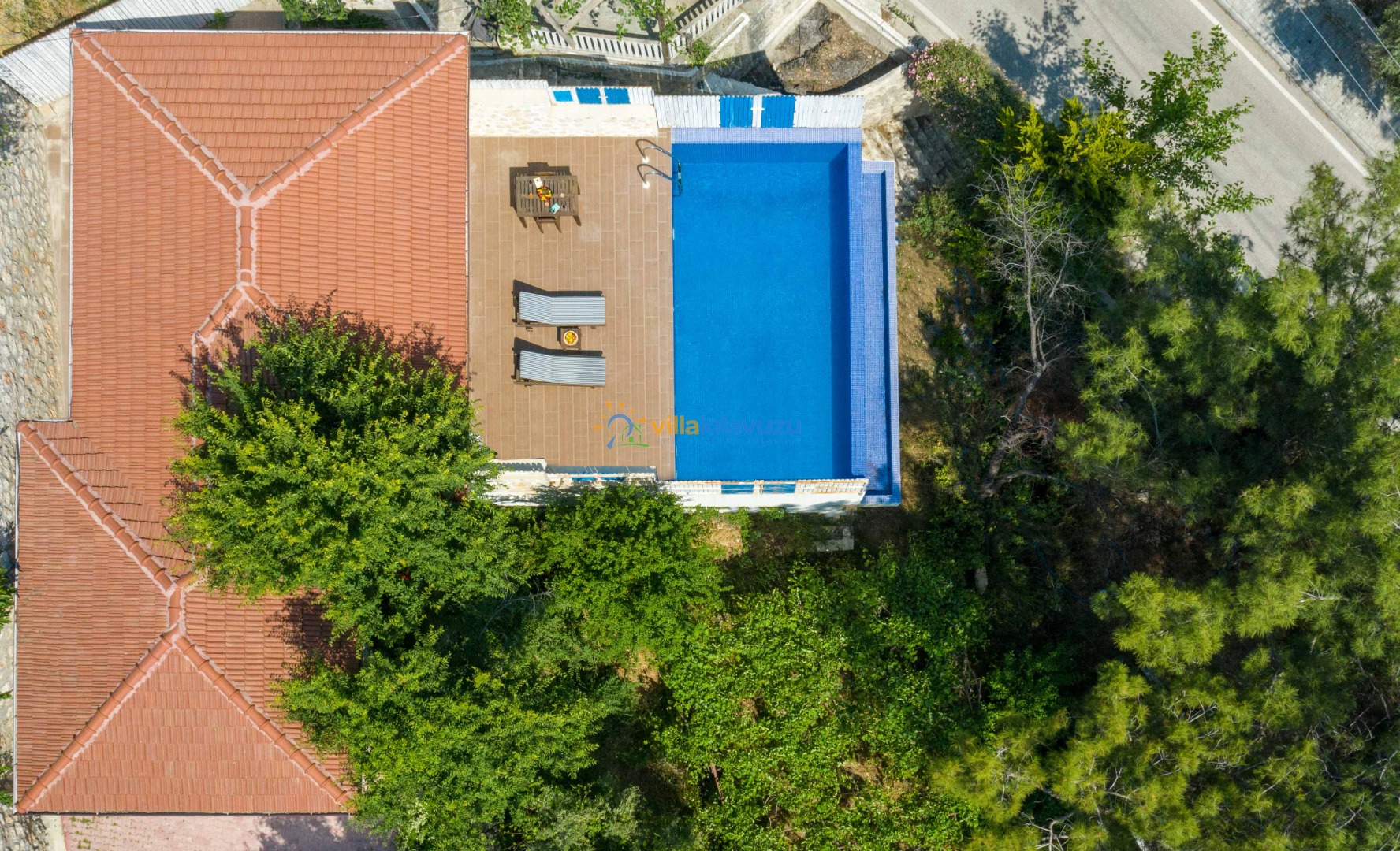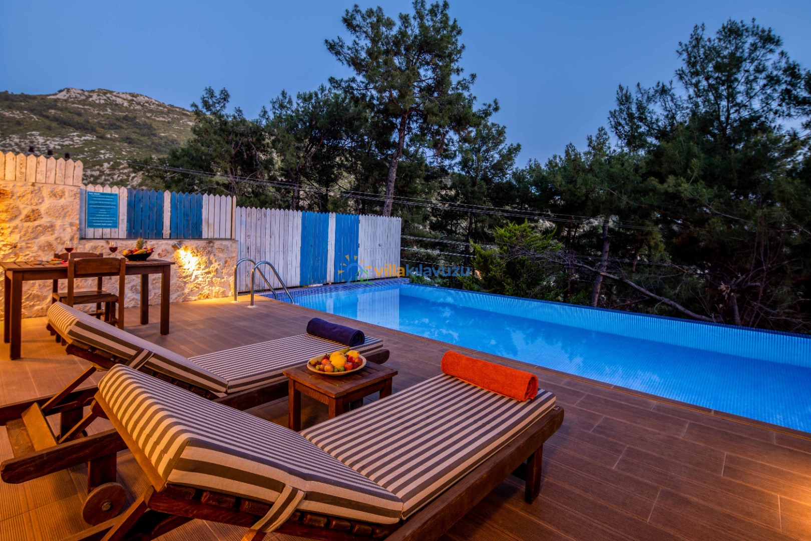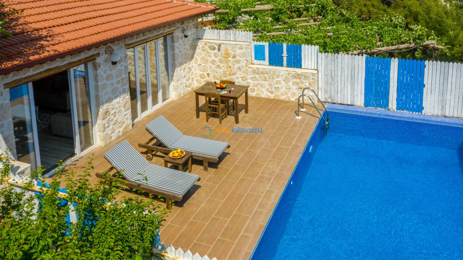 -Villamızın havuz terası korunaklıdır.
