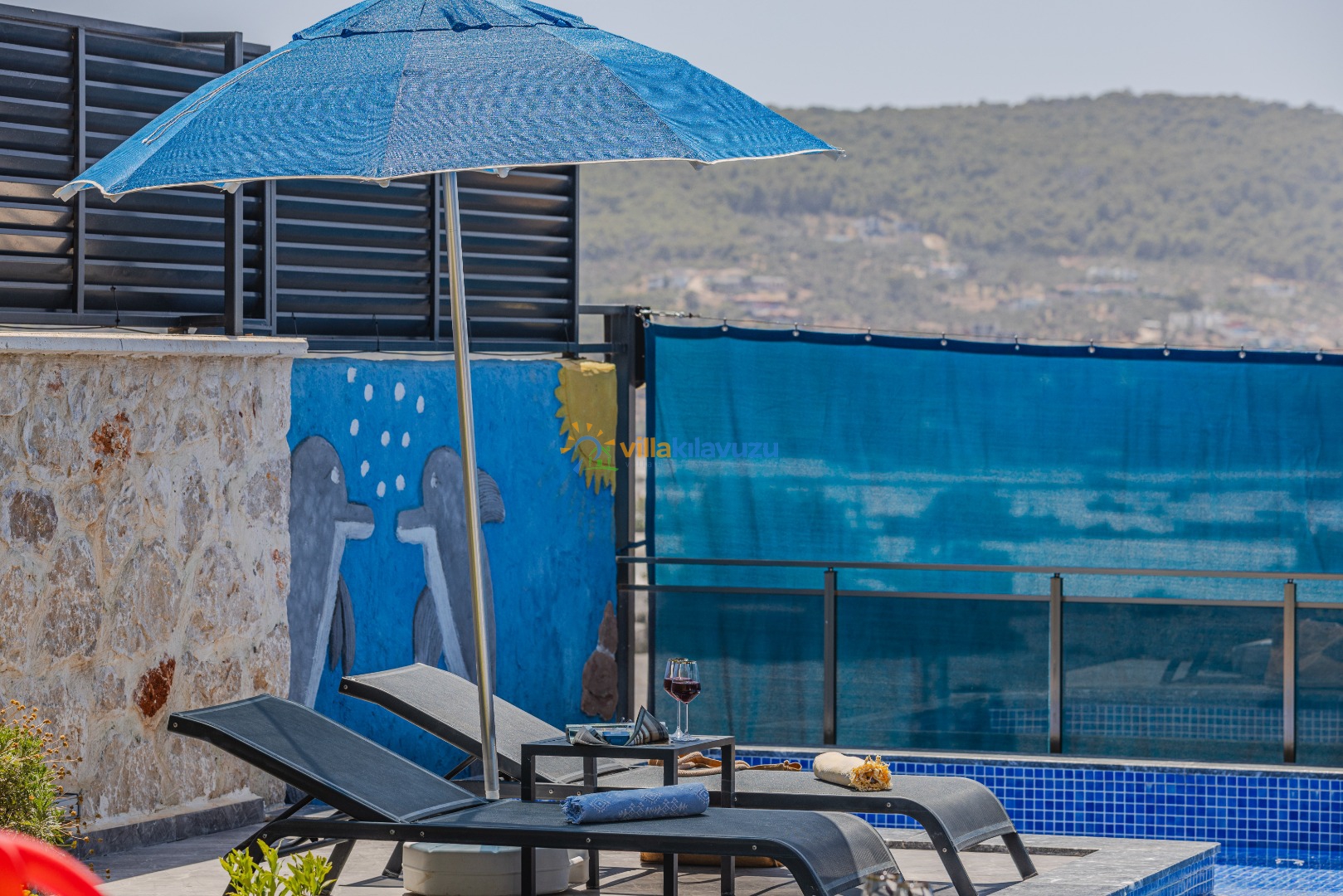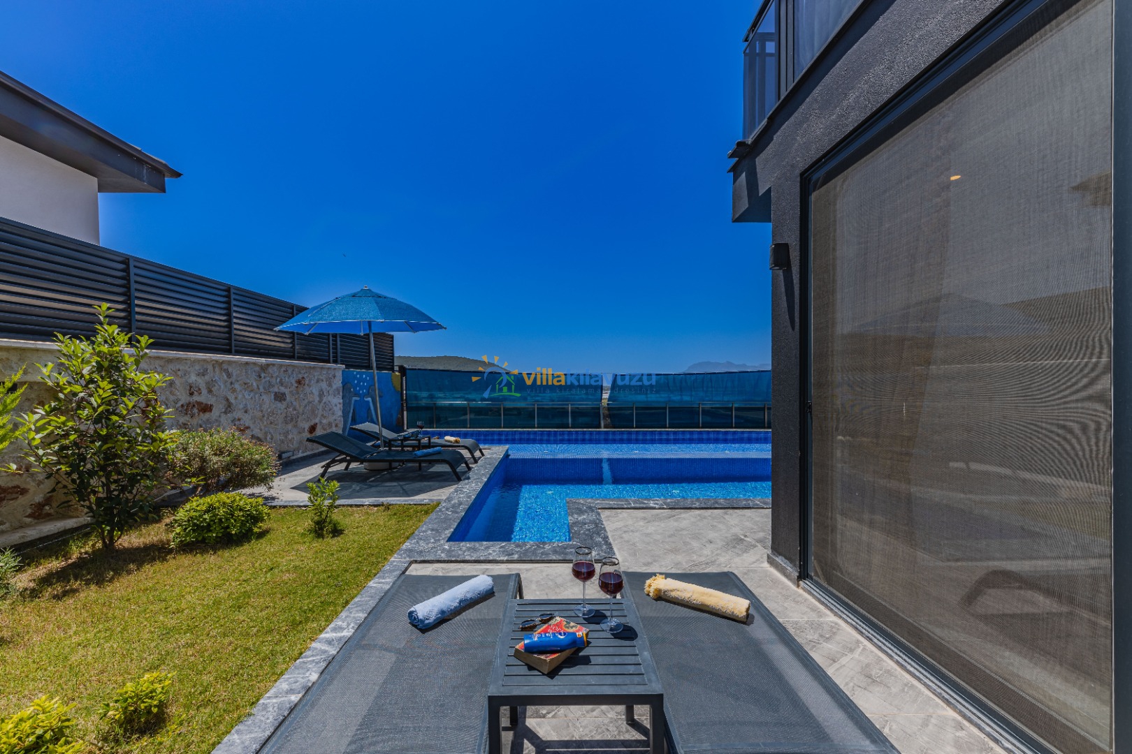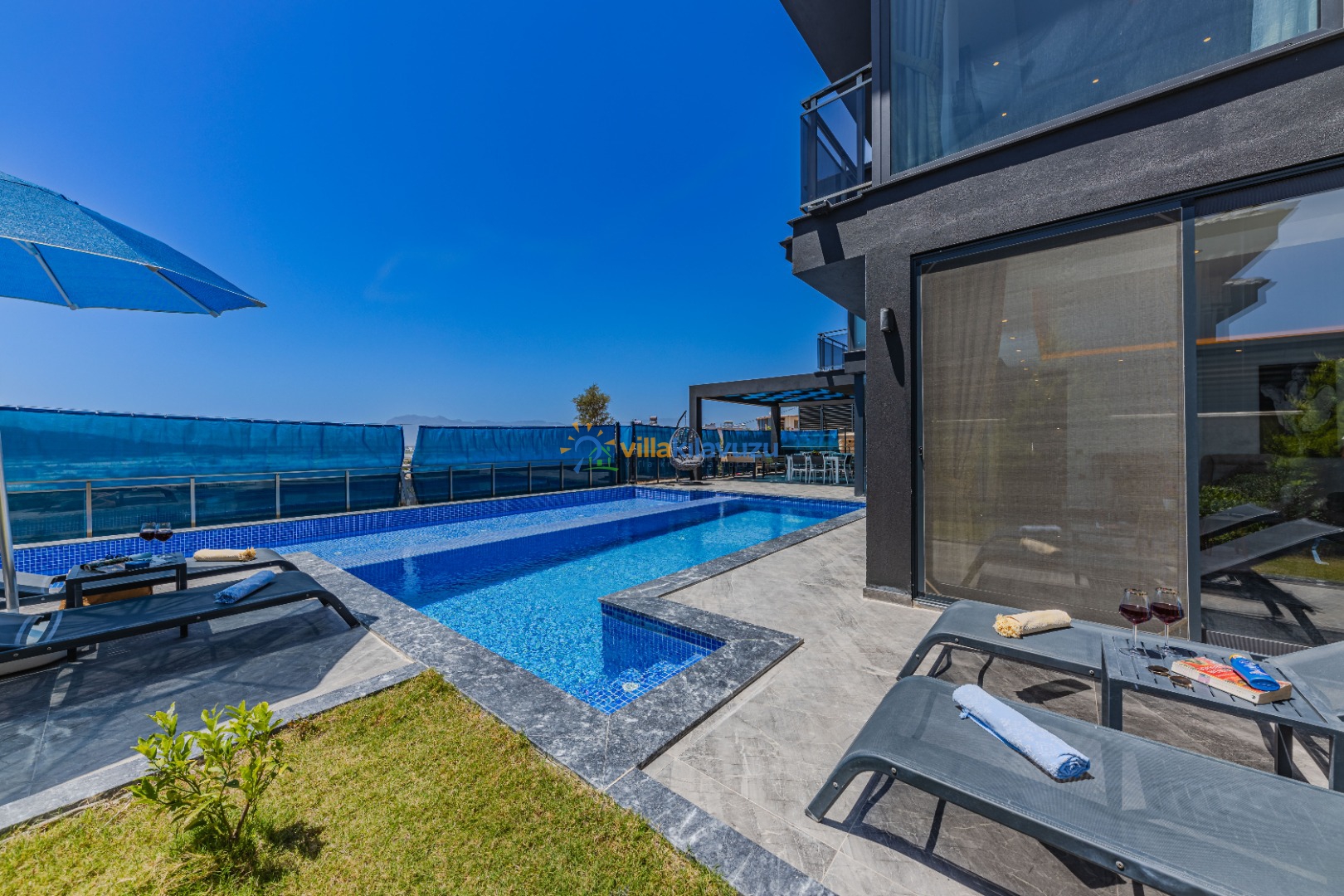 -Villamızın havuz terası korunaklıdır.