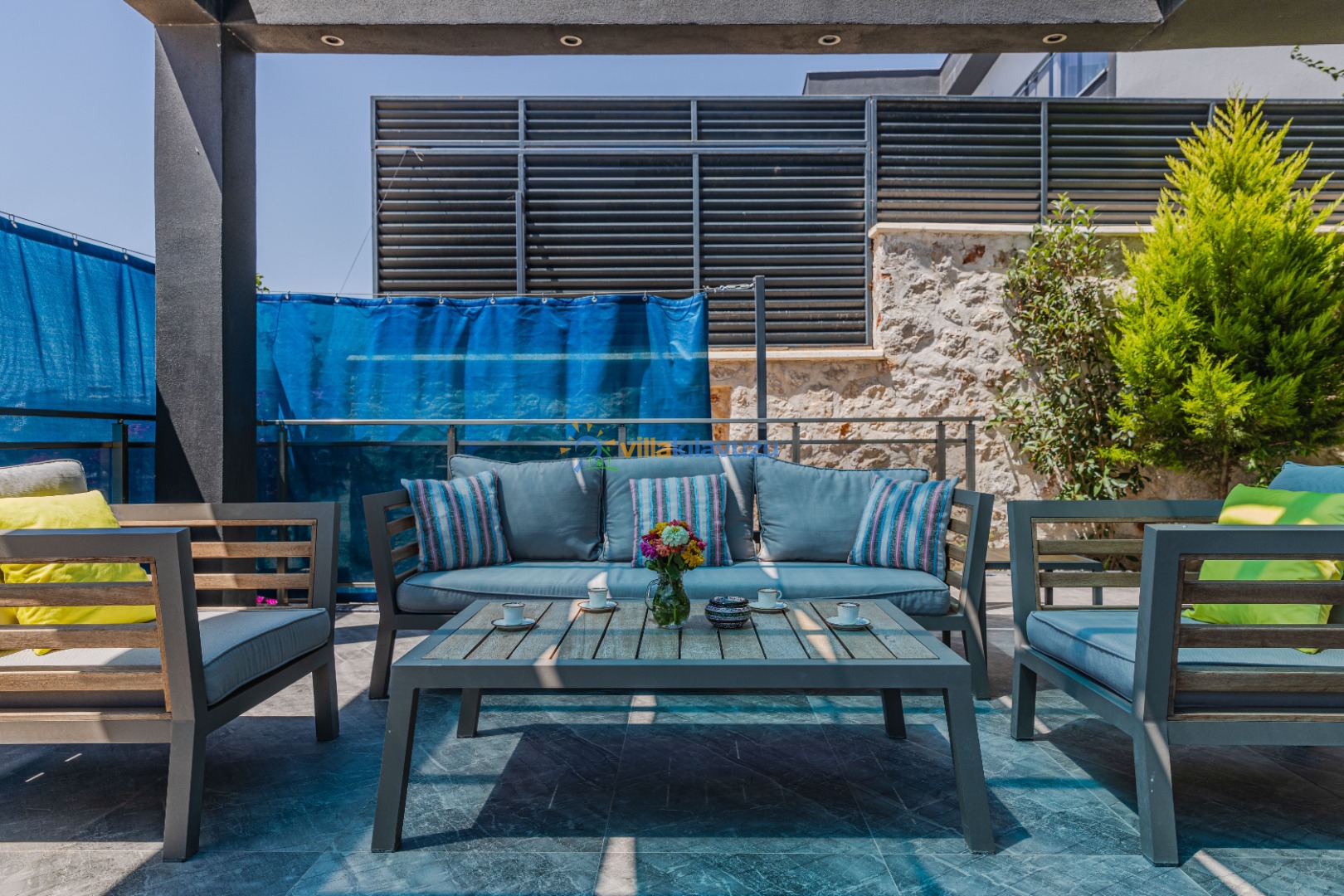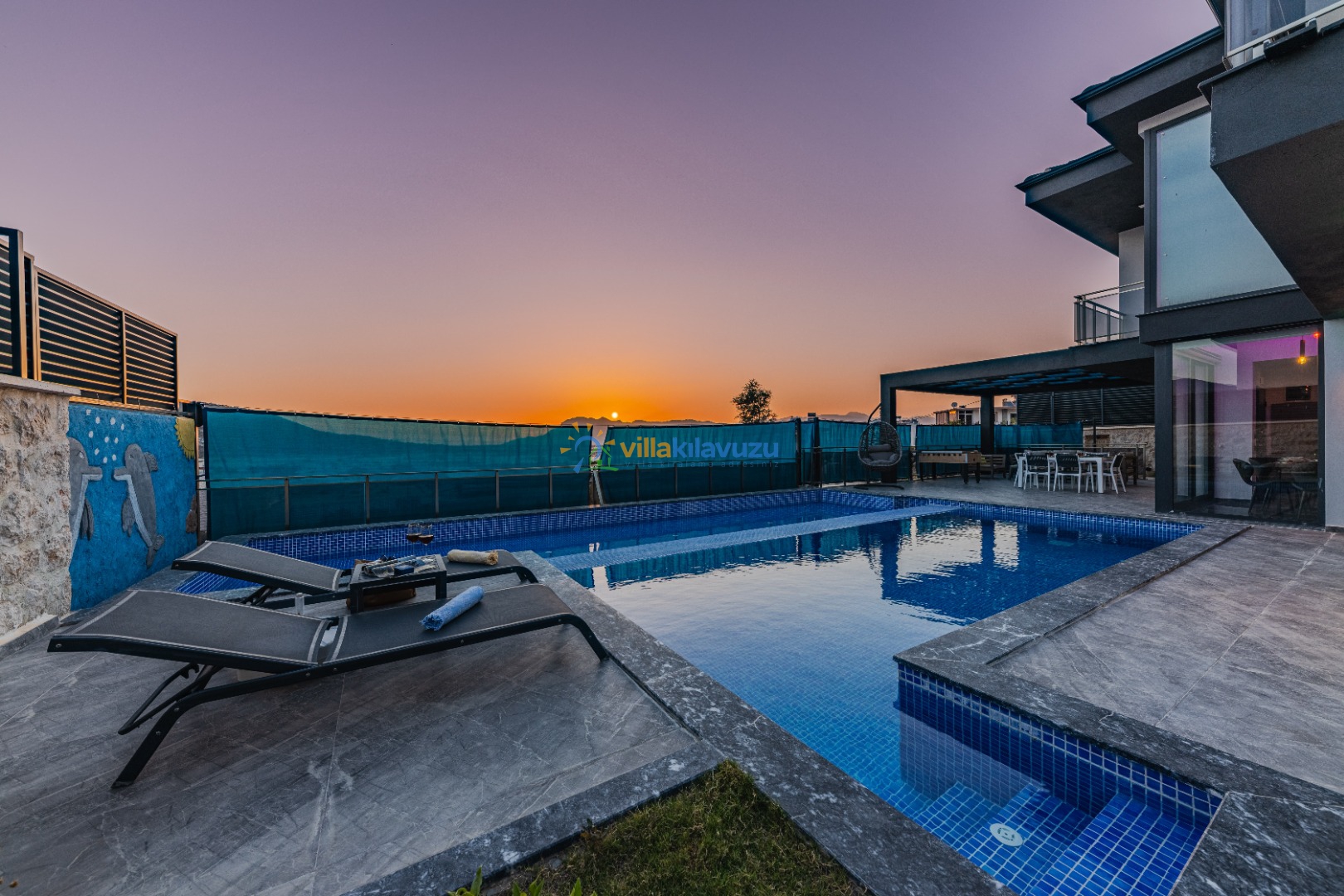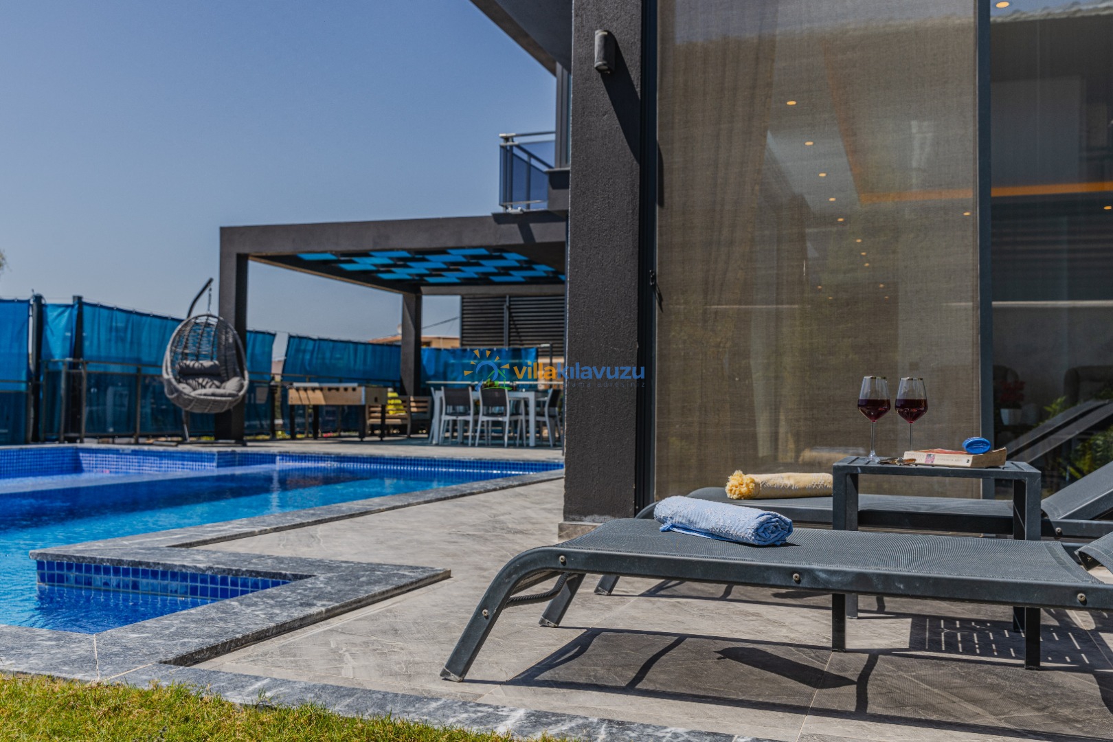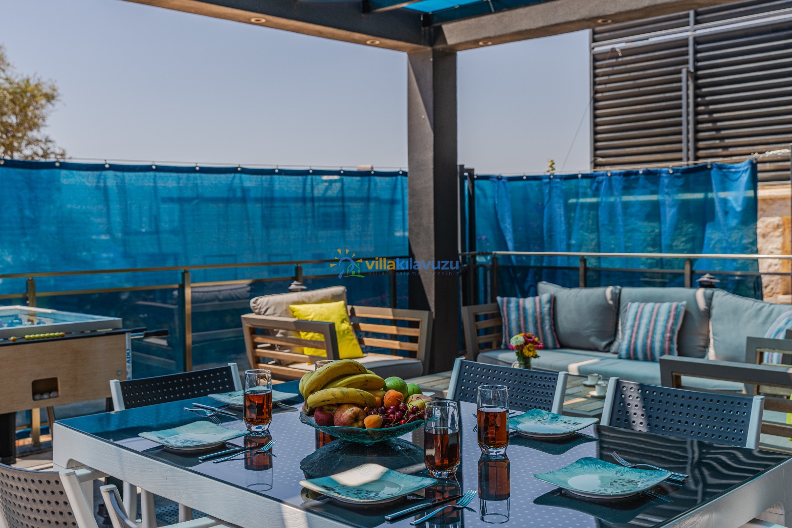 -Villamızın havuz terası korunaklıdır.