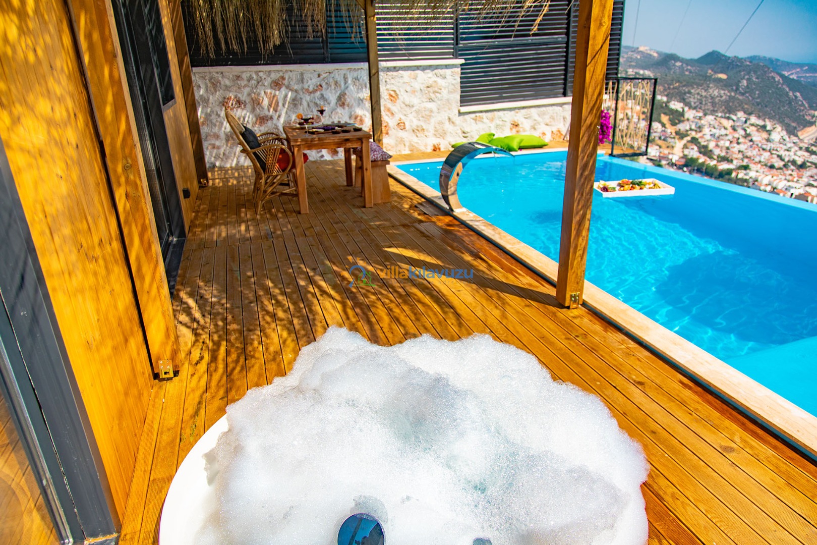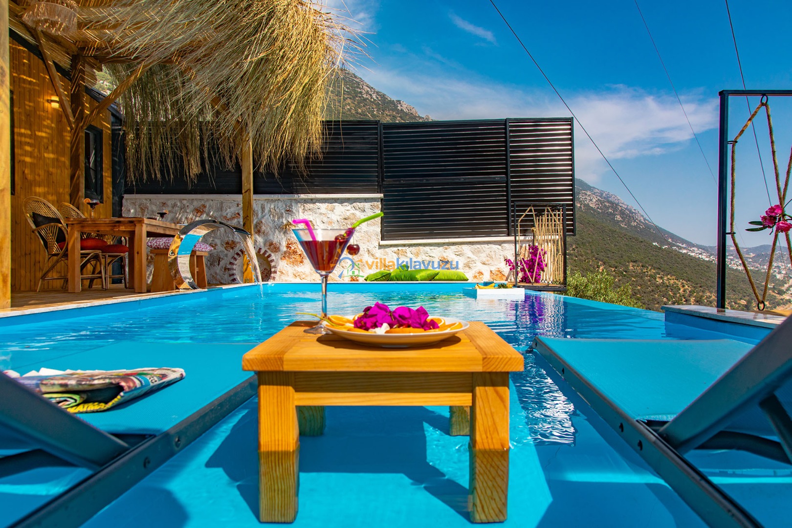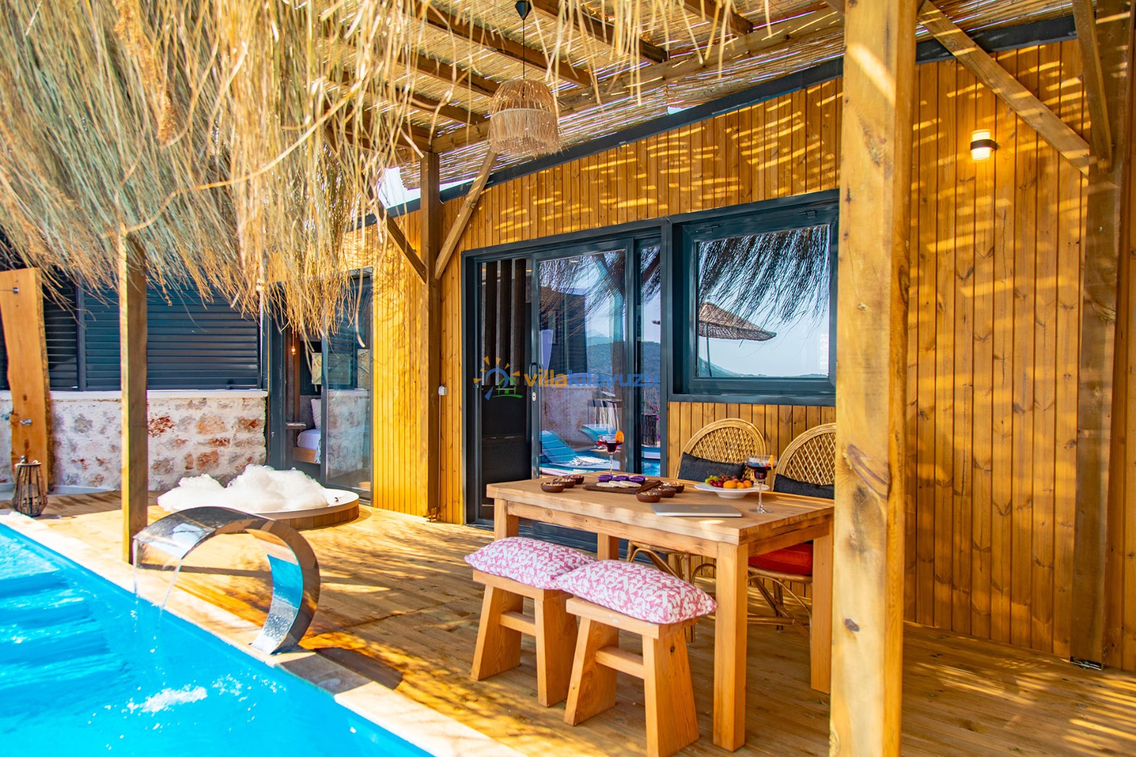 -Villamızın havuz terası korunaklıdır.