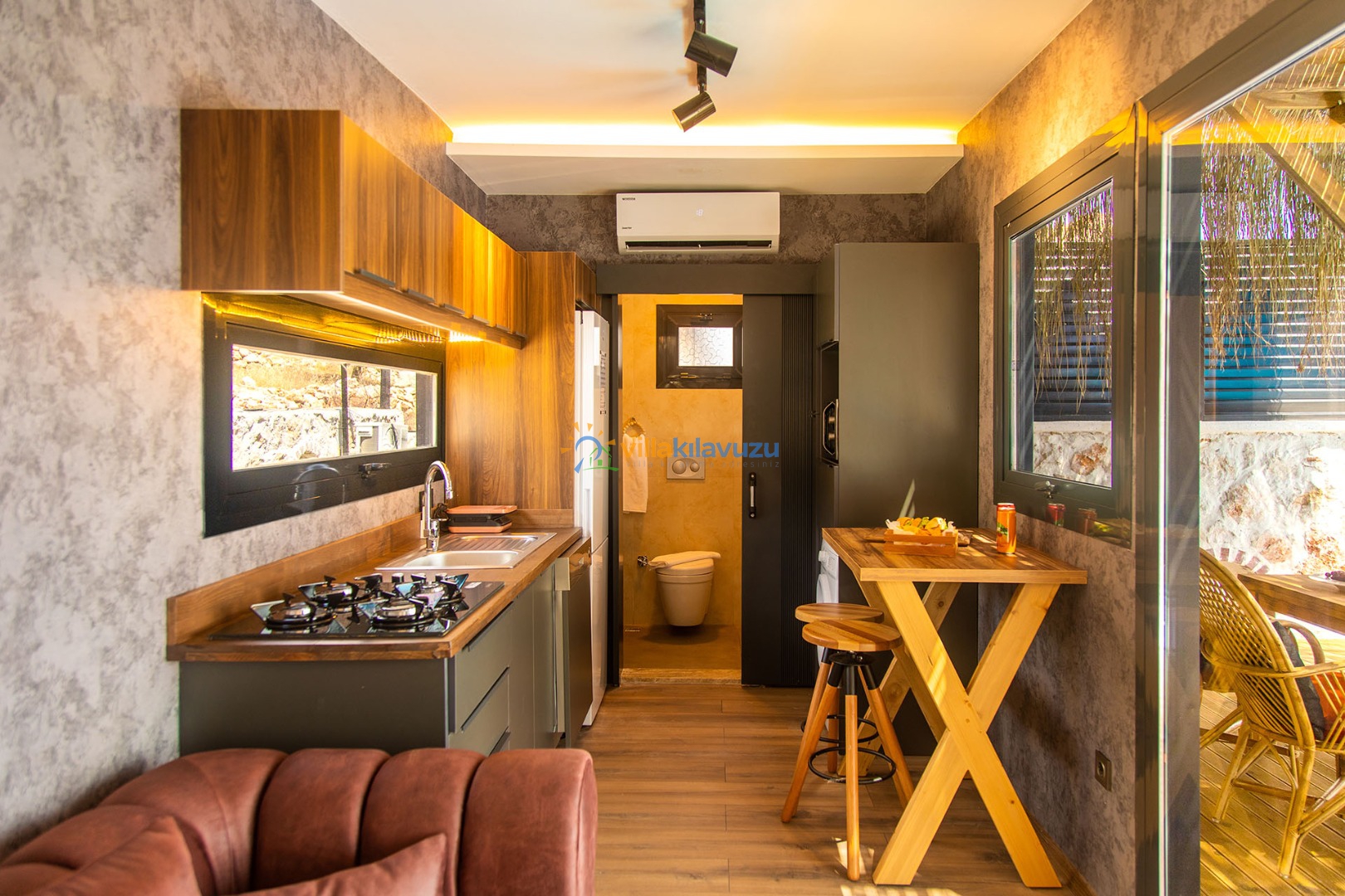 -Villamız 1 yatak odasına sahip olup 2 kişilik konaklama kapasitesine sahiptir.