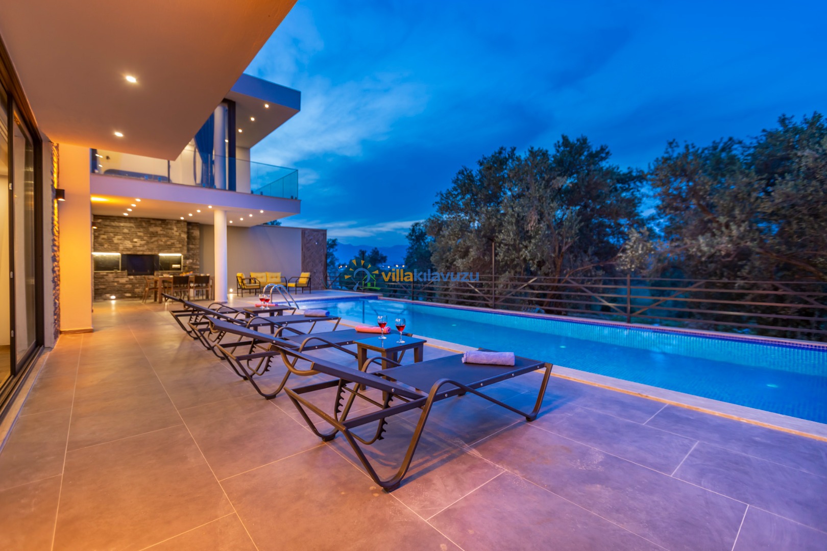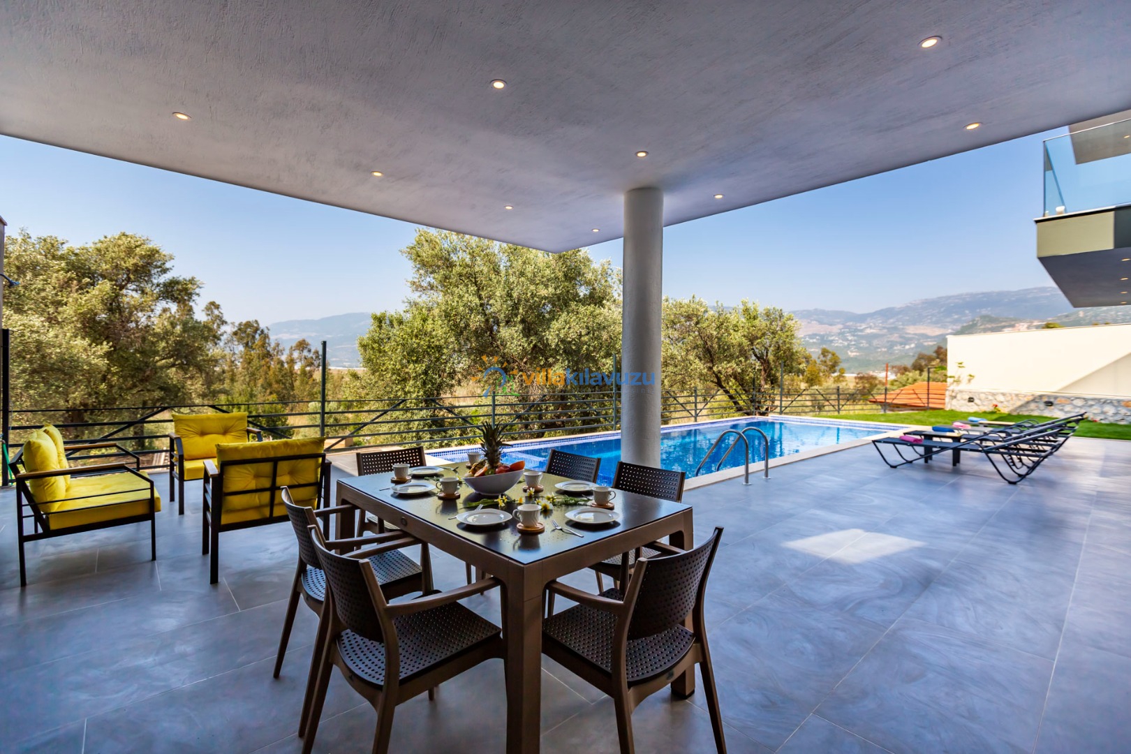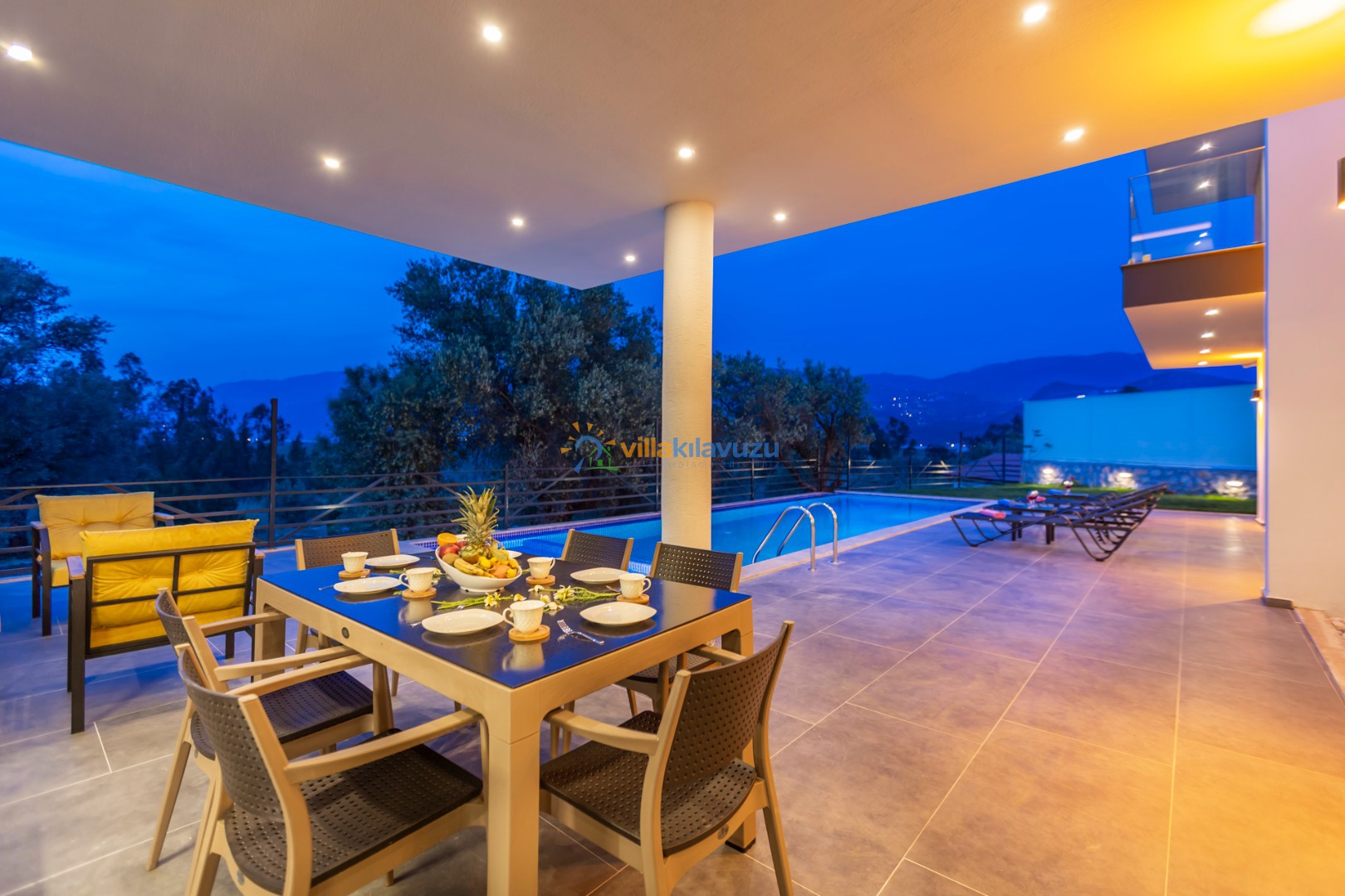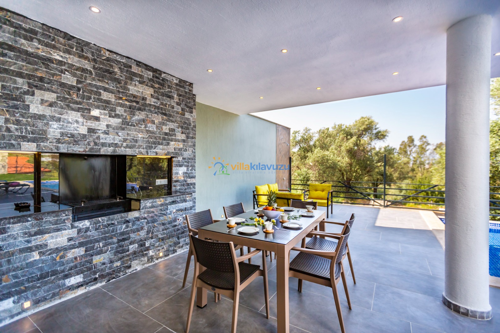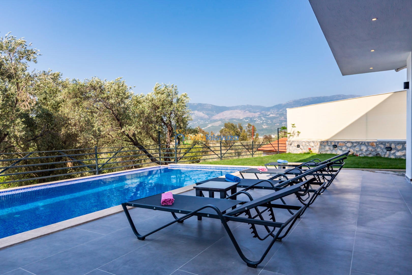 -Villamızın havuz terası korunaklıdır.