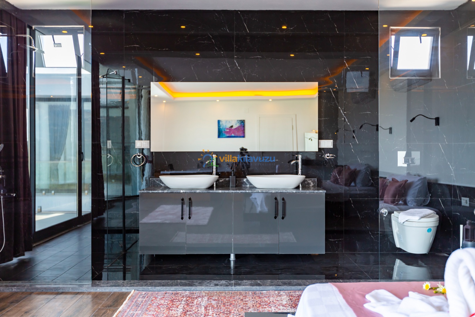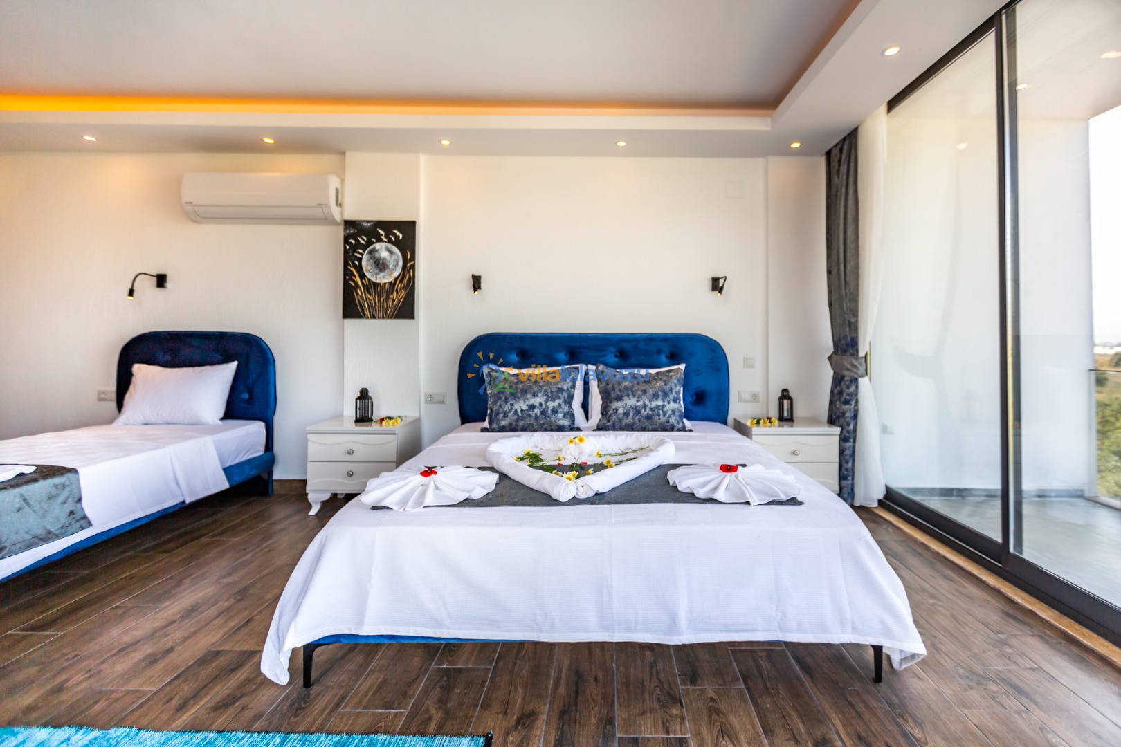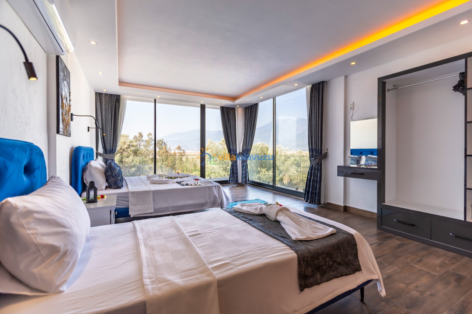 -Villamız 2 yatak odasına sahip olup 5 kişilik konaklama kapasitesine sahiptir.