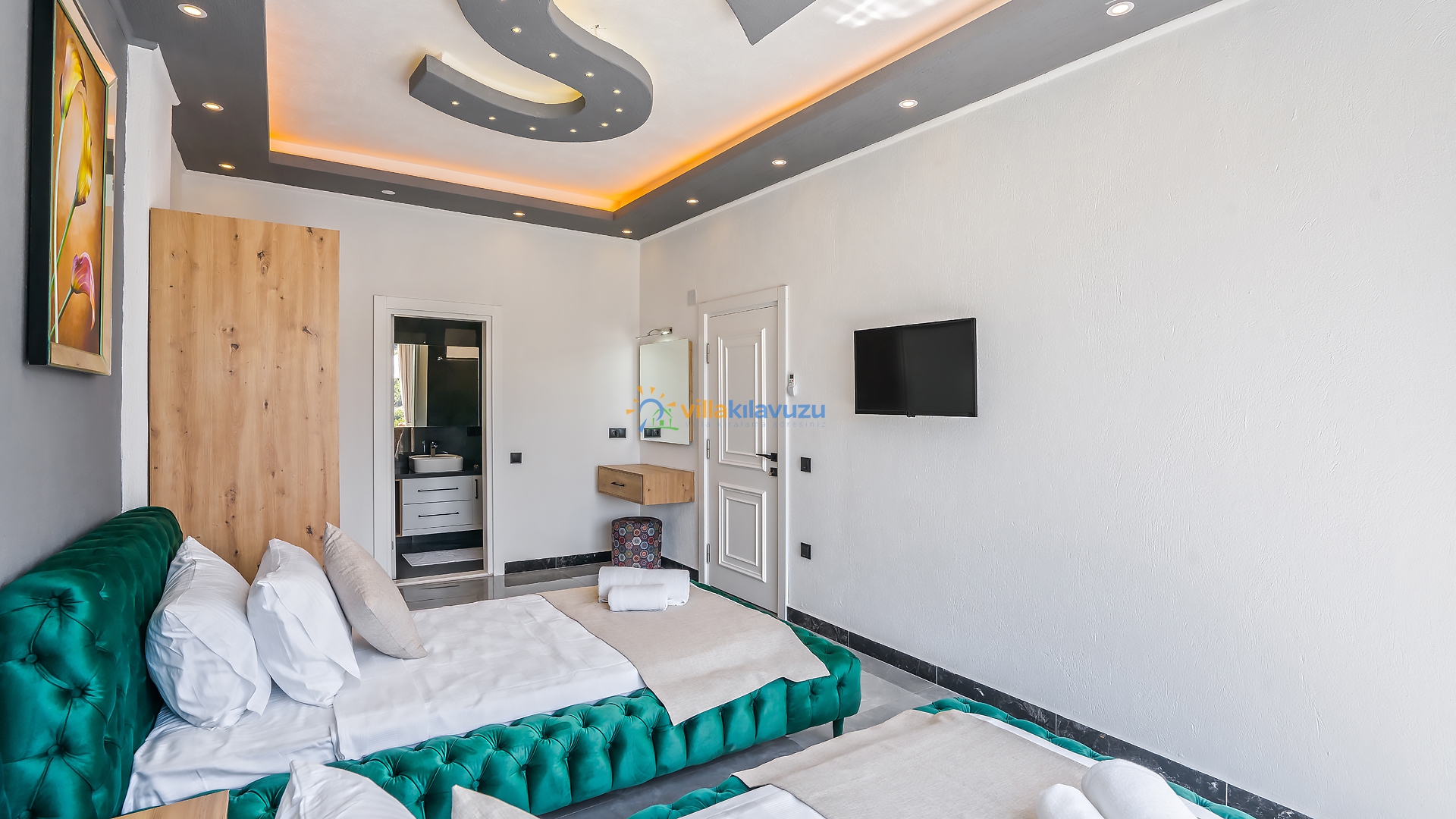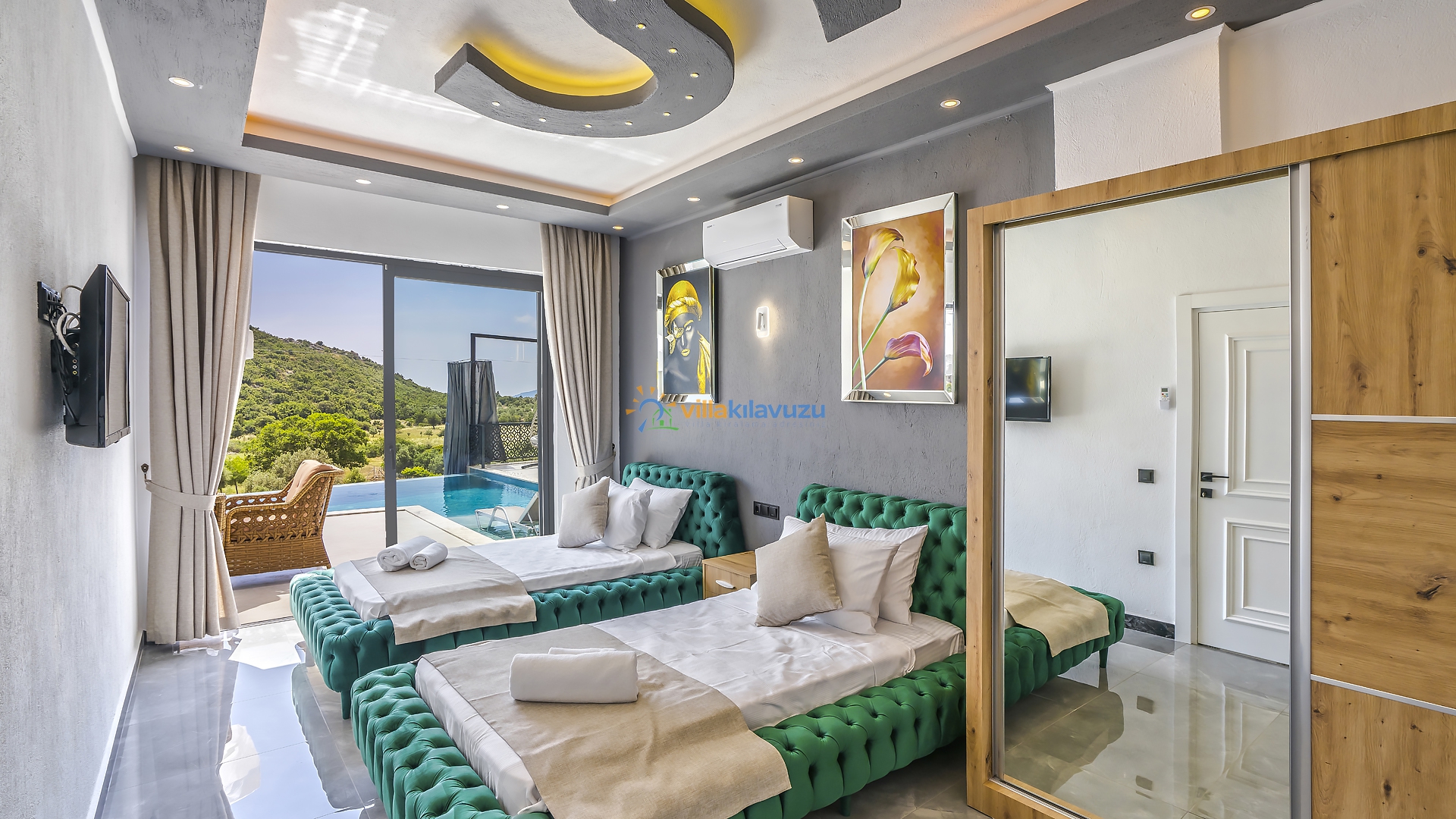 -Villamız 2 yatak odasına sahip olup 4 kişilik konaklama kapasitesine sahiptir.