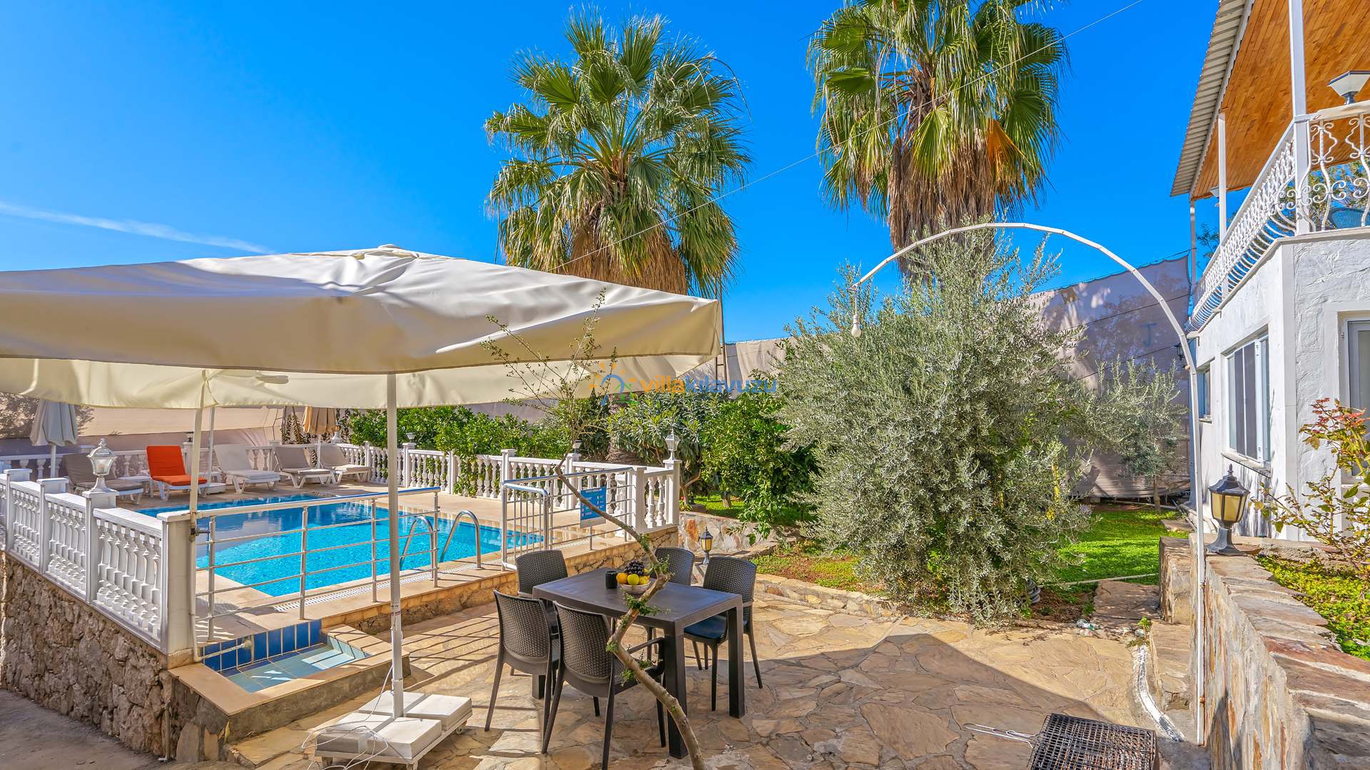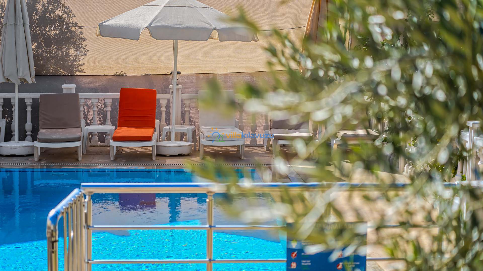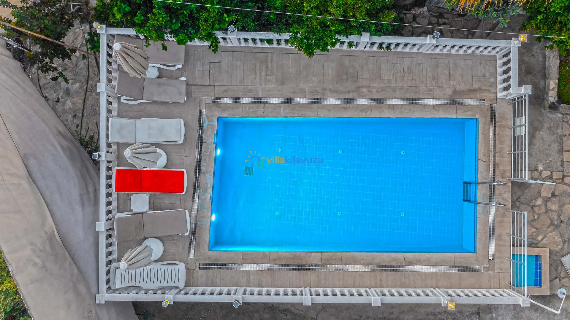 -Villamızın havuz terası korunaklıdır.