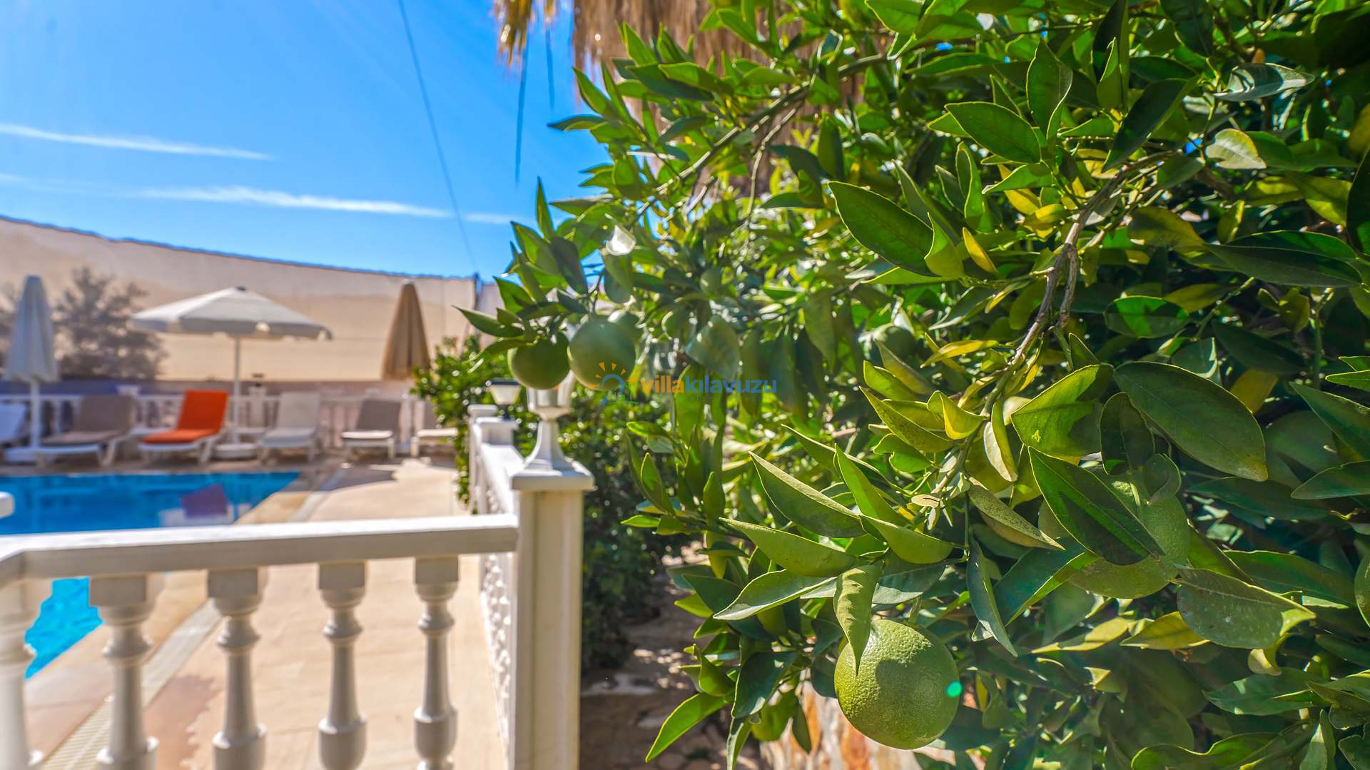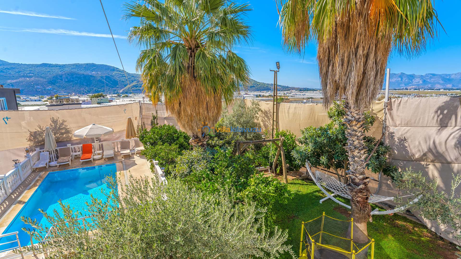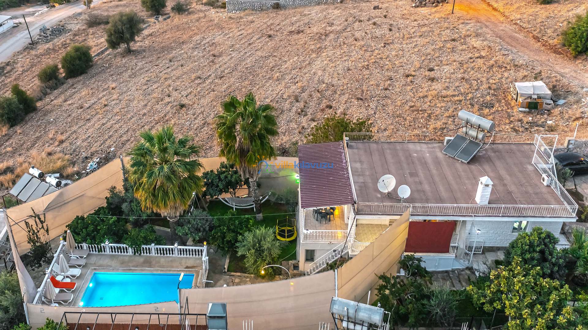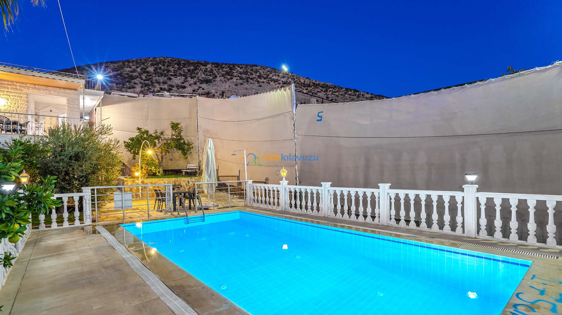 -Villamızın havuz terası korunaklıdır.