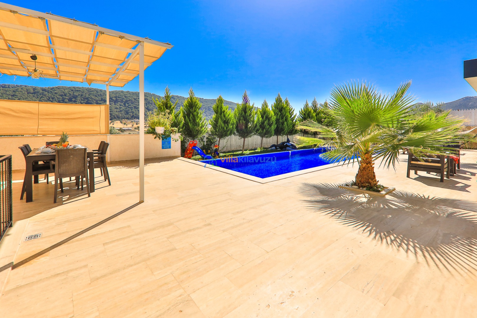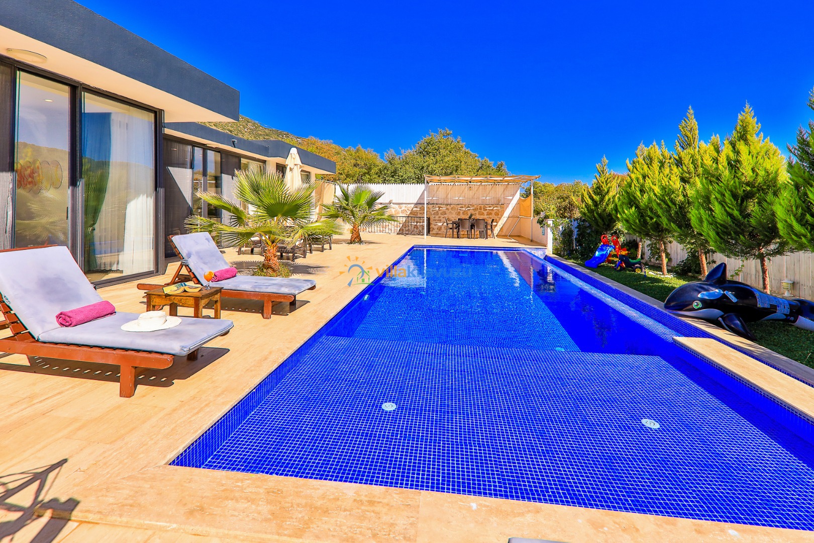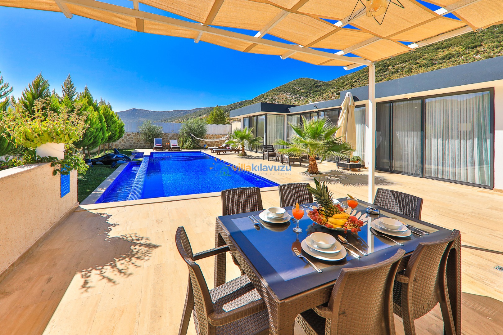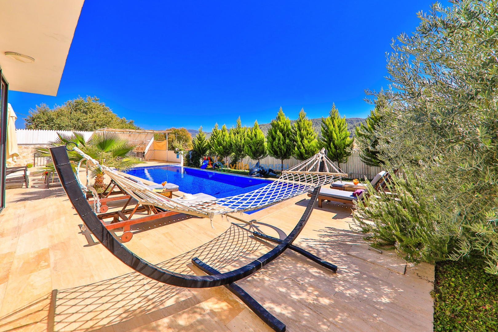 -Villamızın havuz terası korunaklıdır.