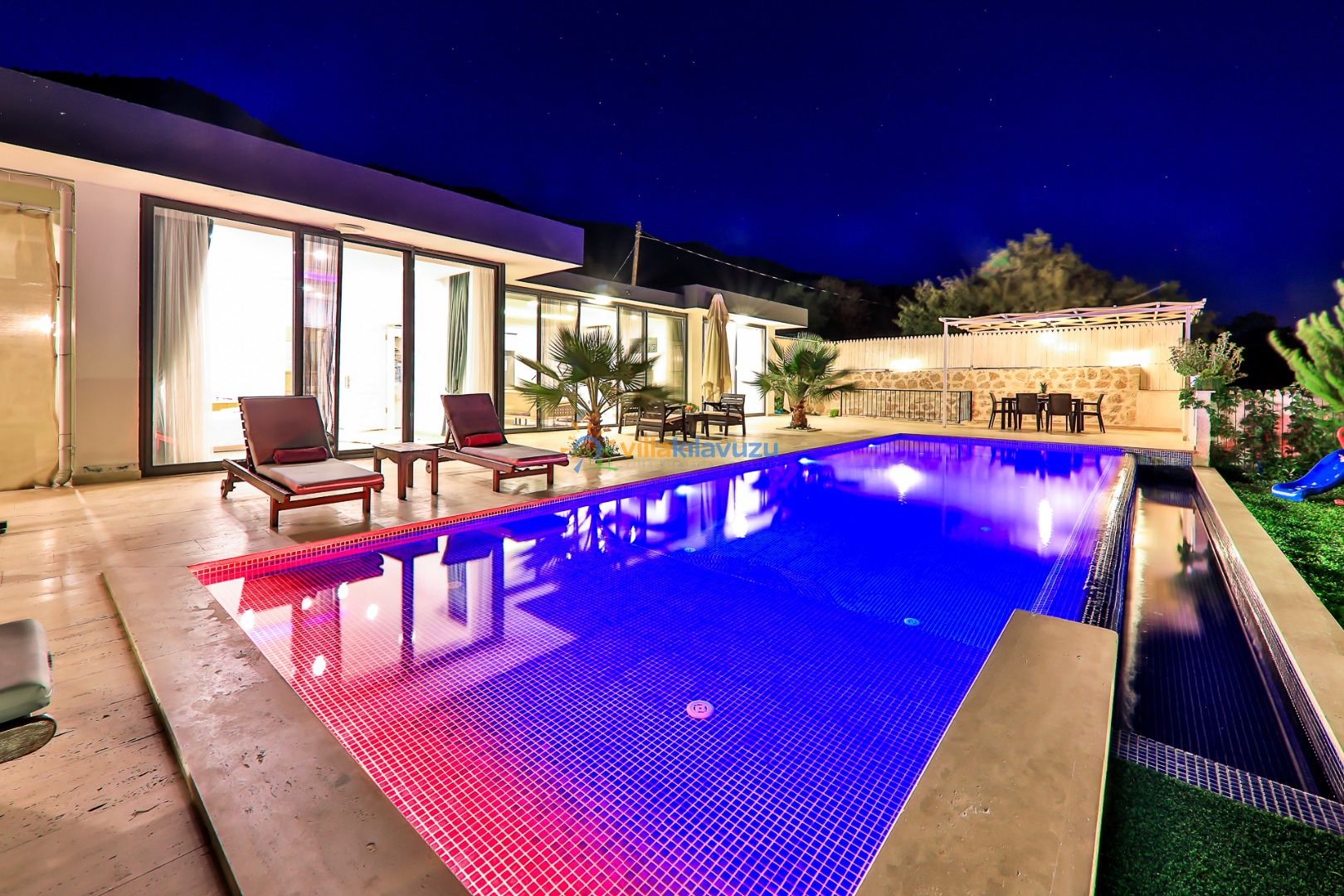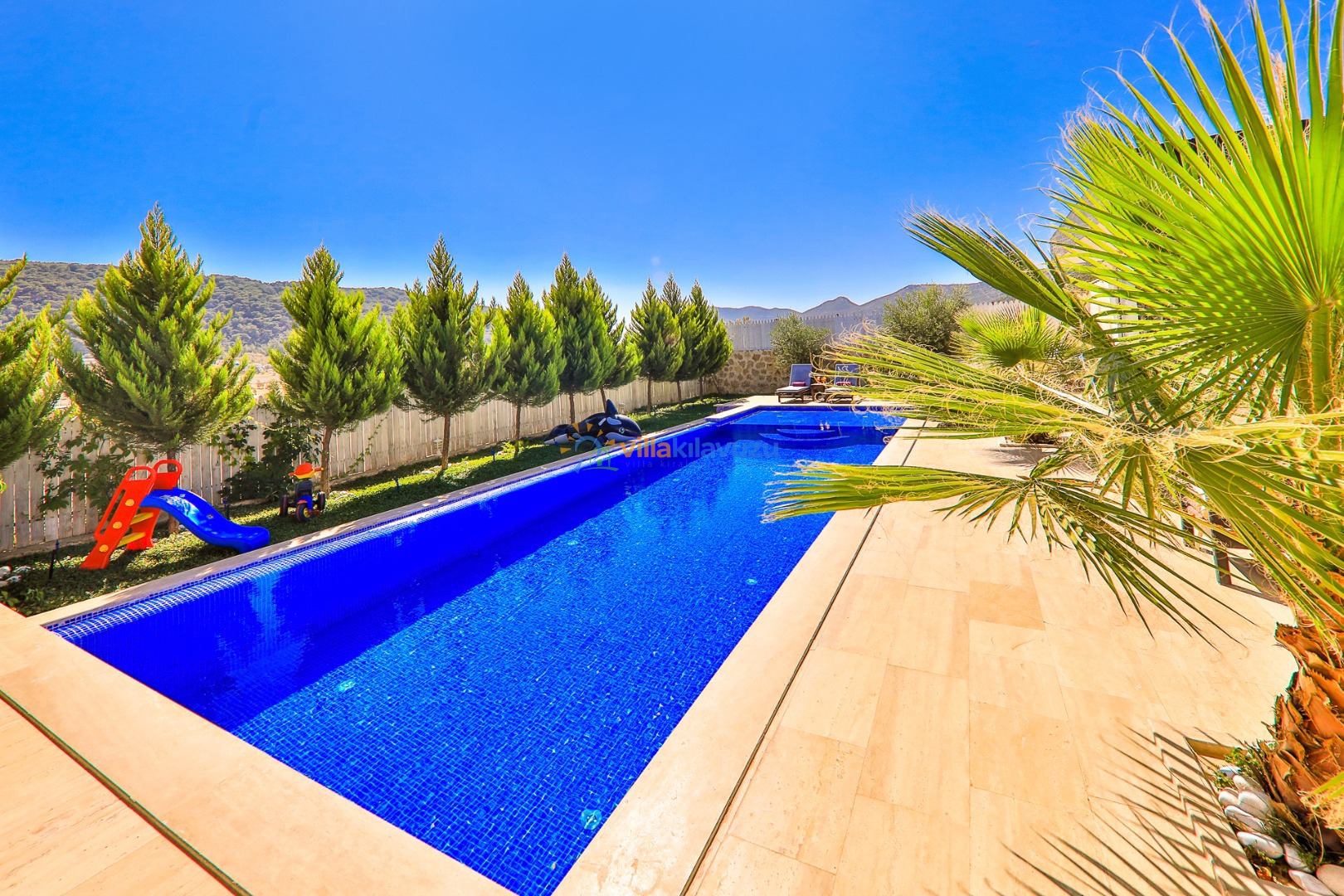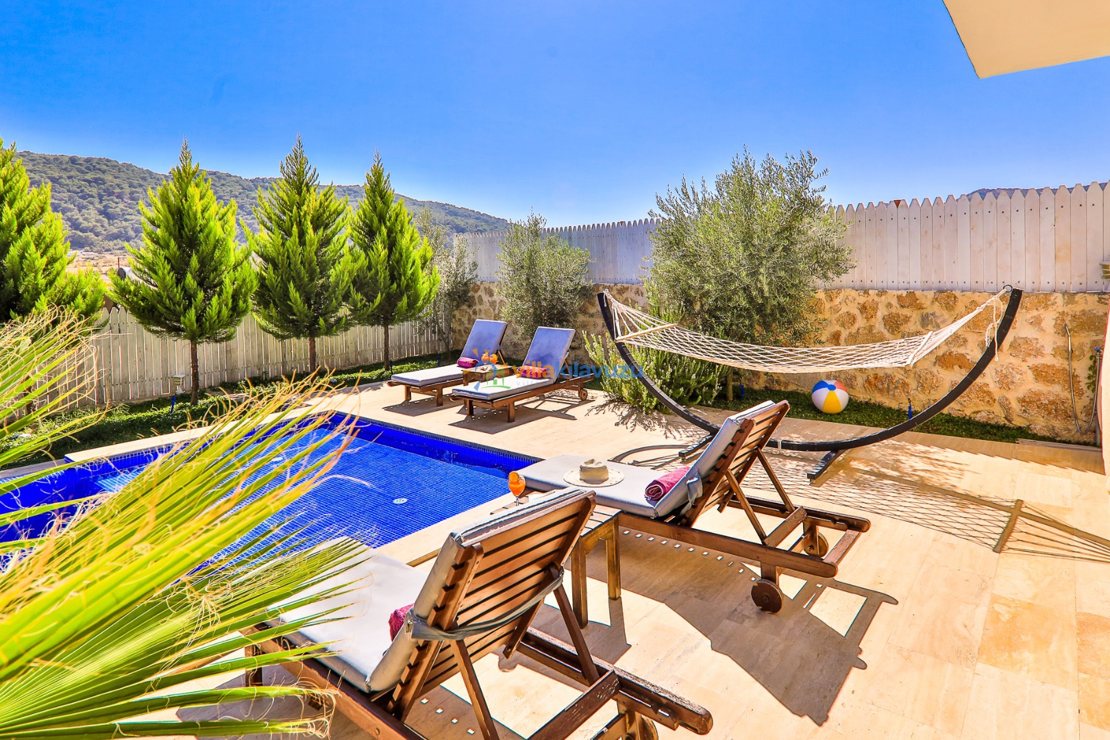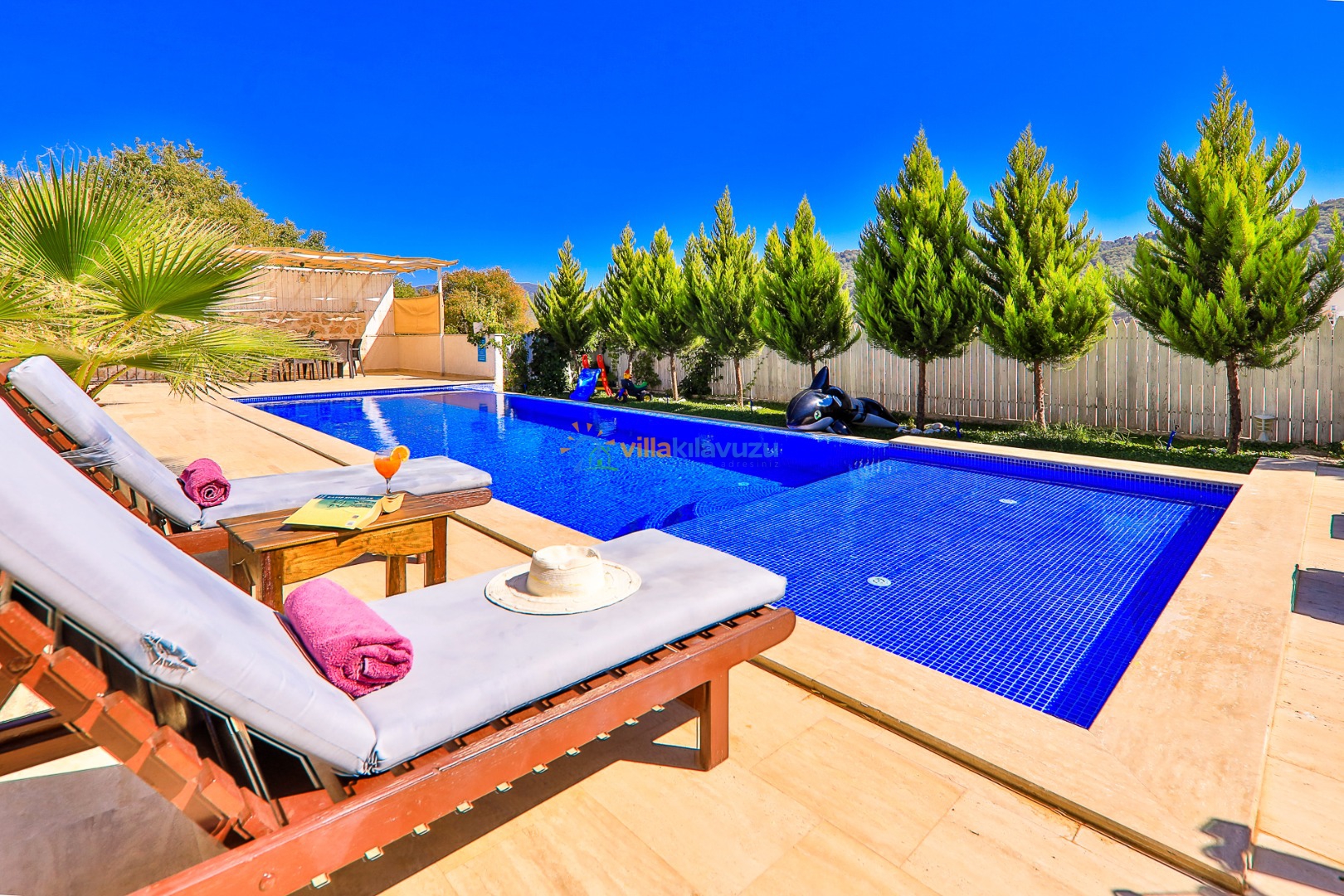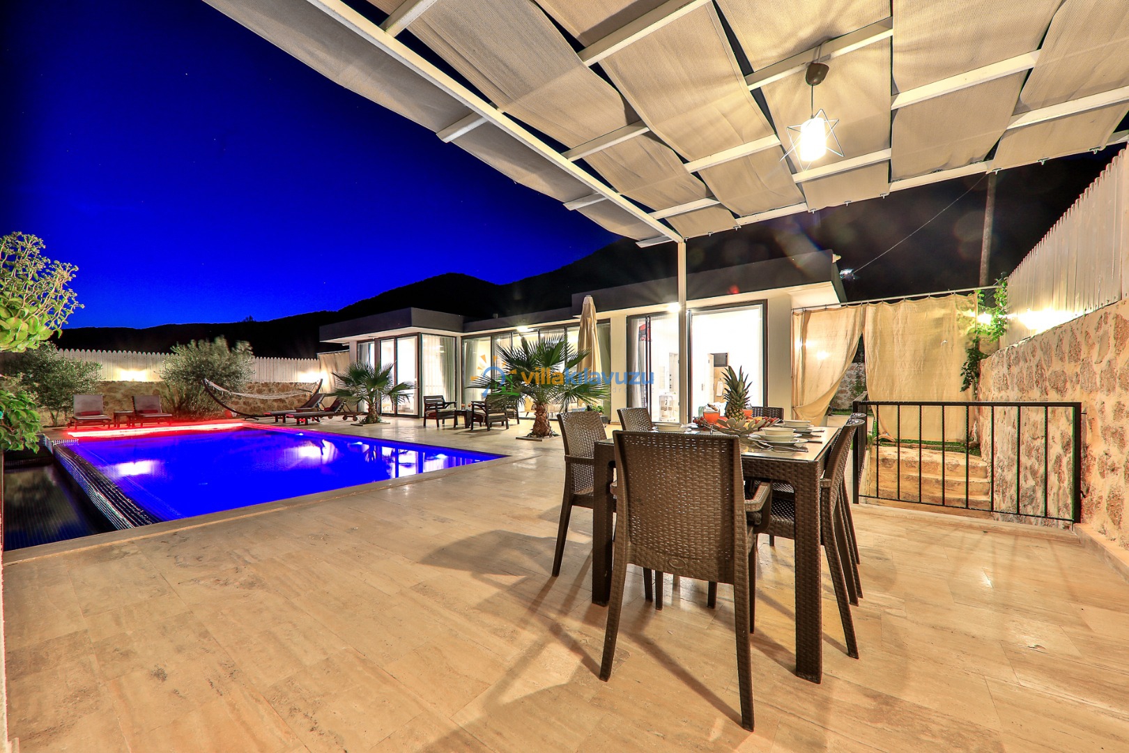 -Villamızın havuz terası korunaklıdır.