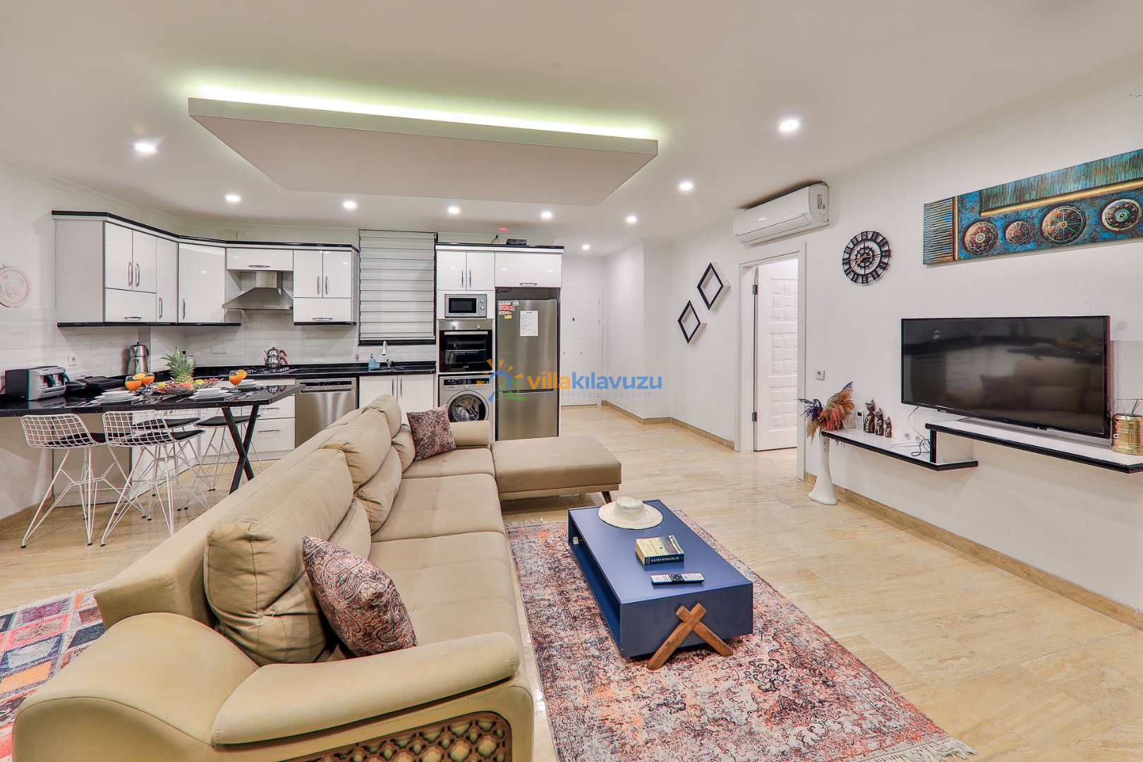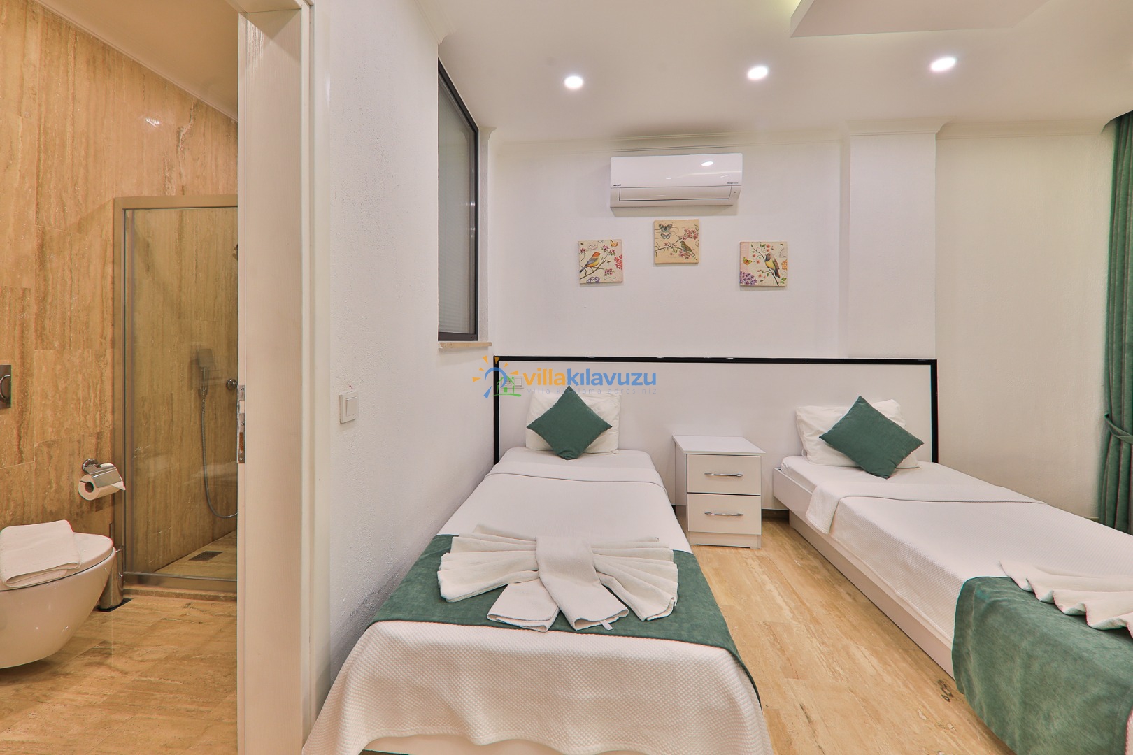 -Villamız 2 yatak odasına sahip olup 4 kişilik konaklama kapasitesine sahiptir.